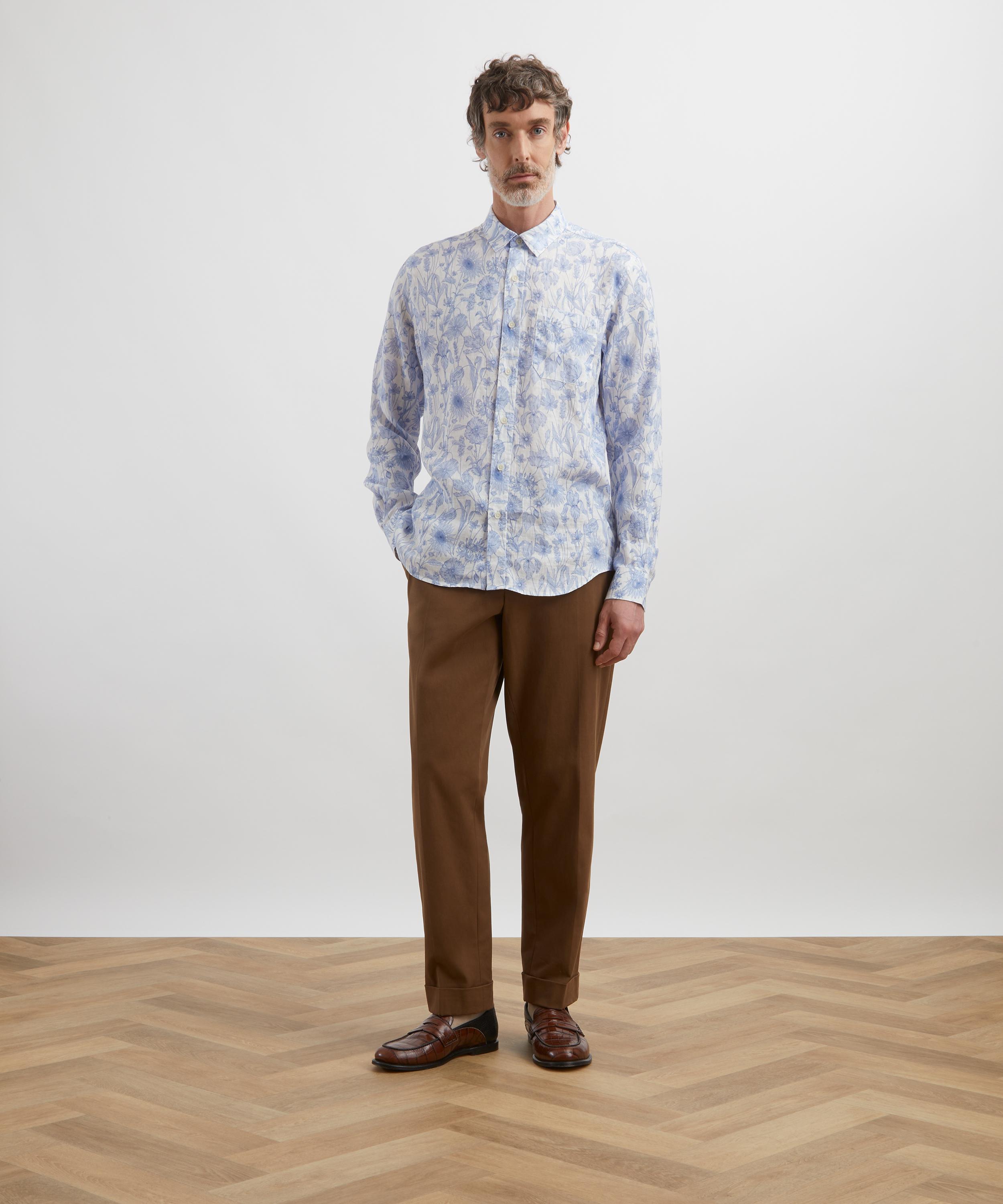 Printed in our very own cutting-edge Liberty fabric mill in northern Italy, this particular shirt showcases the Mono Muse Large print. Inspired by swinging sixties fashion muse Jean Shrimpton, Mono Muse showcases meticulously hand drawn botanical illustrations including poppies, sunflowers, agapanthus, irises, daisies, snowdrops, tulips, lavender, and cosmos.