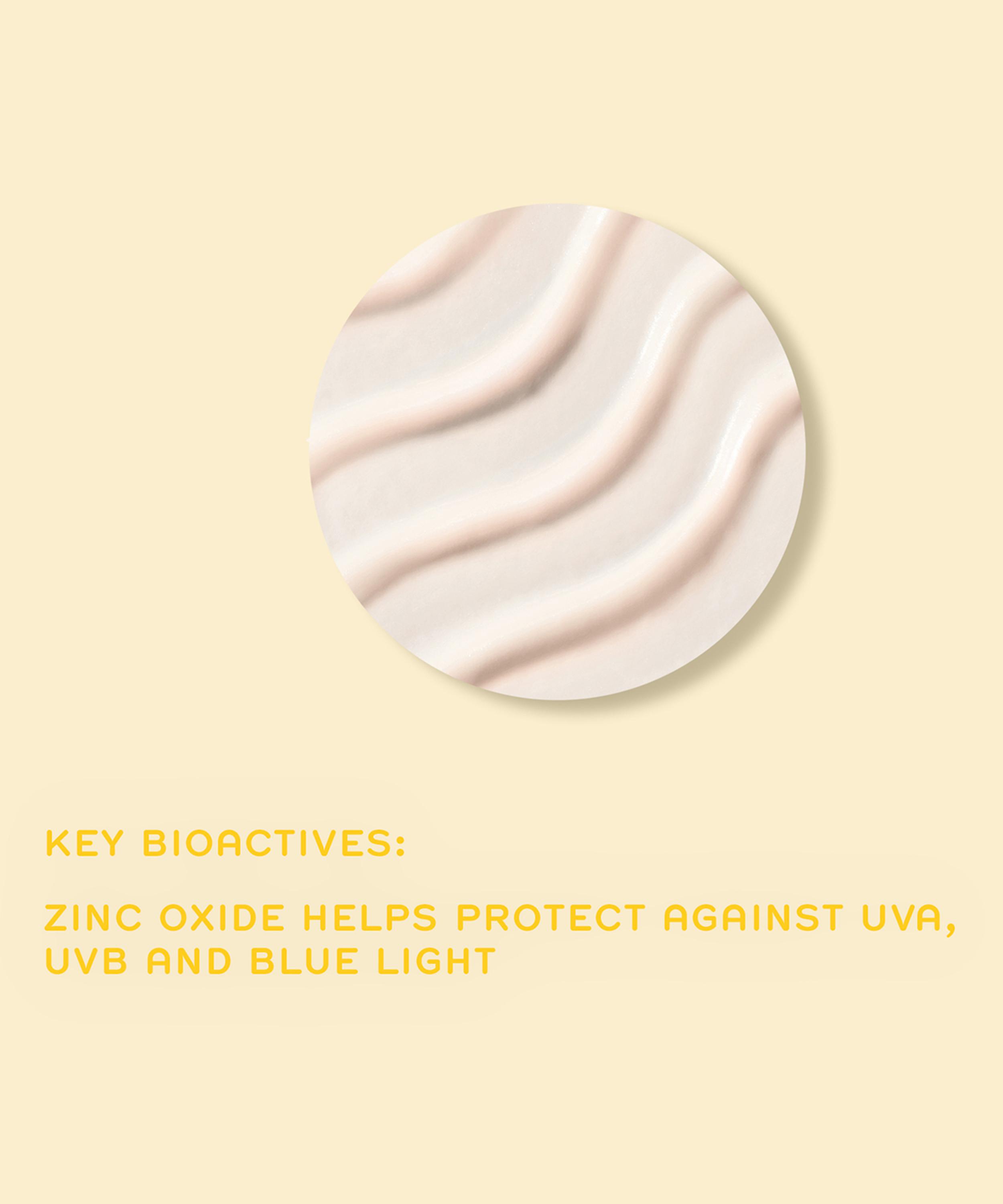 Aqua (Water), Zinc Oxide, Caprylic/Capric Triglyceride, Aloe Barbadensis Leaf Juice, Glycerin, Caprylyl Caprylate/Caprate, Propanediol, Arachidyl Alcohol, Cetearyl Alcohol, Coco-Glucoside, Oryza Sativa Starch, Pongamia Glabra Seed Oil, Microcrystalline Cellulose, Behenyl Alcohol, Phenoxyethanol, Arachidyl Glucoside, Isostearic Acid, Lecithin, Polyglyceryl-3 Polyricinoleate, Polyhydroxystearic Acid, Passiflora Edulis Fruit Extract, Ethylhexylglycerin, Glyceryl Oleate, Vaccinium Macrocarpon (Cranberry) Seed Oil, Xanthan Gum, Cellulose Gum, Sodium Chloride, Hippophae Rhamnoides Oil, Citrus Nobilis (Mandarin Orange) Peel Oil, Anthemis Nobilis Flower Oil, Cinnamomum Camphora Linalloliferum (Ho Wood) Leaf Oil, Pelargonium Graveolens Flower Oil, Glucose, Parfum* (Fragrance), Helianthus Annuus (Sunflower) Seed Oil, Tocopherol, Rosmarinus Officinalis (Rosmary) Leaf Extract, Hydrogenated Palm Glycerides Citrate, Citric Acid, Sodium Hydroxide, Citronellol, Geraniol, Limonene, Linalool