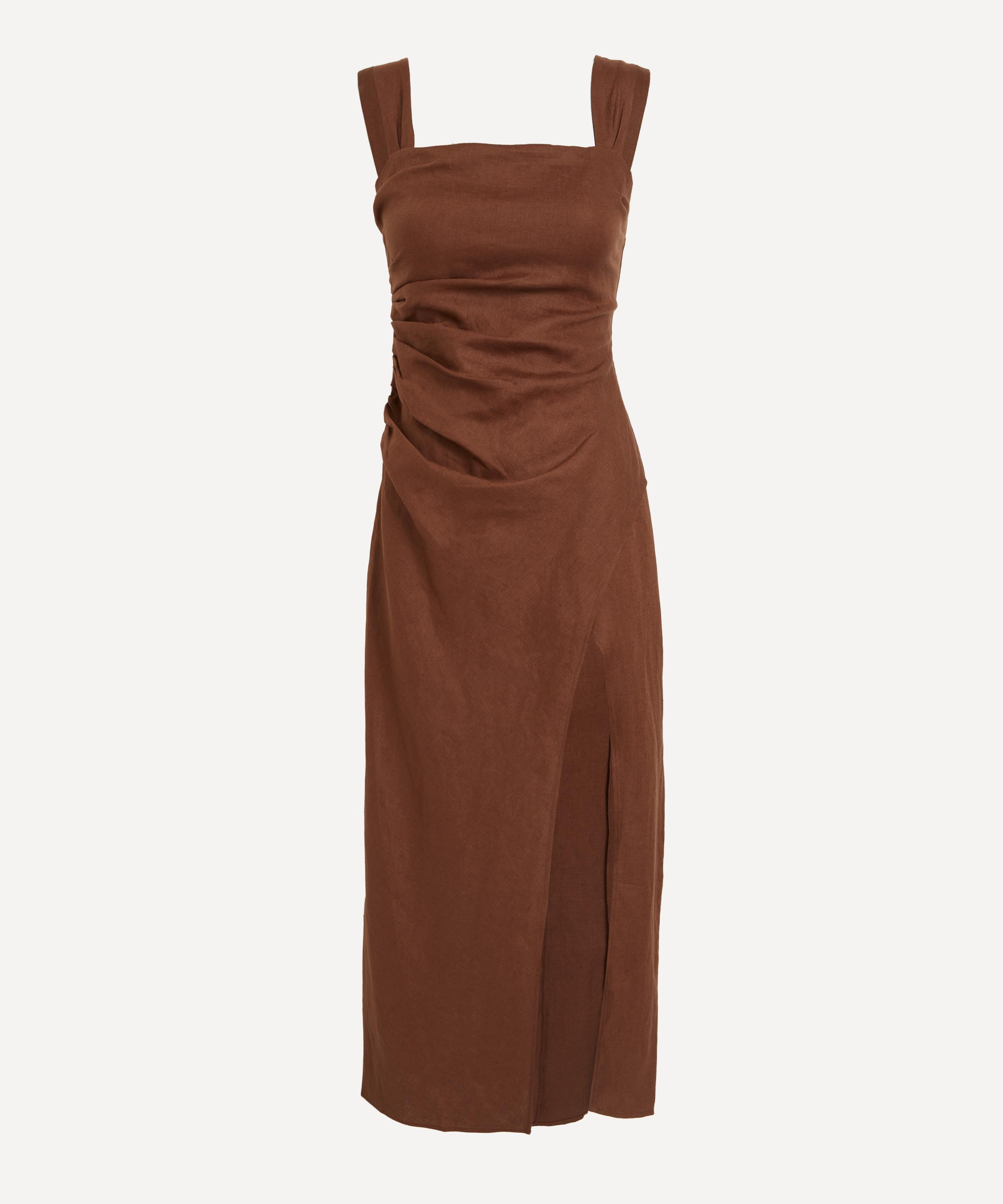 Look good and feel good in the Clement Linen Dress from cult LA label Reformation, where effortless style meets conscious design.