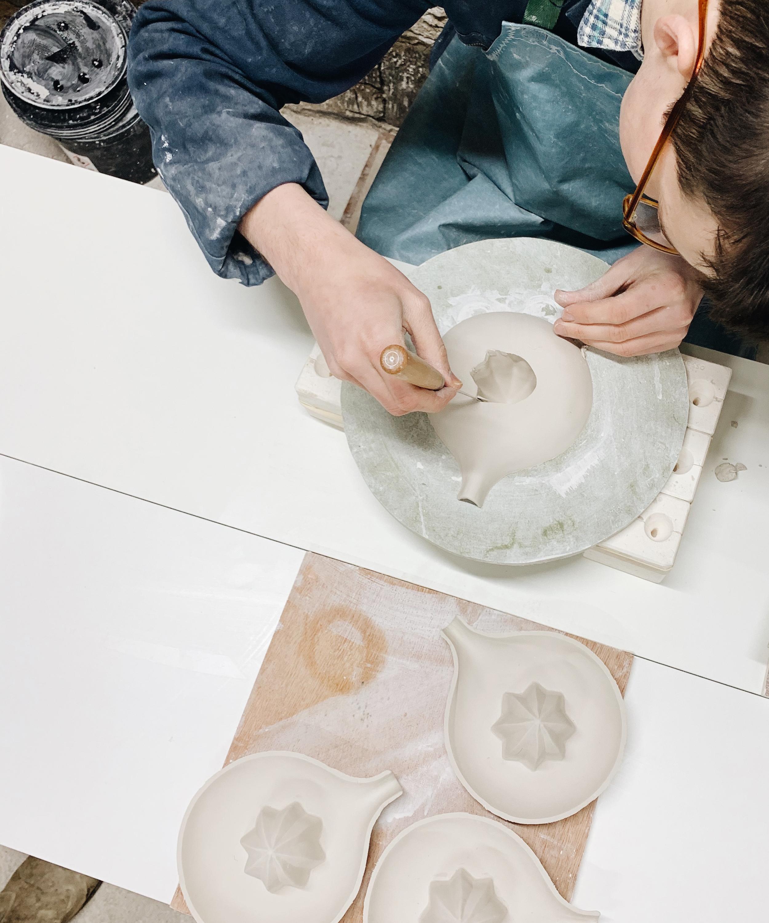 Jeremy and Cath Brown founded cult design brand Feldspar in 2016 after taking up pottery following their move from London to the wilds of Dartmoor in Devon. Their ethos is to create ‘objects for life’ – beautiful pieces with an understated aesthetic, meticulously designed to be immune to trends and made to last. Their use of English fine bone china speaks to the high quality of their homewares, as well as their commitment to manufacturing their products locally in Devon and Stoke-on-Trent by the endangered method of ‘slip casting’. Each product is an instant classic, working elegantly together as a set or quietly chic as stand-alone pieces.