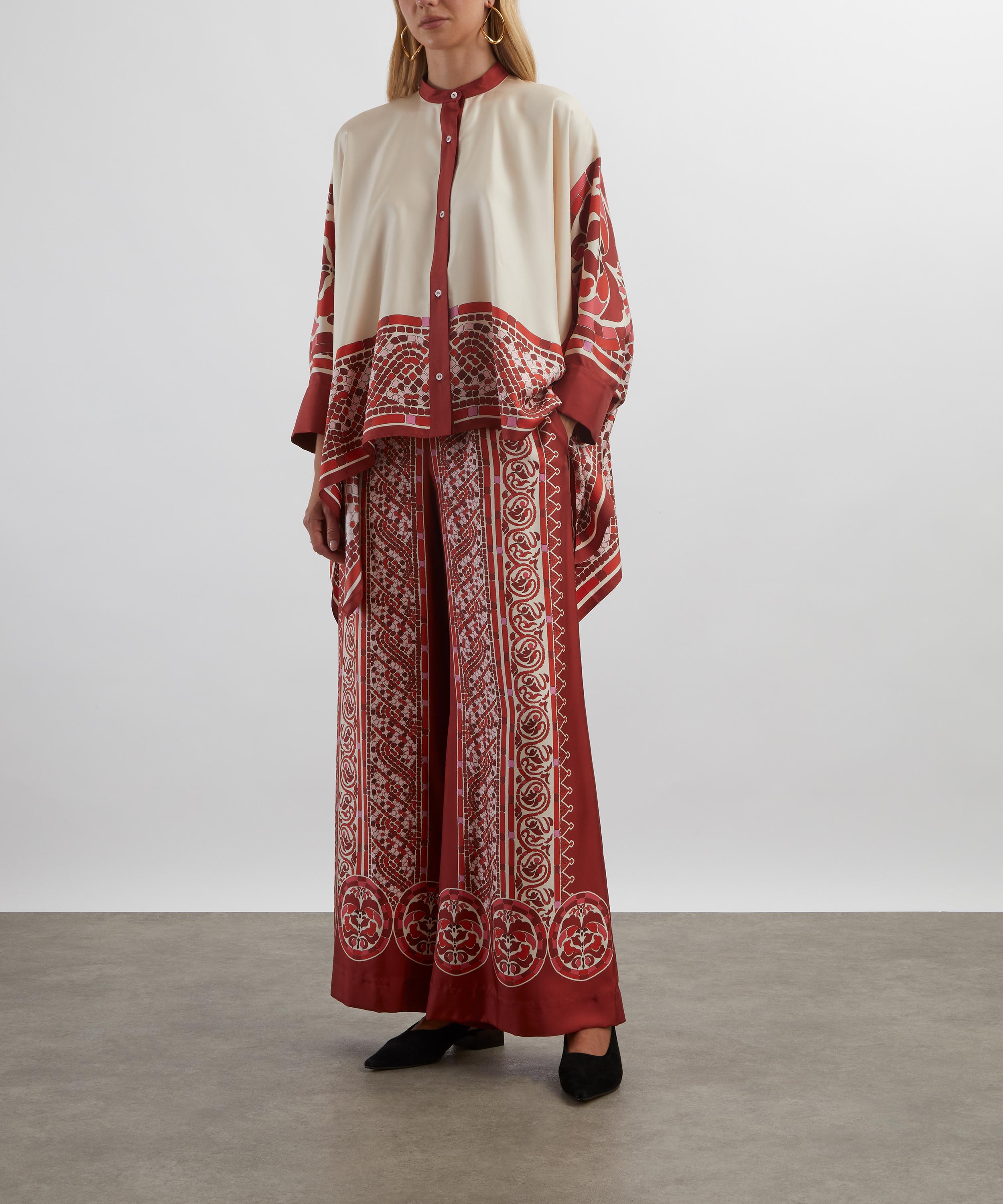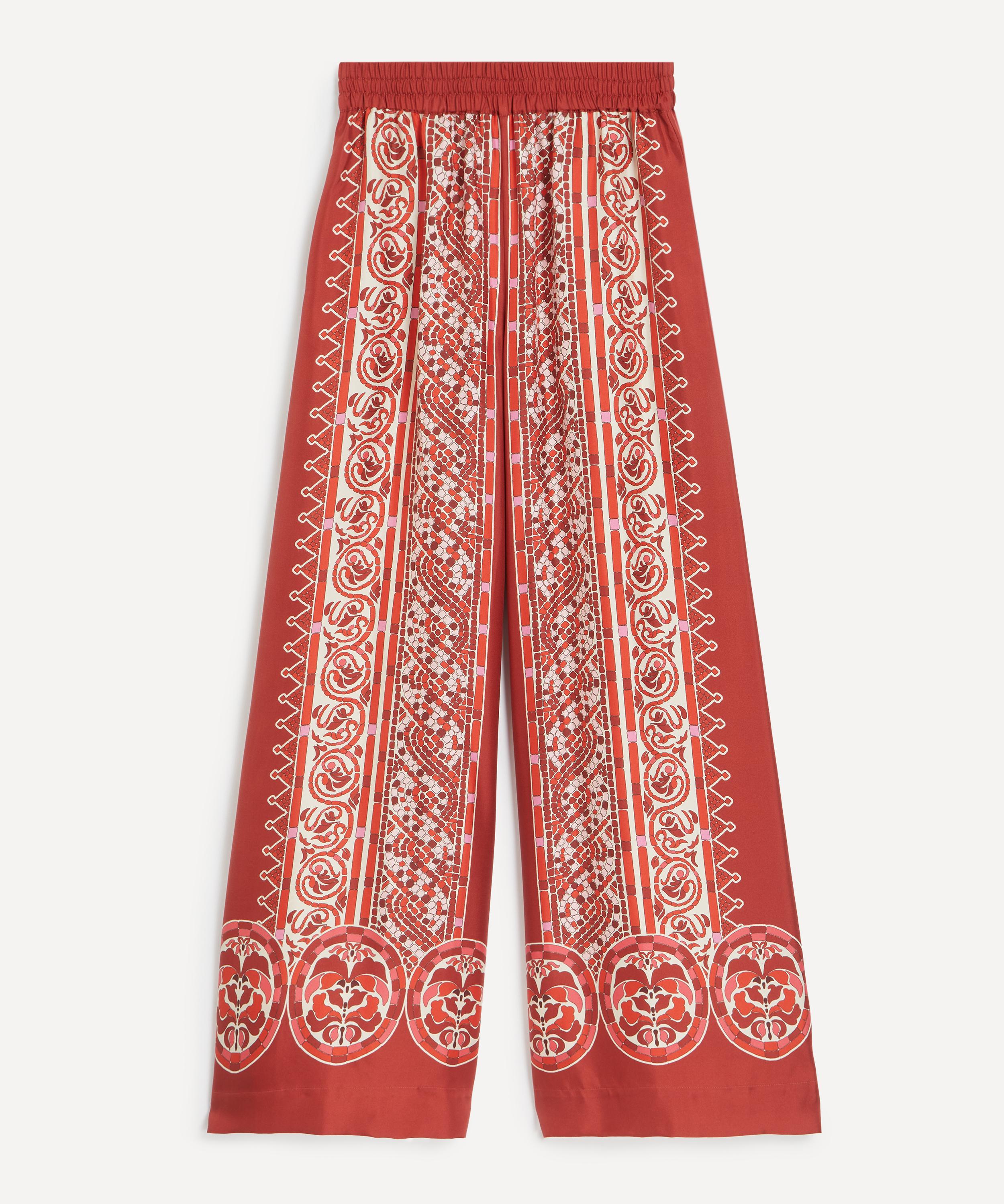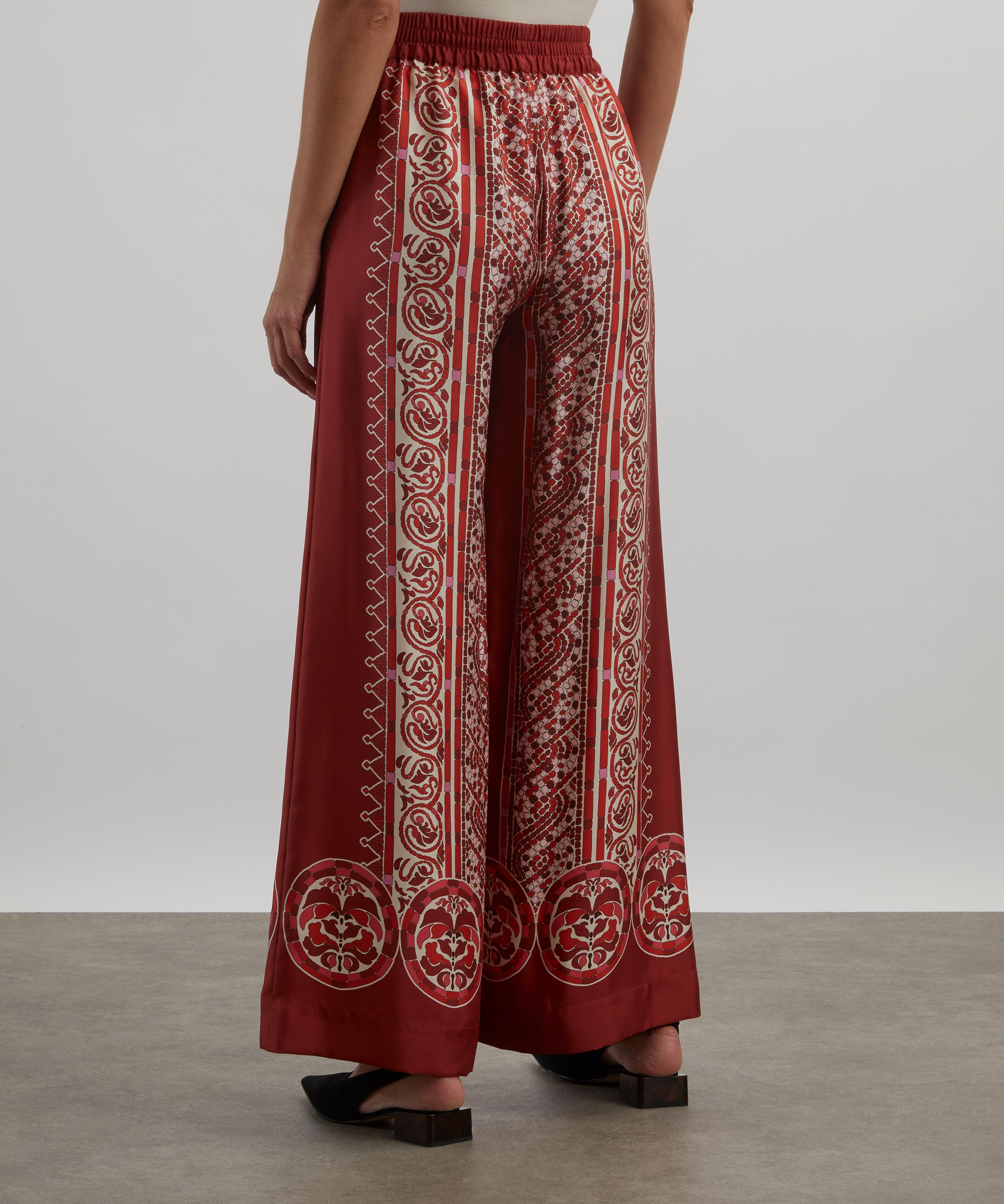 Cobra Placée Red Silk Twill Palazzo Trousers