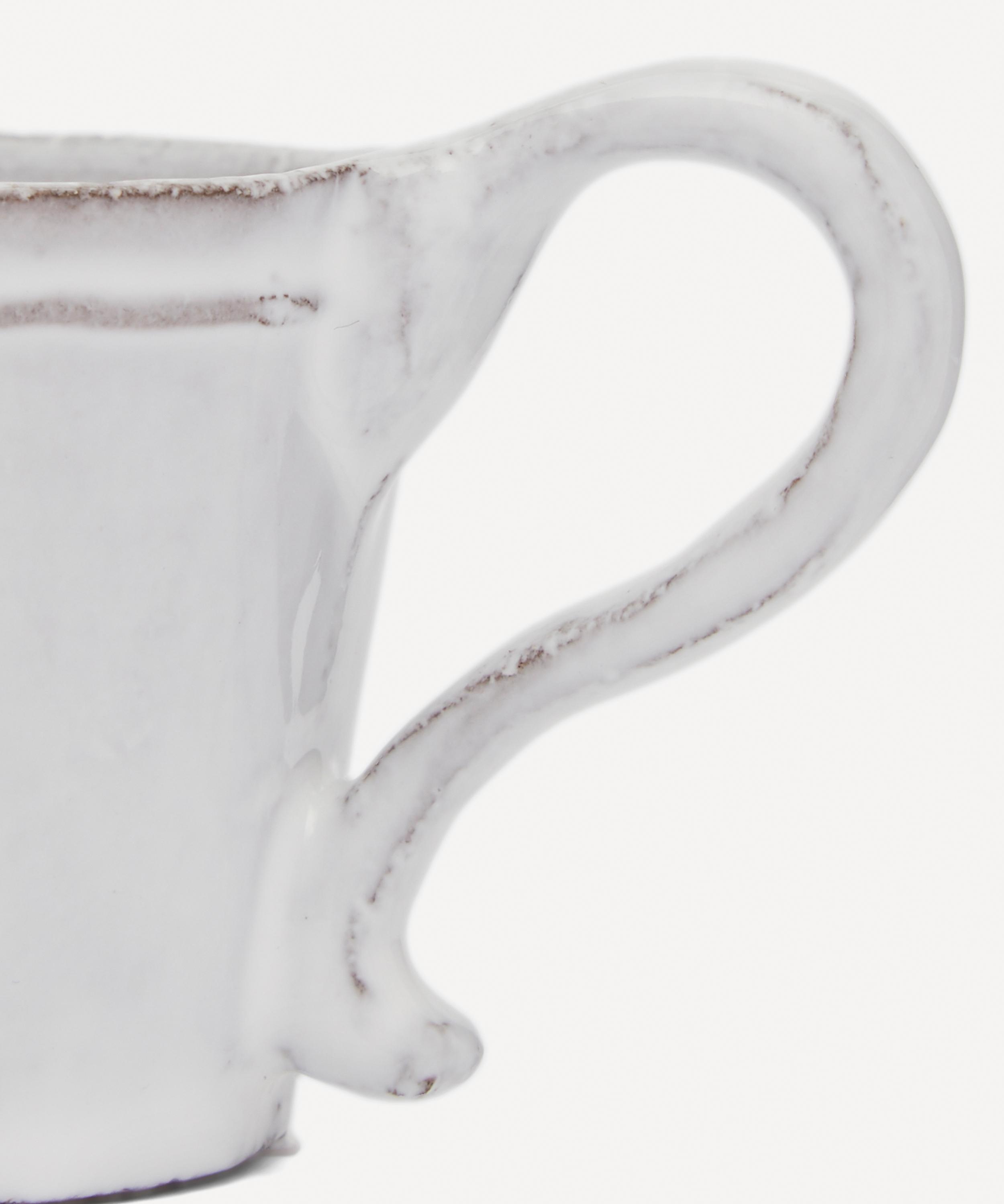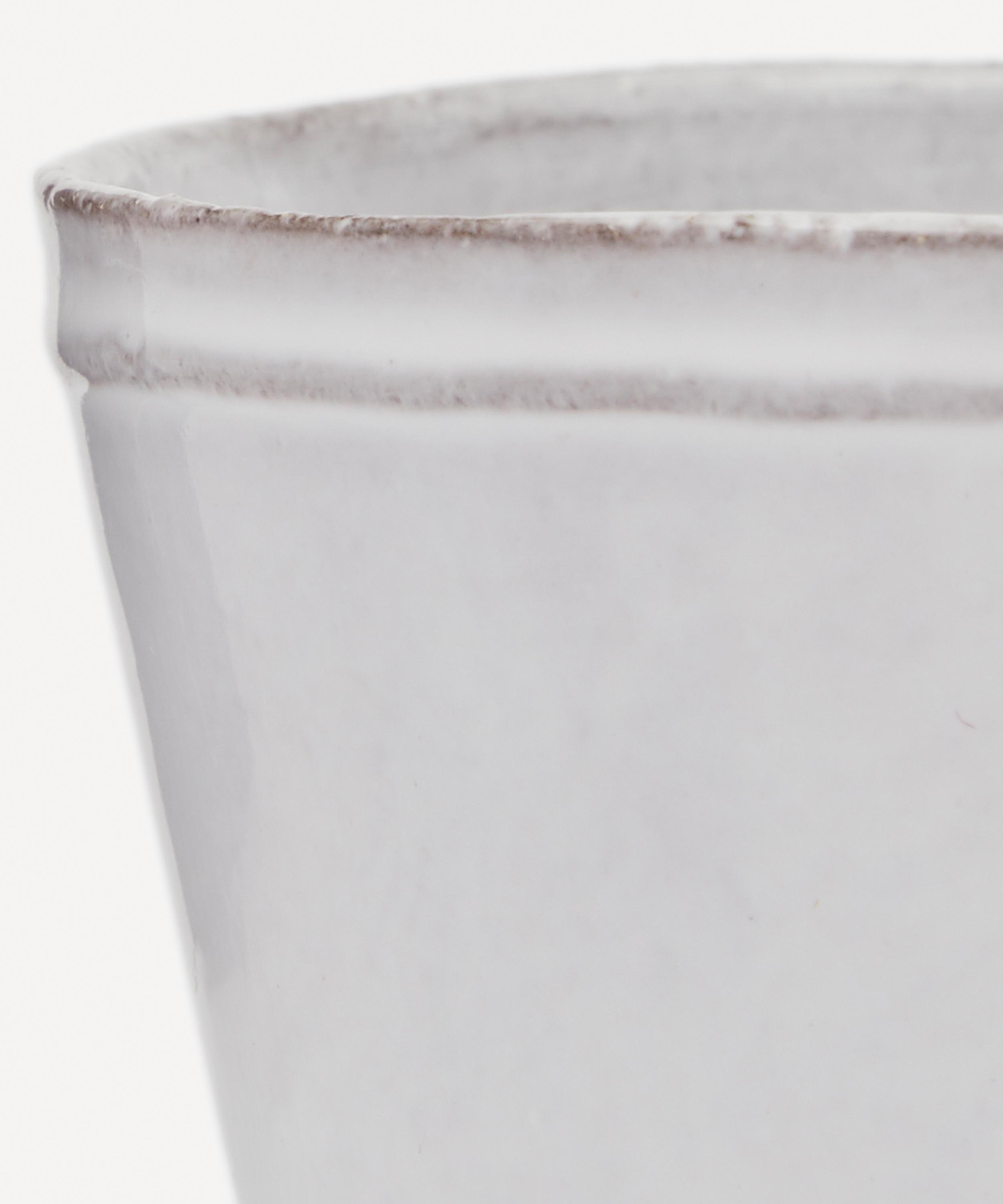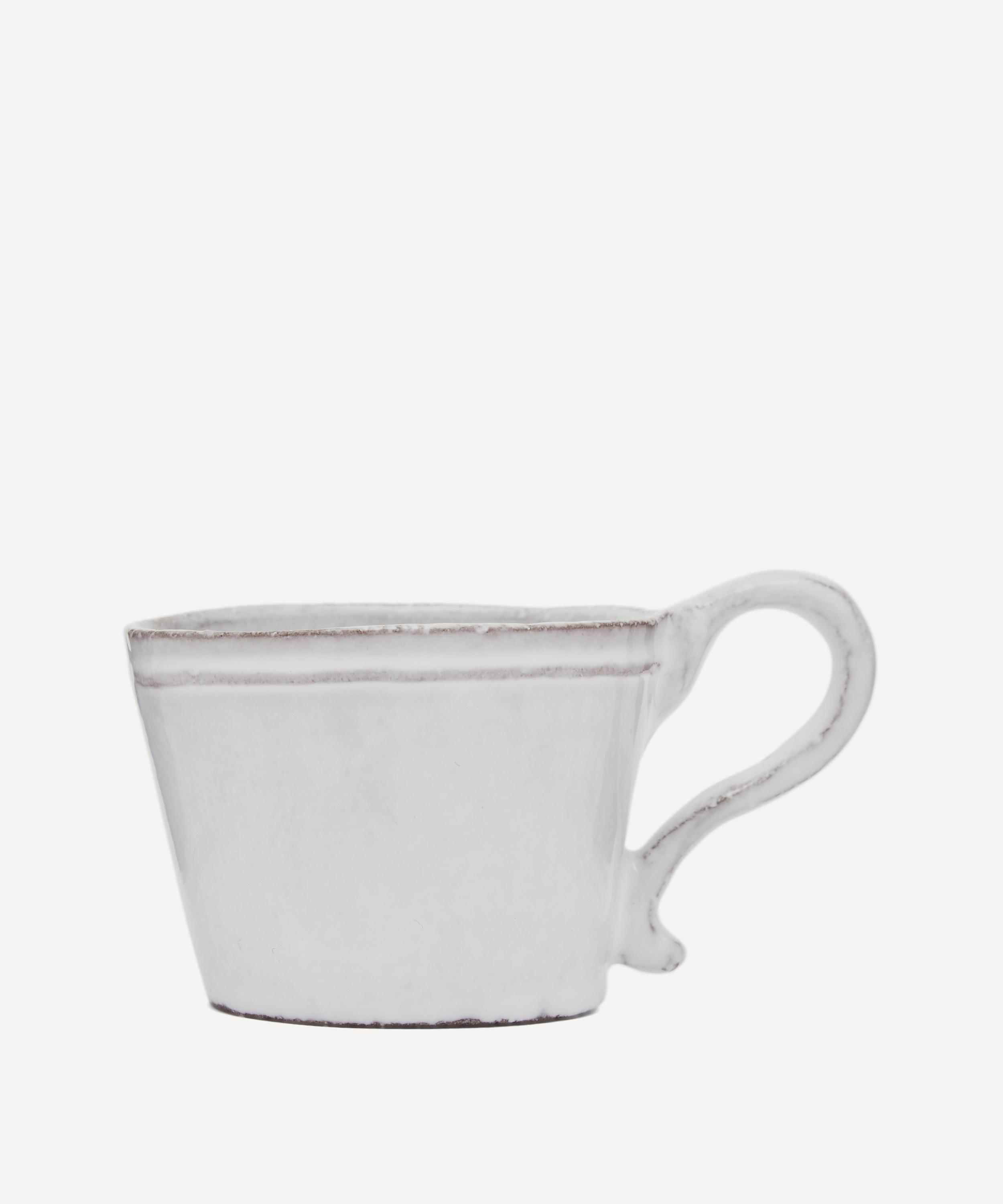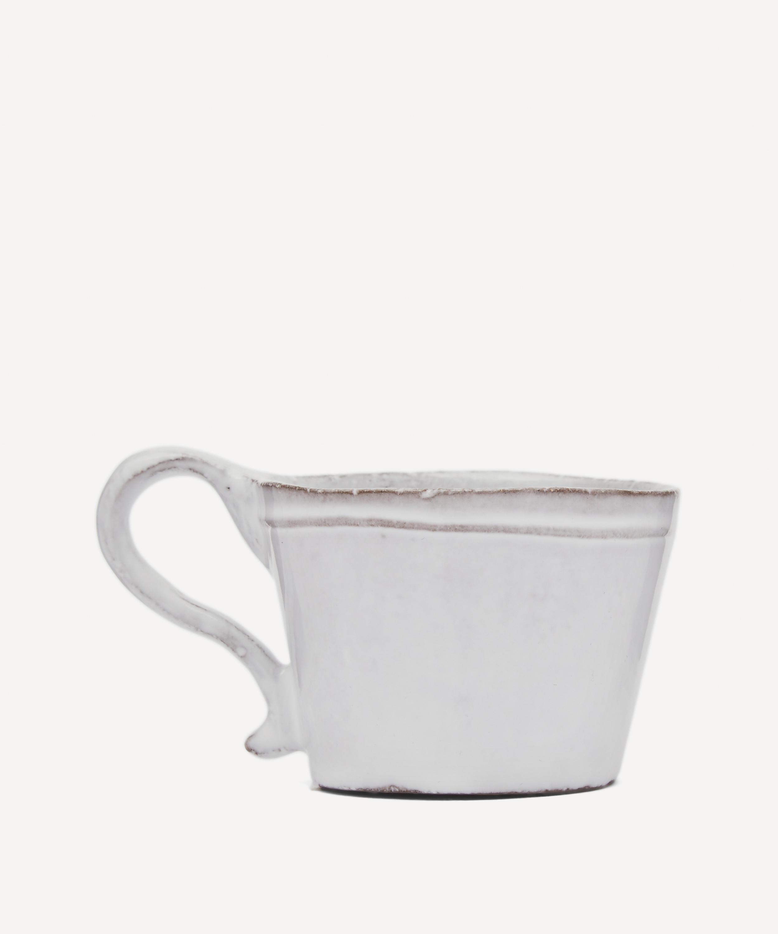 Votary of pre-industrial fabrication, Astier de Villatte is celebrated for being the one and only studio in Paris to hold and harbour the traditions of artisanal ceramic production. Restoring the ancestral systems of moulding and stamping, the Simple coffee cup is made using techniques from the Middle Ages which involve moulding a sheet of handmade clay, double firing the ‘biscuit’ piece and glazing the product in white enamel – a lengthy process that requires a drying time of up to one month. Characterised by exposed clay and subtle indentations, the coffee cup is engraved with the brand’s signature crest - depicting an interlacing A & V - alongside the initials of one of the 40 master artisans who created it. Each handmade piece tells a beautiful story, it romances and imparts a sense of nostalgia into its owner. Arrange with other espresso cups and mugs in the collection to breathe an air of authenticity into your breakfast setting.