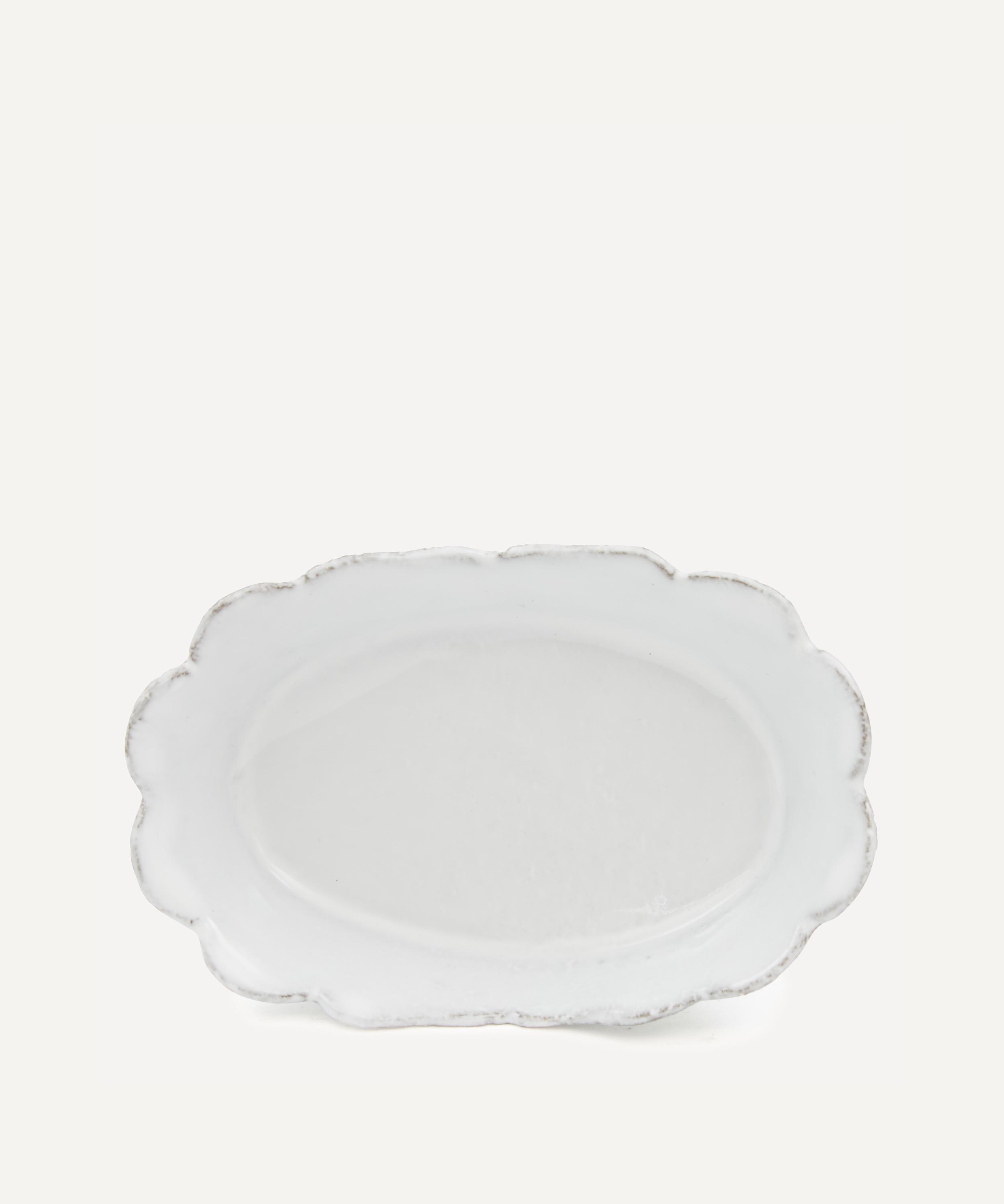 Votary of pre-industrial fabrication, Astier de Villatte is celebrated for being the one and only studio in Paris to hold and harbour the traditions of artisanal ceramic production. Restoring the ancestral systems of moulding and stamping, the Colbert deep dish is made using techniques from the Middle Ages which involve moulding a sheet of handmade clay, double firing the ‘biscuit’ piece and glazing the product in white enamel – a lengthy process that requires a drying time of up to one month. Characterised by a scalloped rim and exposed bits of clay, the dish is engraved with the brand’s signature crest - depicting an interlacing A & V - alongside the initials of one of the 40 master artisans who created it. Each handmade piece tells a beautiful story, it romances and imparts a sense of nostalgia into its owner. Pair with other dishes from the collection for a coordinated decorative approach.