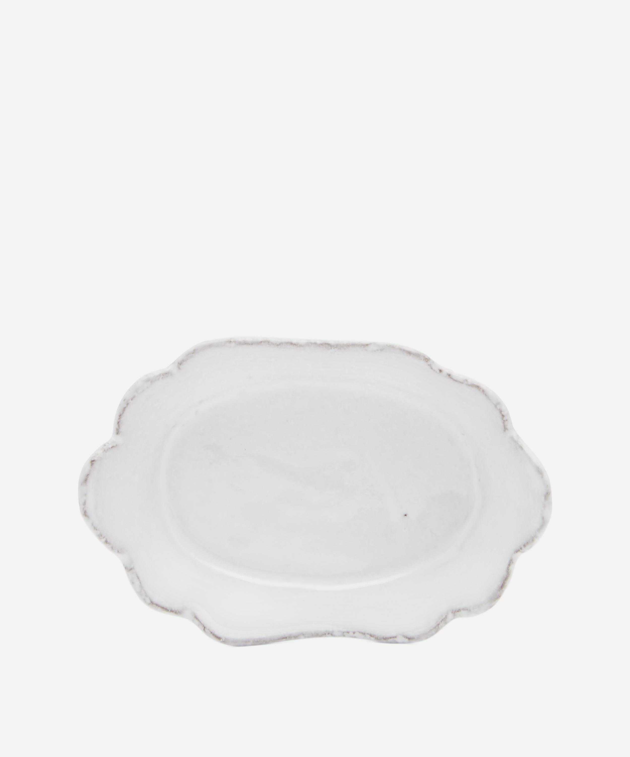 Votary of pre-industrial fabrication, Astier de Villatte is celebrated for being the one and only studio in Paris to hold and harbour the traditions of artisanal ceramic production. Restoring the ancestral systems of moulding and stamping, the Colbert small dish is made using handcrafting techniques from the Middle Ages which involve moulding a handmade sheet of clay, double firing the ‘biscuit’ piece and glazing the product in white enamel – a lengthy process that involves a drying time of up to one month. Characterised by a wide scalloped rim, the small dish is engraved with the brand’s signature crest – depicting an interlacing A & V – alongside the initials of one of the 40 master artisans who created it. Each handmade piece tells a beautiful story, it romances and imparts a sense of nostalgia into its owner. Use it to serve up bite-sized appetisers and snacks.