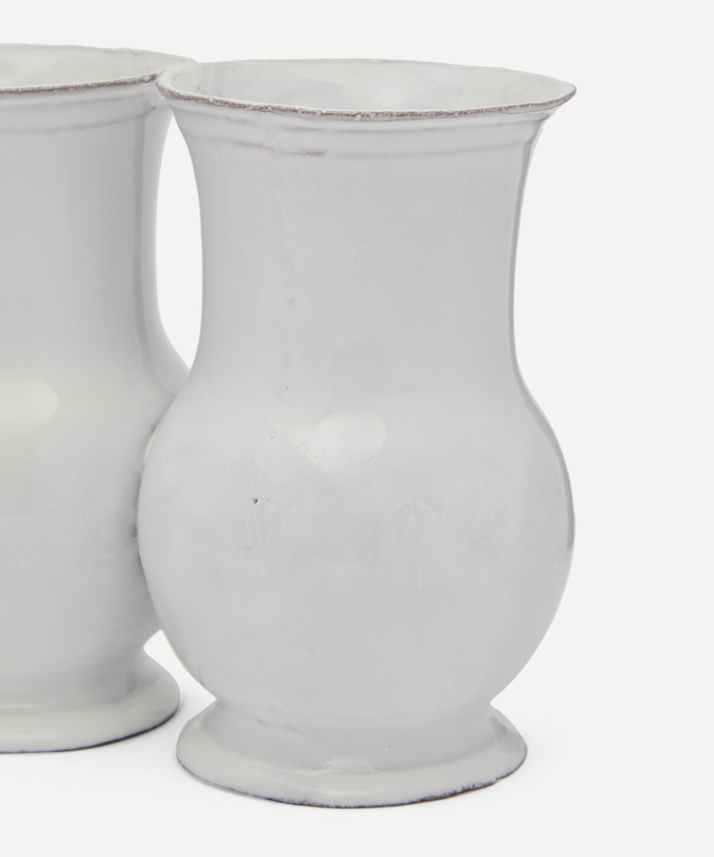 Votary of pre-industrial fabrication, Astier de Villatte is celebrated for being the one and only studio in Paris to hold and harbour the traditions of artisanal ceramic production. Restoring the ancestral systems of moulding and stamping, the Colbert triple vase is made using techniques from the Middle Ages which involve moulding a sheet of handmade clay, double firing the ‘biscuit’ piece and glazing the product in white enamel – a lengthy process that requires a drying time of up to one month. Characterised by three, linked vases, the triple vase is engraved with the brand’s signature crest - depicting an interlacing A & V - alongside the initials of one of the 40 master artisans who created it. Each handmade piece tells a beautiful story, it romances and imparts a sense of nostalgia into its owner. Pair with other vases from the collection for a coordinated decorative approach.