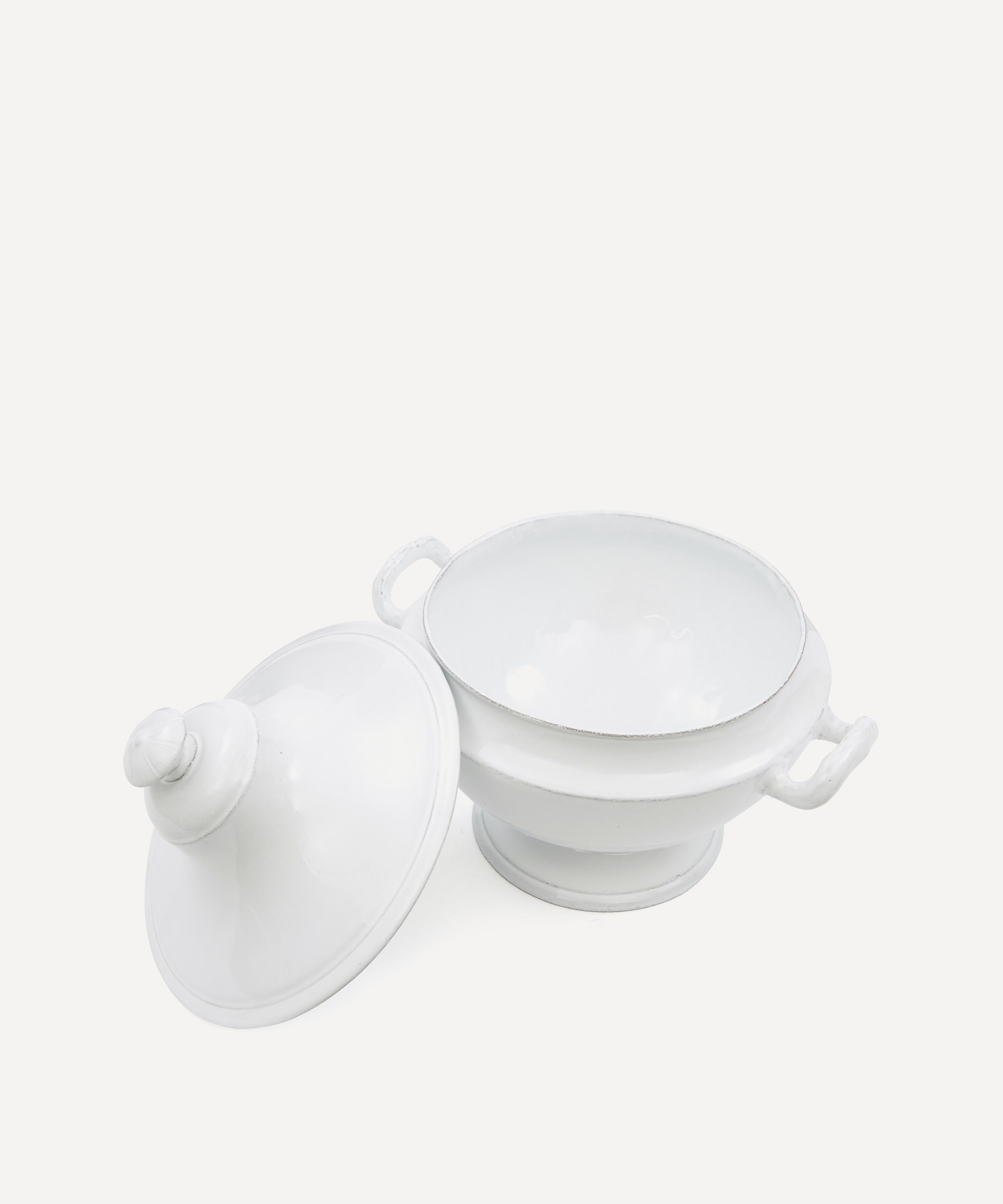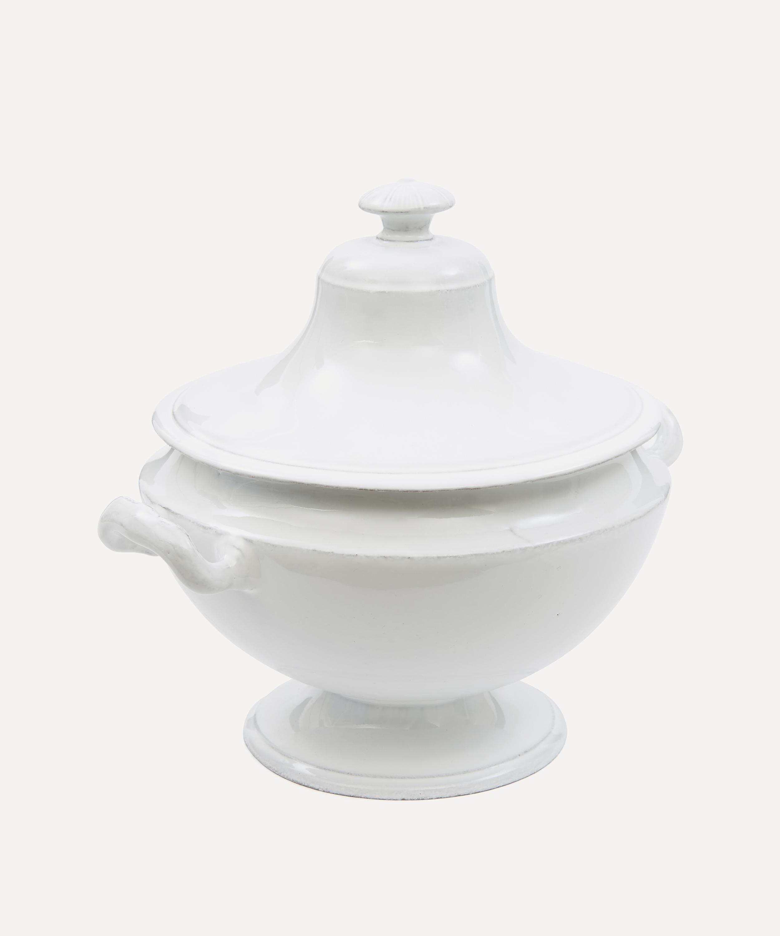 Votary of pre-industrial fabrication, Astier de Villatte is celebrated for being the one and only studio in Paris to hold and harbour the traditions of artisanal ceramic production. Restoring the ancestral systems of moulding and stamping, the Colbert tureen is made using techniques from the Middle Ages which involve moulding a sheet of handmade clay, double firing the ‘biscuit’ piece and glazing the product in white enamel – a lengthy process that requires a drying time of up to one month. Characterised by a rounded silhouette, and pointed lid, it is engraved with the brand’s signature crest - depicting an interlacing A & V - alongside the initials of one of the 40 master artisans who created it. Each handmade piece tells a beautiful story, it romances and imparts a sense of nostalgia into its owner. Use it to serve up hot stews, casseroles or hearty curries.