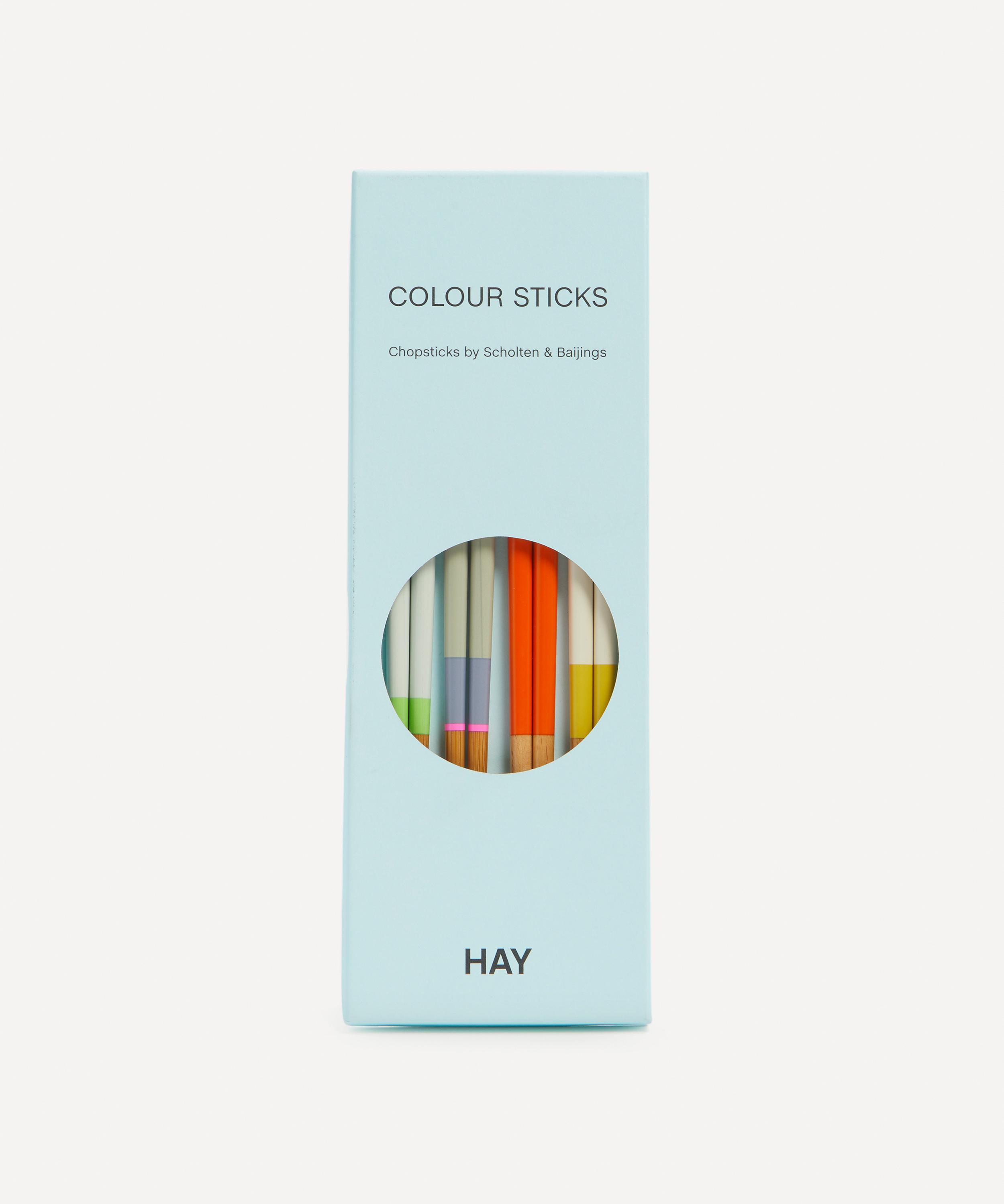 In pairs of bamboo and beech with varied stripe detailing, Hay’s colour sticks chopsticks are a contemporary kitchen essential. Perfect for adding interest to simpler dining arrangements as well as making the most of maximalist tabletops.