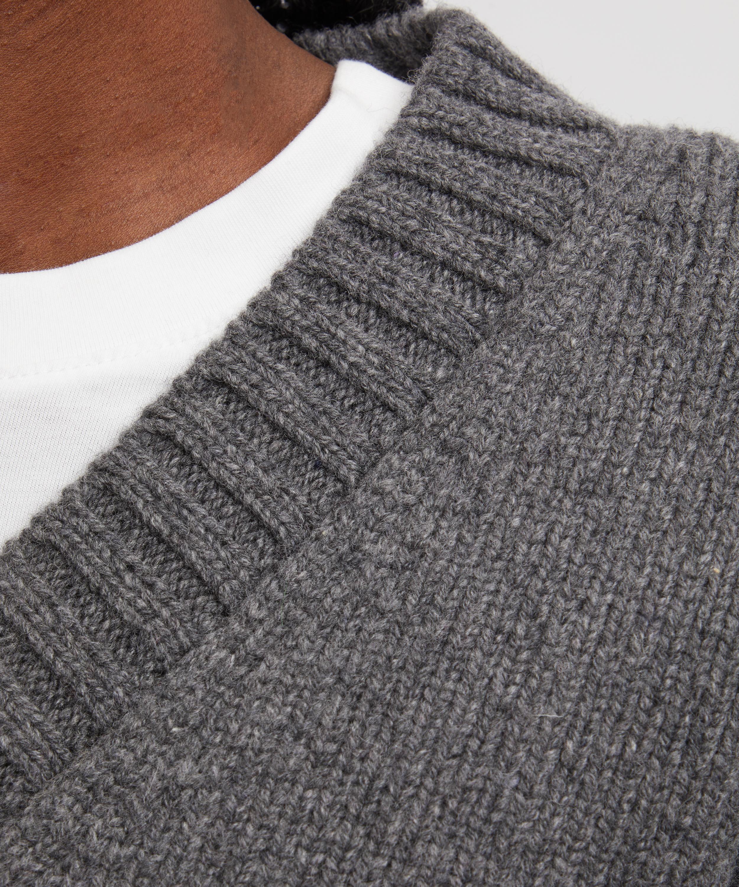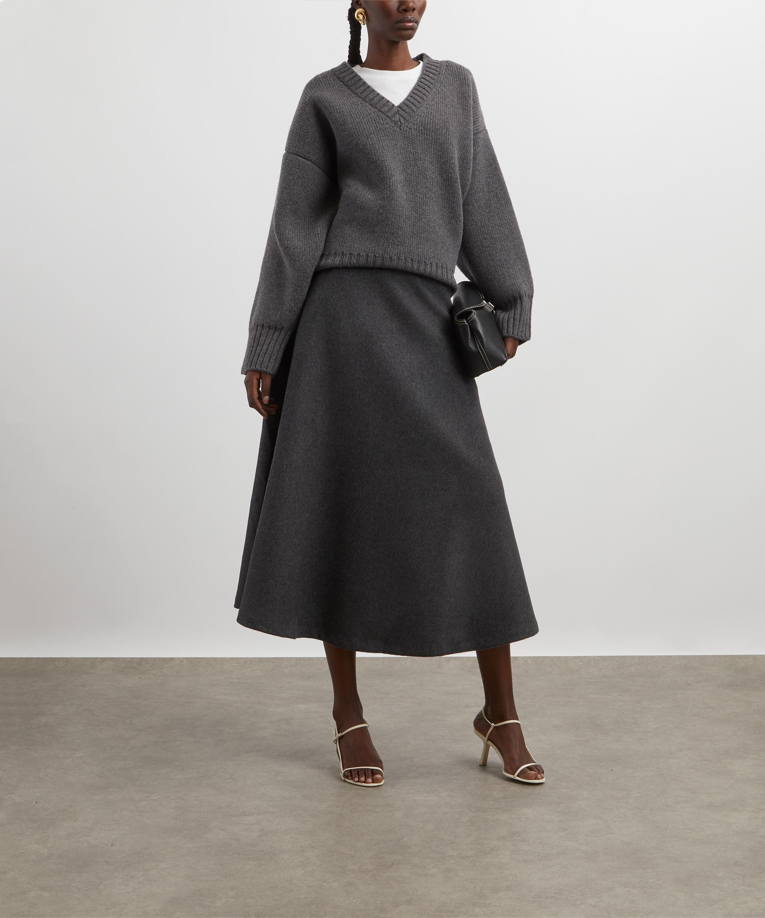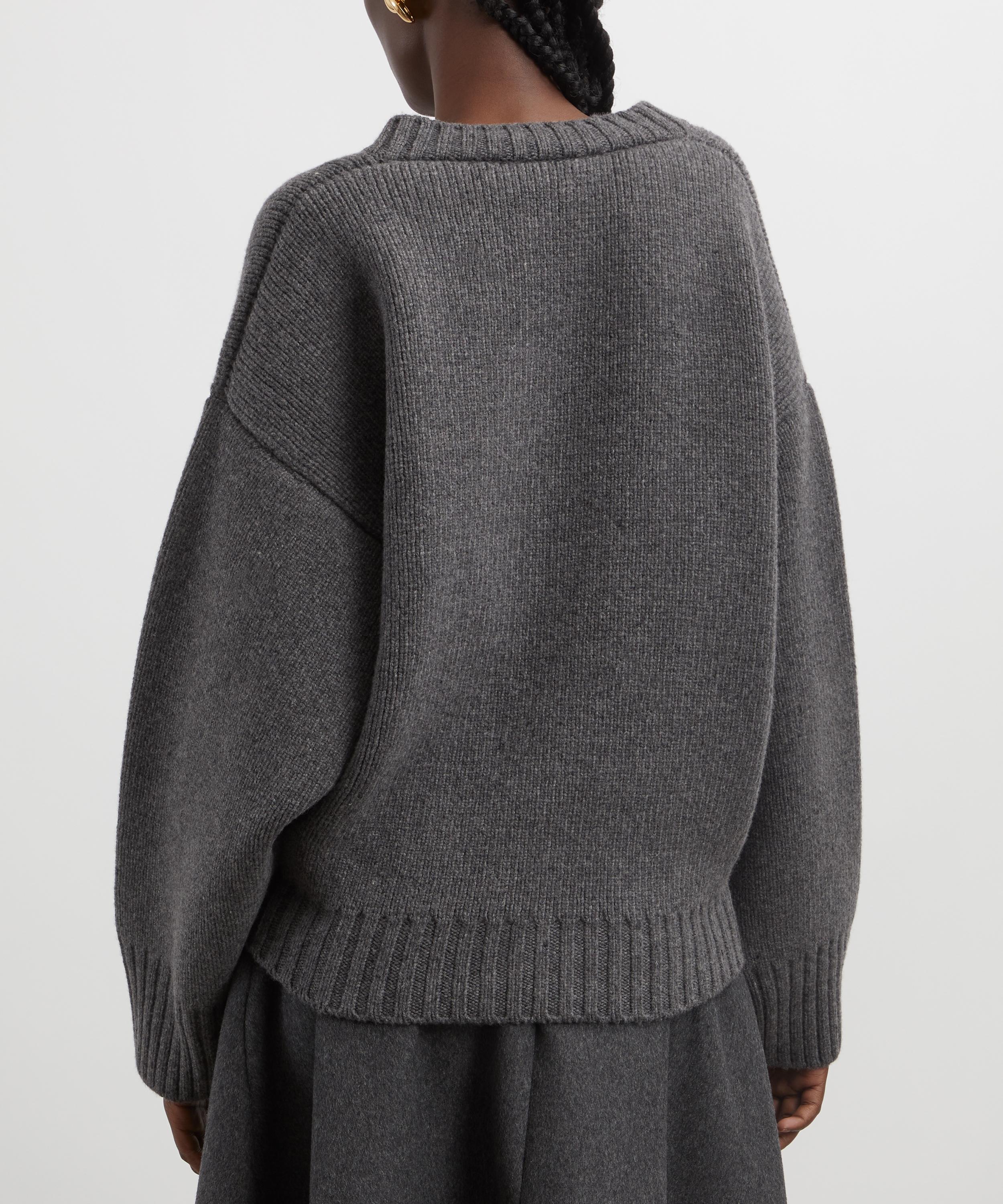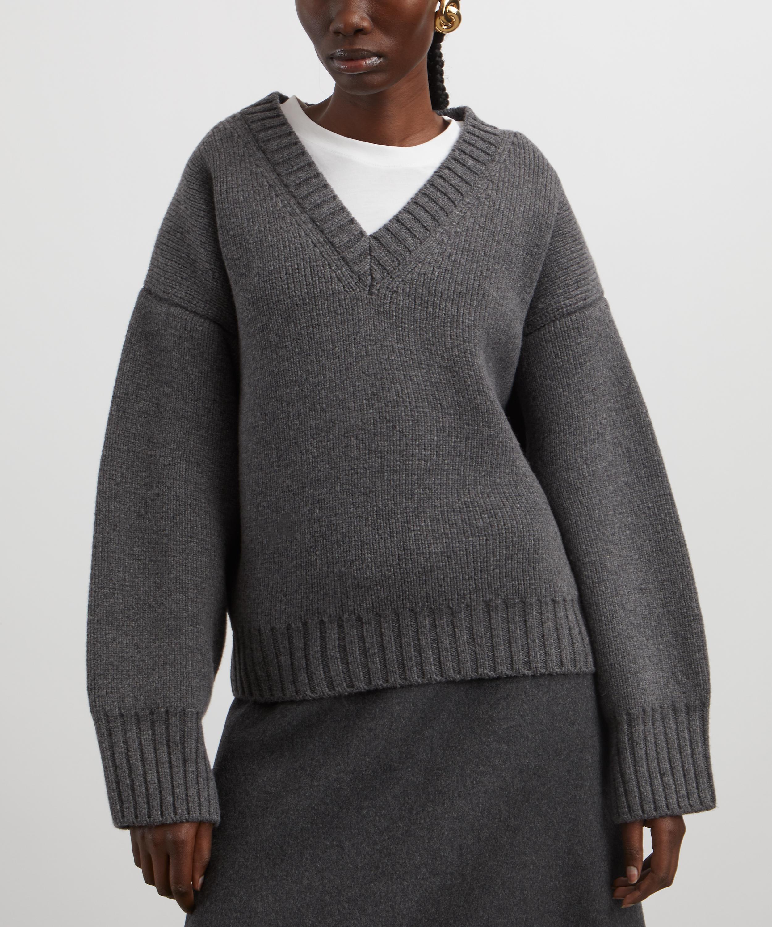 Offering both style and comfort, this grey jumper is expertly knitted in Italy from soft wool. Boasting an oversized fit with dropped shoulders and slouchy long sleeves, its V-neck design is perfect for everyday wear.