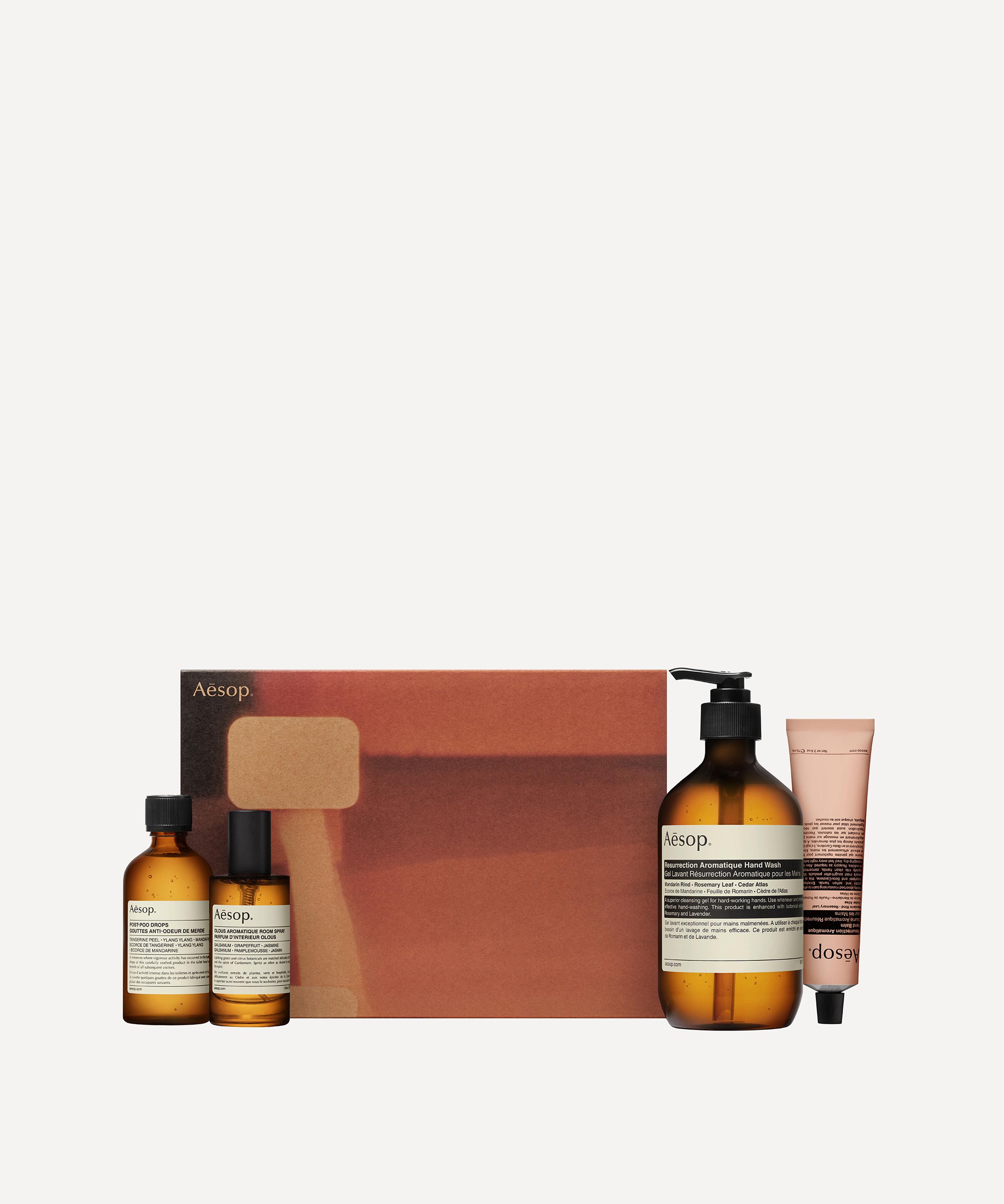 - Complete Home Offering set includes: Resurrection Aromatique Hand Wash 500ml, Resurrection Aromatique Hand Balm 75ml, Olous Aromatique Room Spray 50ml and Post-Poo Drops 100ml