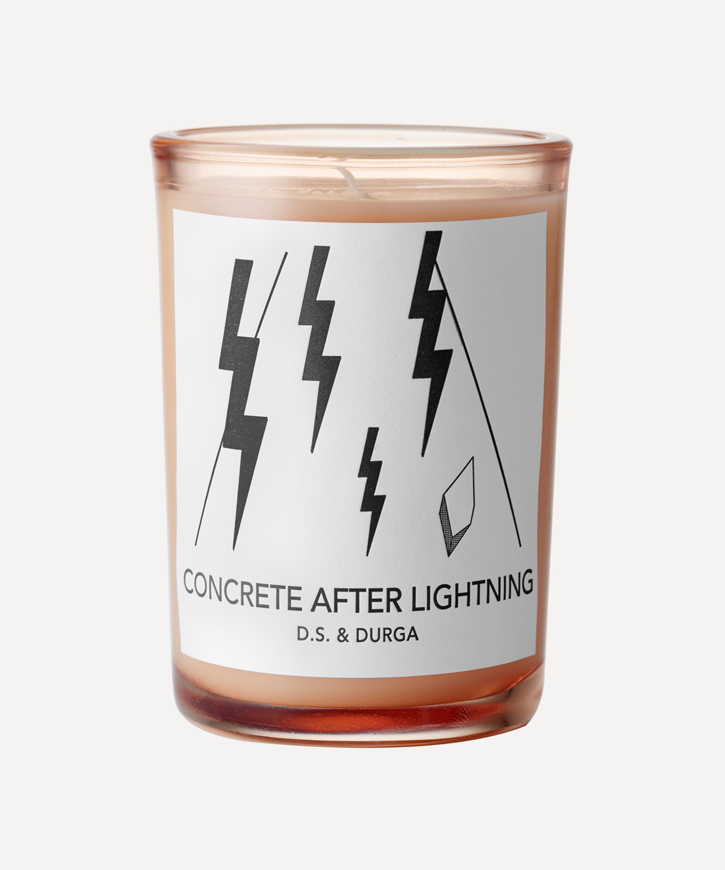 D.S. & Durga's Concrete After Lightning scented candle captures that satisfying moment of respite after a downpour on a humid summer's day, with a blend of aqueous and electric notes.
