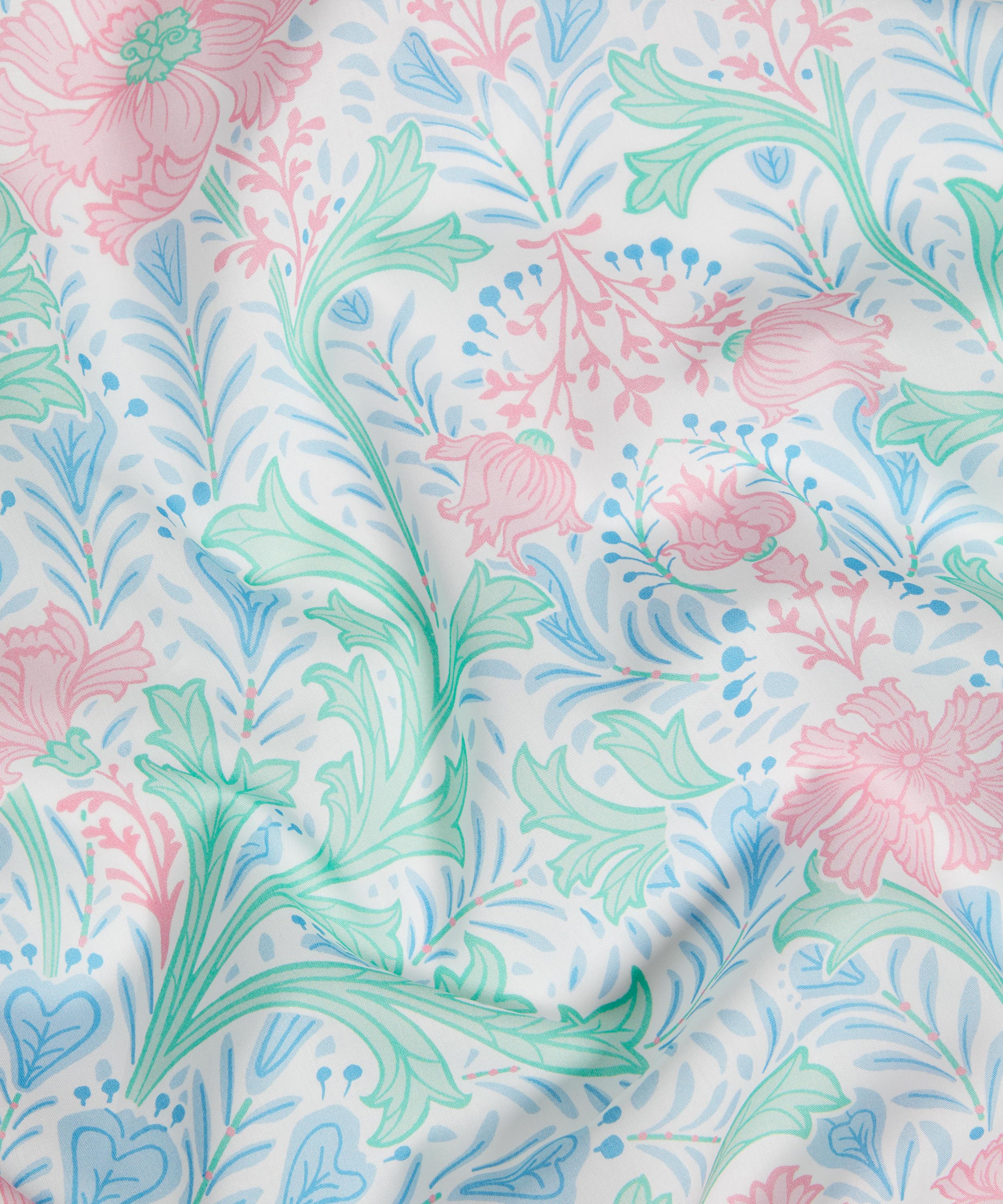 Bursting with beautiful blossom and fabulous flowers, the Summer Bloom capsule collection for Liberty Fabrics celebrates the joyful vibrancy of the summer months. Abundant with fluttering petals, fantastical flora, and swirling foliage, this collection combines a refreshingly contemporary palette of vivid hues with Liberty’s archival patterns. With influences from the Arts and Crafts movement, from bold paisleys to classic florals, these designs are effortlessly timeless.