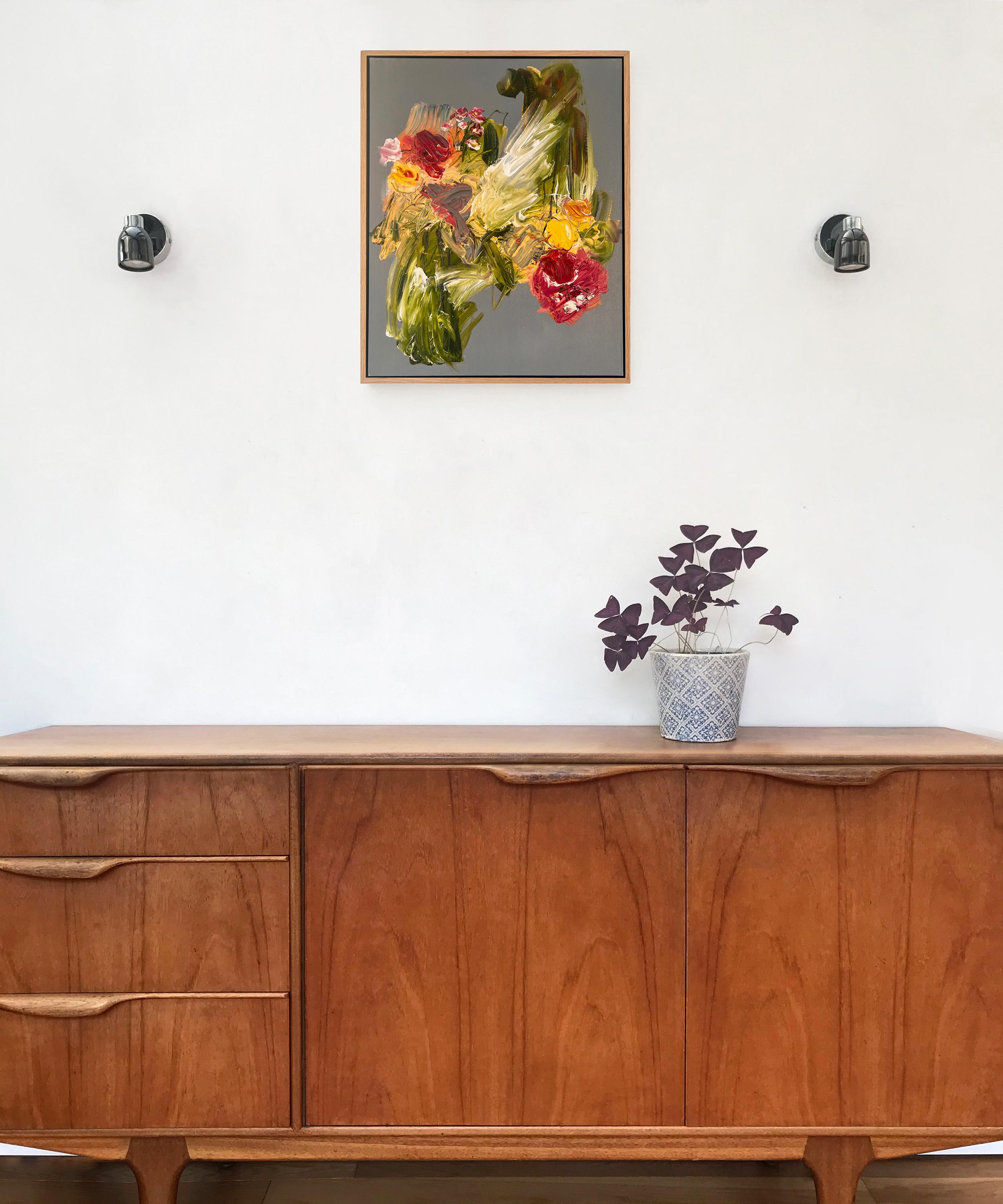 Boulton’s flowers are timeless, they disintegrate and fade with great beauty, and fragility, reminding us of the ephemeral, fleeting nature of life. This series is a classic example of Boulton’s distinctive contemporary painting style, where past and present collide to form an exciting visual language. Her use of expressive colour, gesture and form bring each painting to life, highlighted by the rich medium of oil on canvas. A statement original piece to add to your collection, we suggest hanging against a plain white wall to draw attention to the bold palette and abstract form.