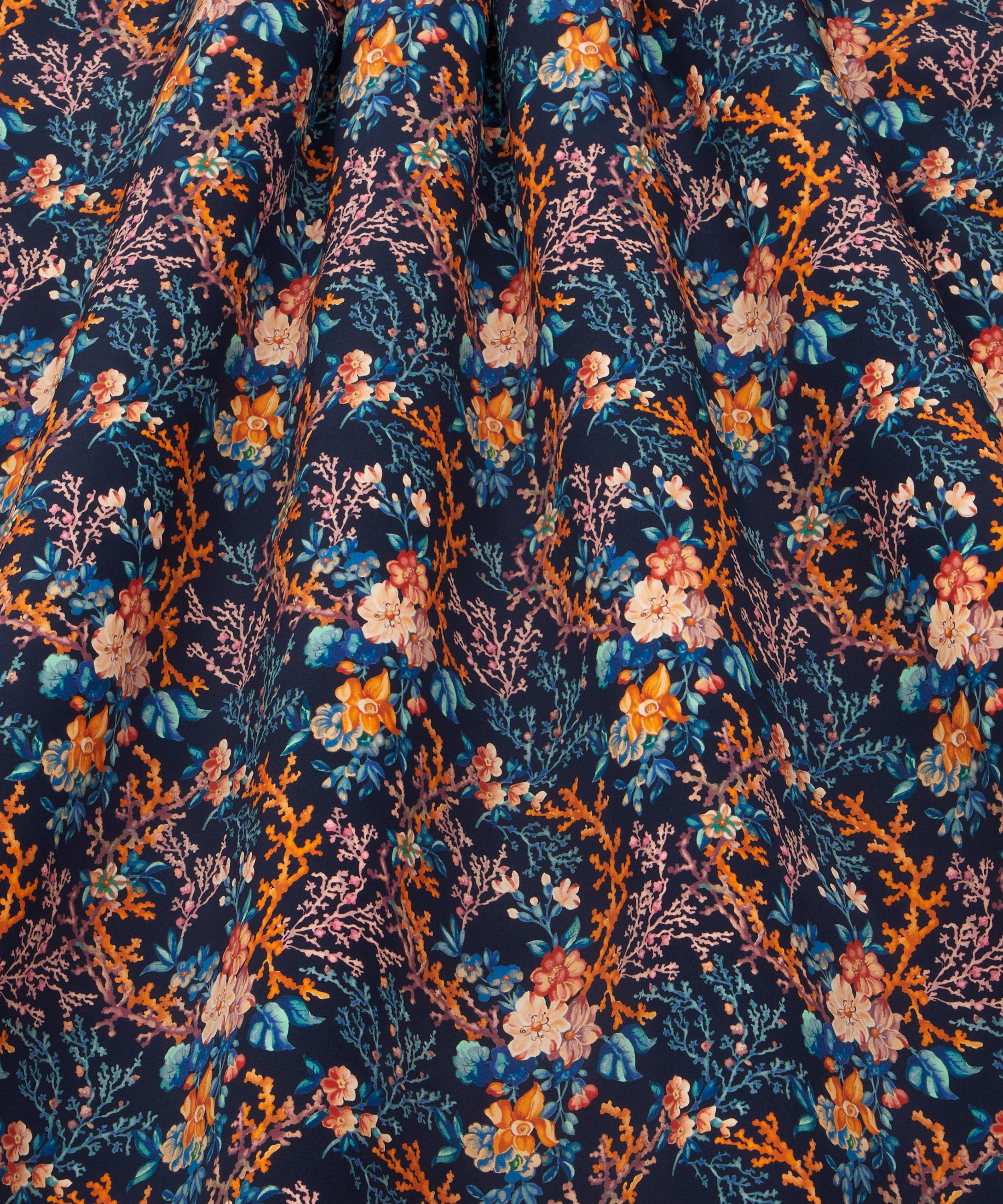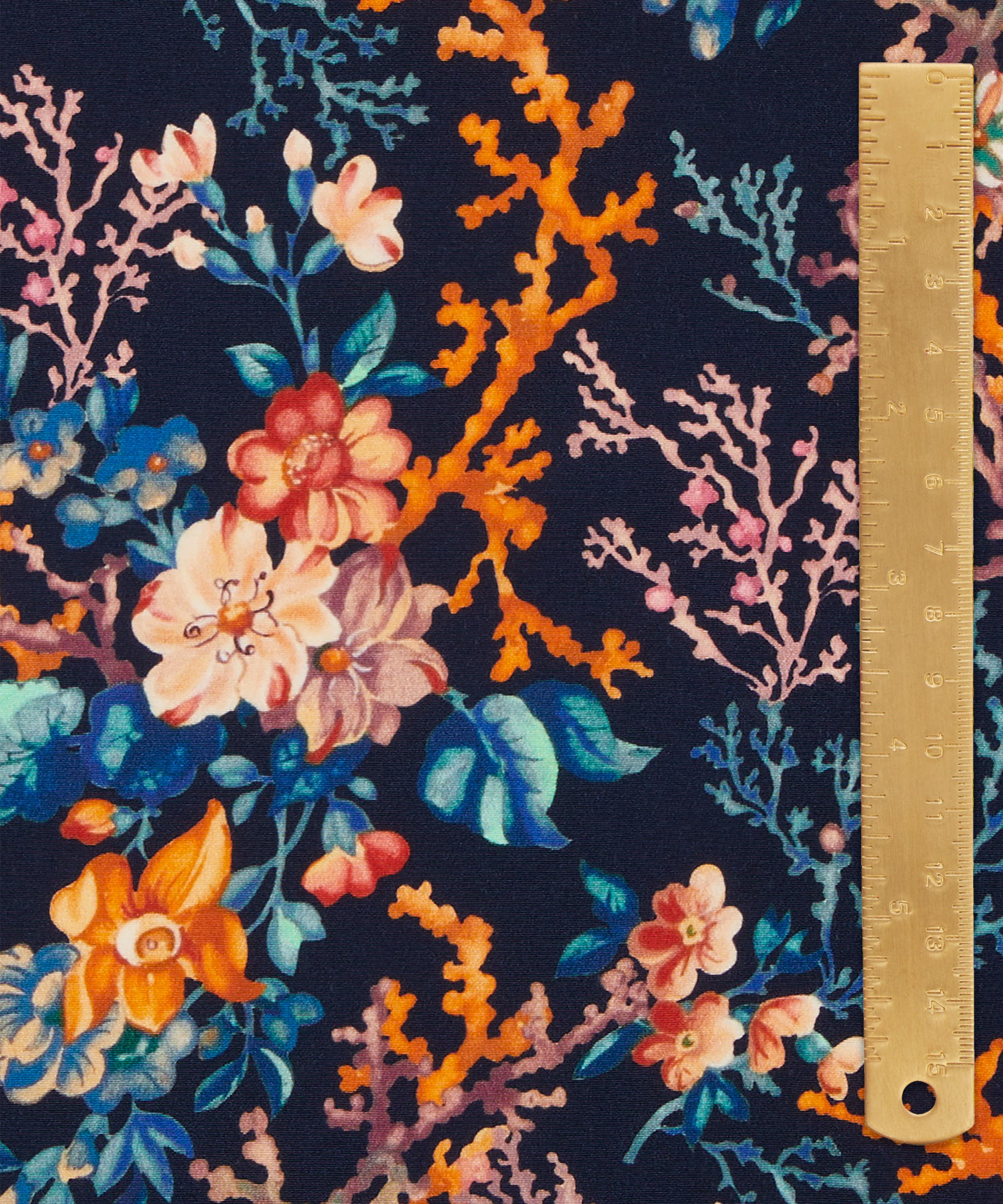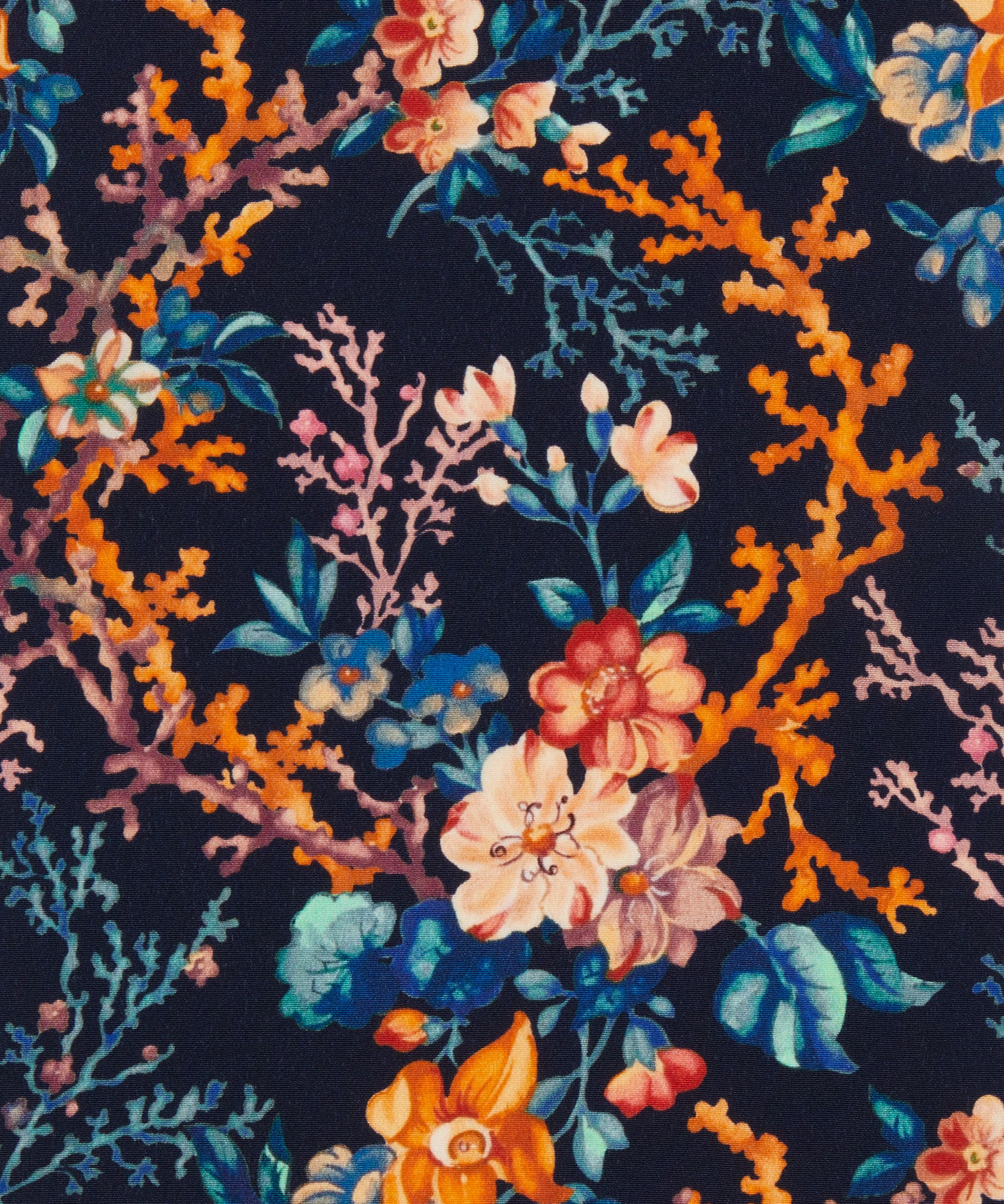 In Coral Meadow, botanical worlds collide within a richly saturated deep-sea garden. Its fantastical marine bouquets incorporate blooming tropical flowers juxtaposed against billowing seaweed fronds and bright, spiky coral. This print is part of the Red story of our Spring/Summer 2024 collection with designs drawing from the colour’s millennia-spanning history as feature of prehistoric paintings, and one of humanity’s first symbols of love, life and vitality.