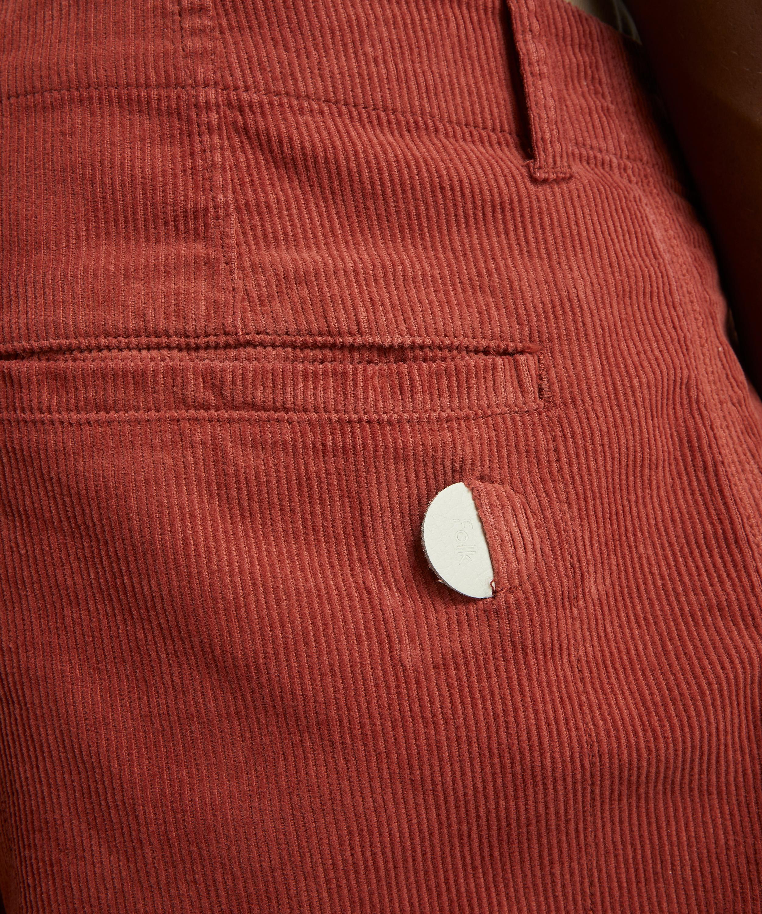 London label Folk updates their classic Assembly trousers in pepper-red corduroy for the new season. Crafted from velvety-smooth cotton, these cords are cut to a relaxed, tapered shape that crops above the ankle. Garment dyed for its rich depth of colour, they’re complete with a concealed button closure, belt loops and multiple pockets on both sides for a tailored finish with an easy-going edge.