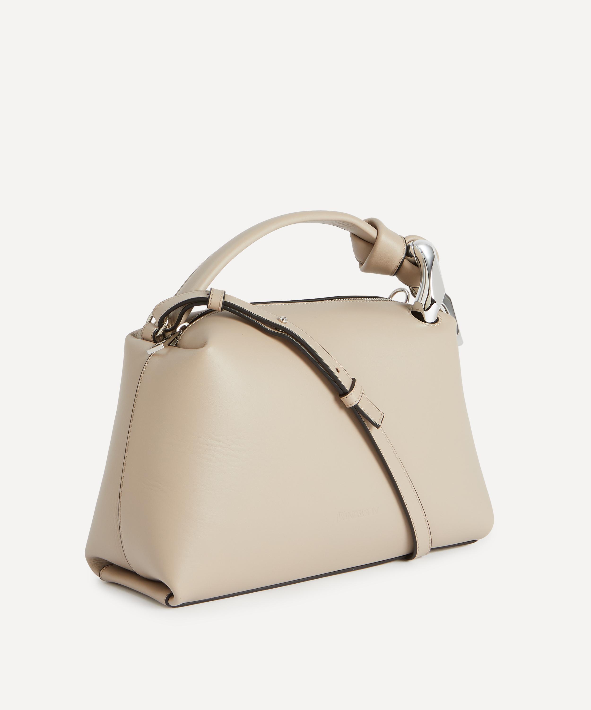 Carry your everyday staples in style with JW Anderson's Corner tote bag, boasting a sleek design, defined by its' single chain link accent. Crafted from calf leather, this spacious bag features two top handles, a metallic logo detail on the front, a magnetic fastening and a slip pocket on the inside - perfect for your daily errands, this bag is poised to elevate any ensemble with a dose of effortless sophistication.