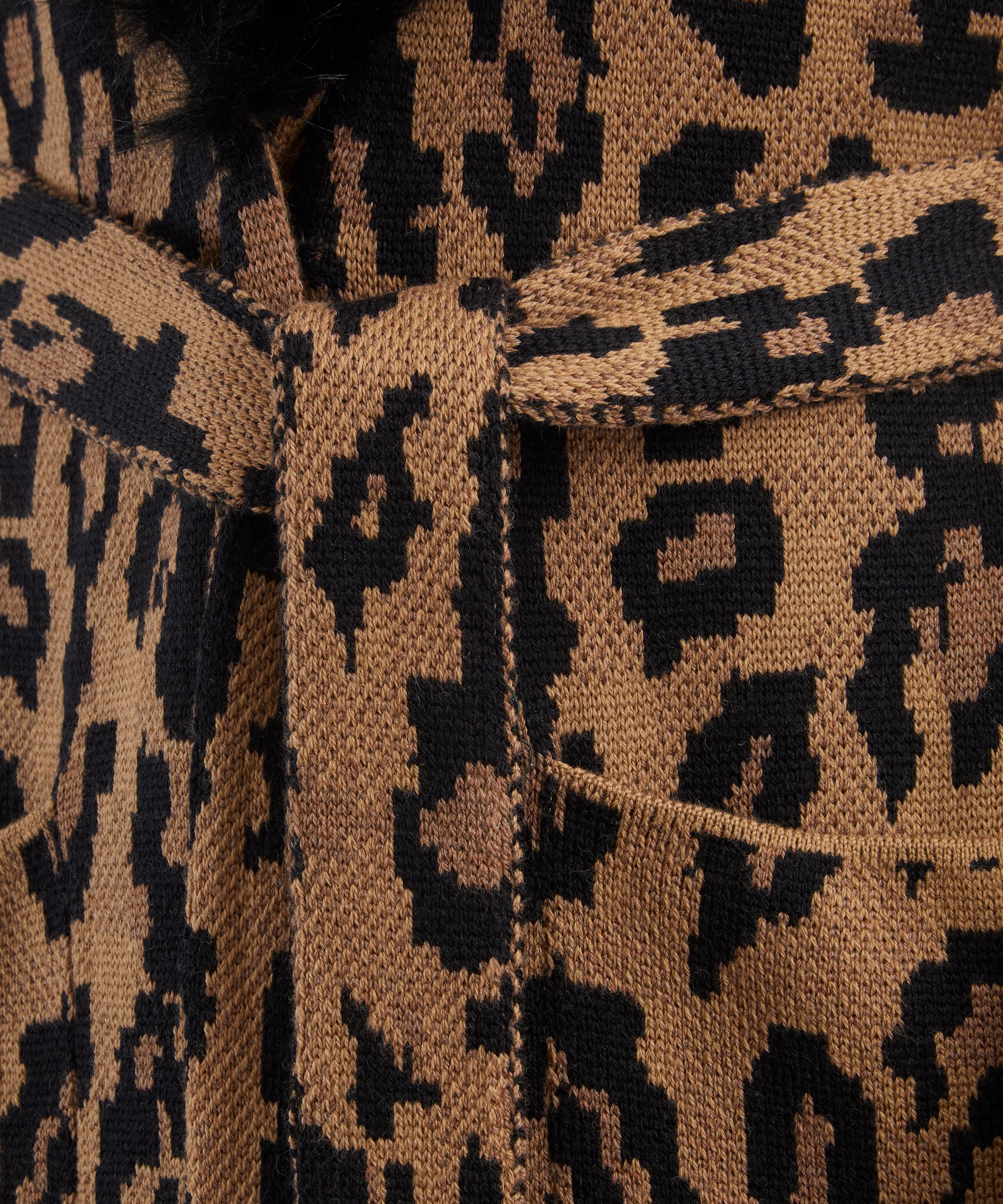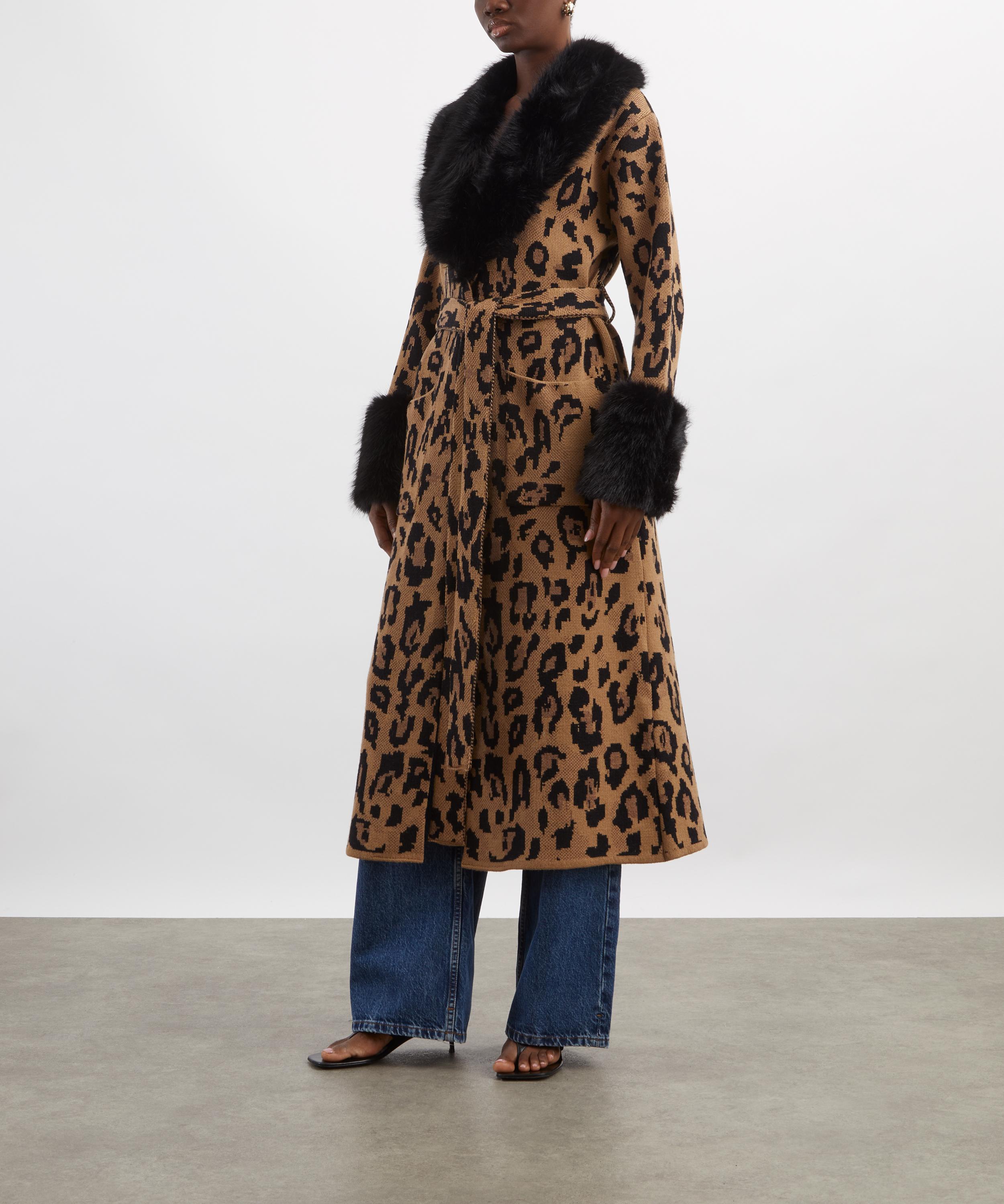 Make a statement in the Cosmic Cat Coat - a heavyweight knitted maxi coat in bold leopard print inspired by Hayley’s vintage treasures. Featuring a plush faux-fur collar, dramatic cuffs, and tailored details, it blends unapologetic glamour with an effortlessly elegant silhouette.