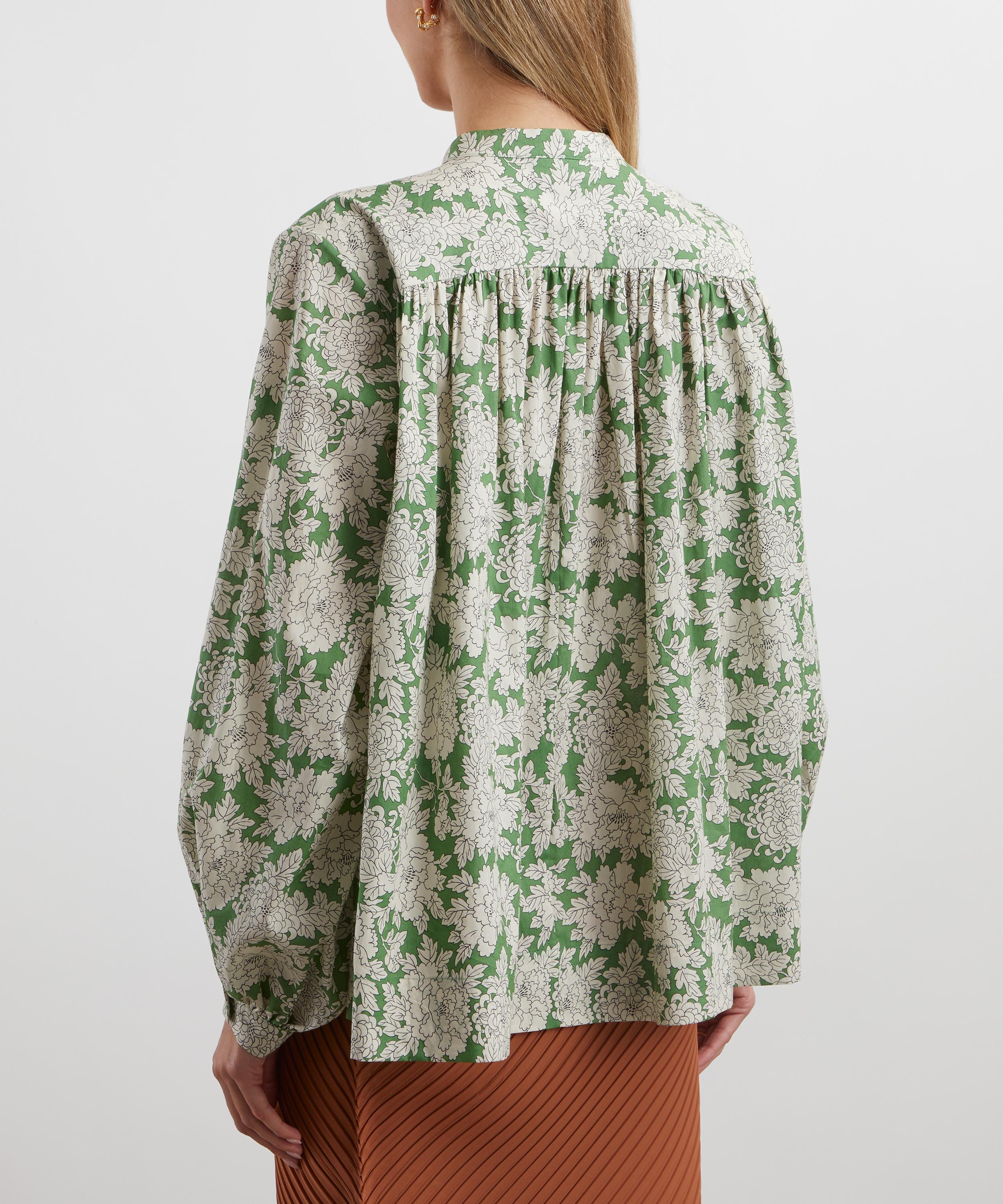 Crafted from our signature Tana Lawn Cotton™, the Boho Shirt features a voluminous fit and long blouson sleeves that flatter the silhouette. Inspired by retro boho fashion, it boasts a grandad-style collar with a half-placket, complemented by intricate gathering along the yoke and shoulders.