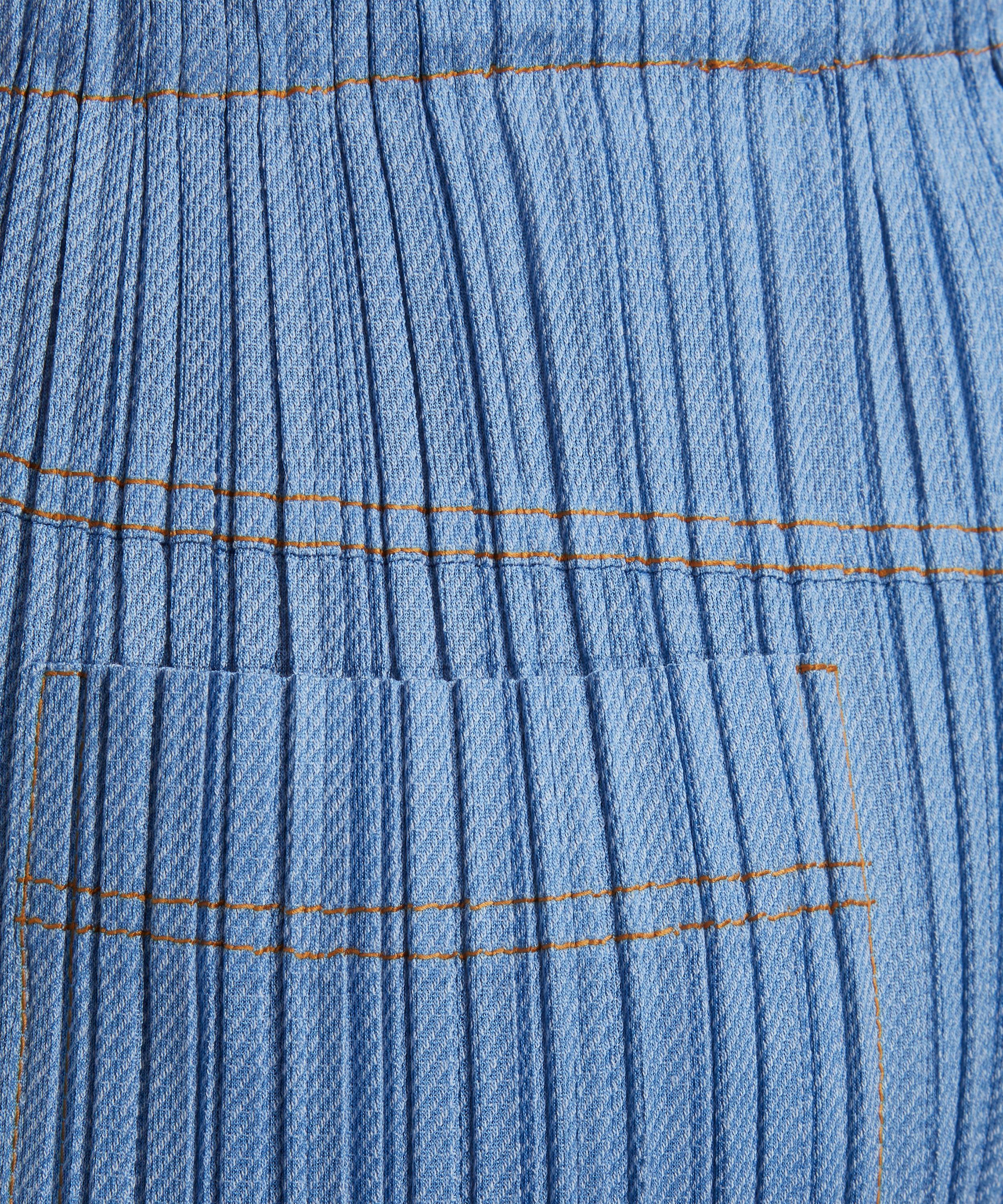 Pleats Please Issey Miyake COTTON DENIM Pleated Crop Trousers