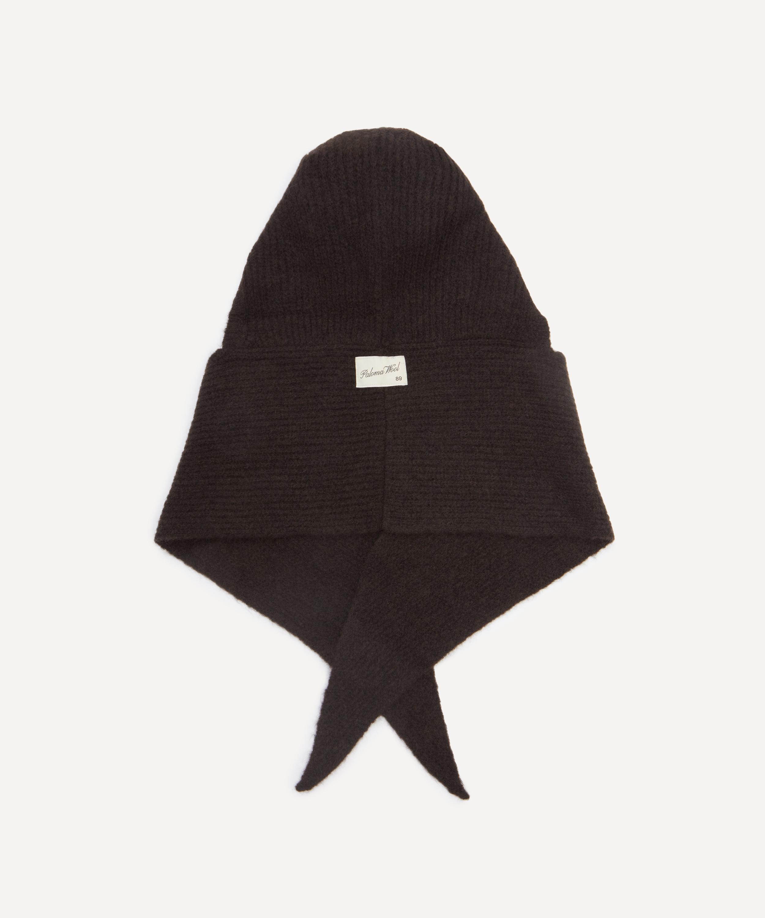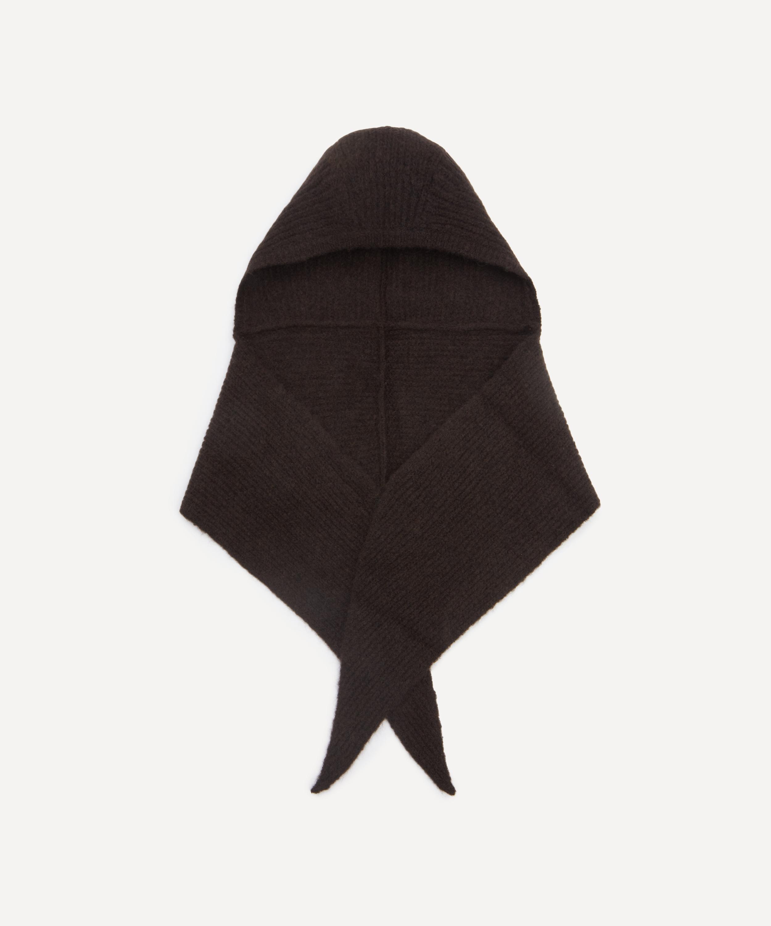 Crafted from a warming alpaca and wool blend with a slight stretch, this new season staple is designed is be worn as a hood, featuring two wide scarf extensions that can be wrapped around the neck as a scarf to lock in warmth.