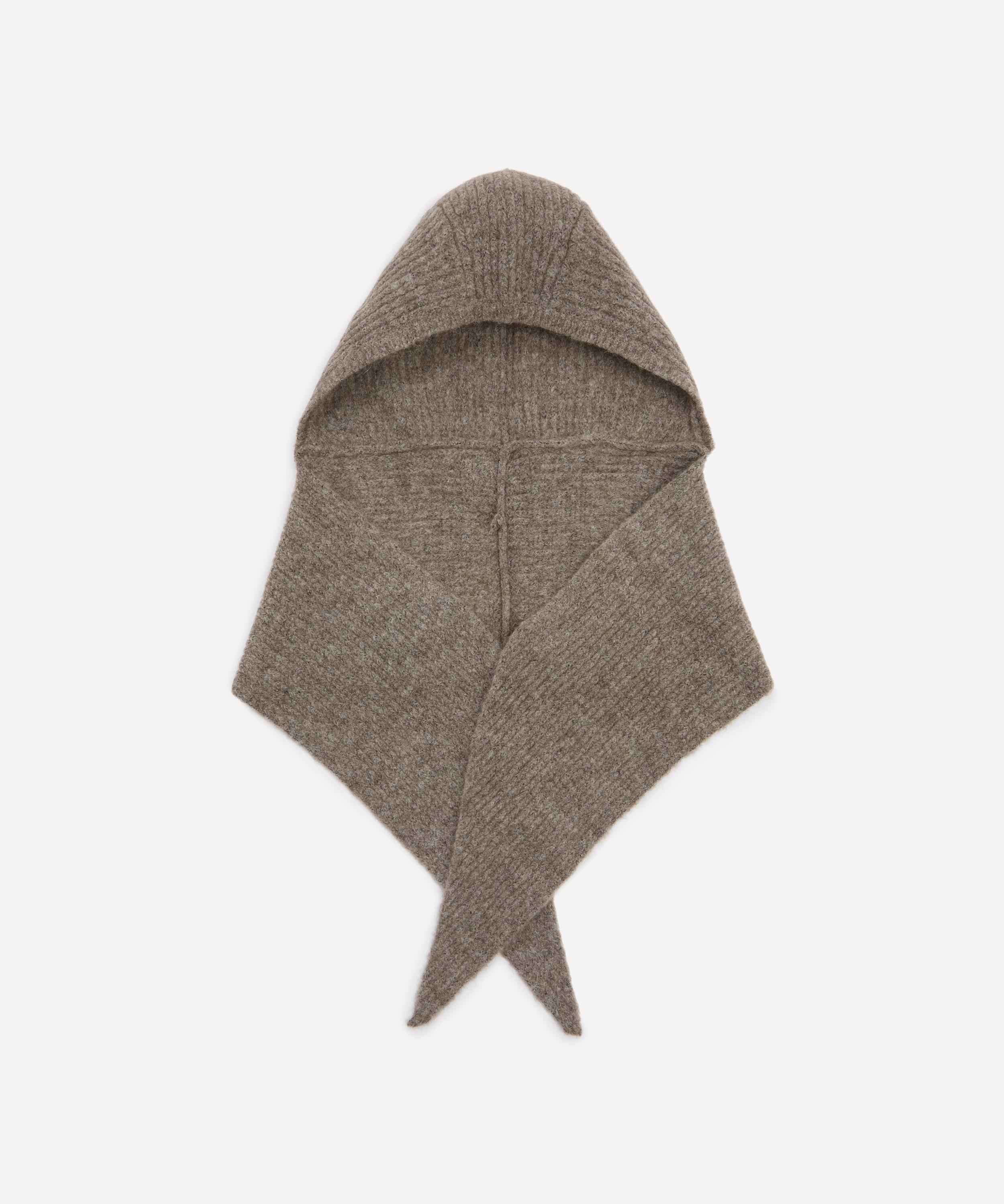Crafted from a warming alpaca and wool blend with a slight stretch, this new season staple is designed is be worn as a hood, featuring two wide scarf extensions that can be wrapped around the neck as a scarf to lock in warmth.