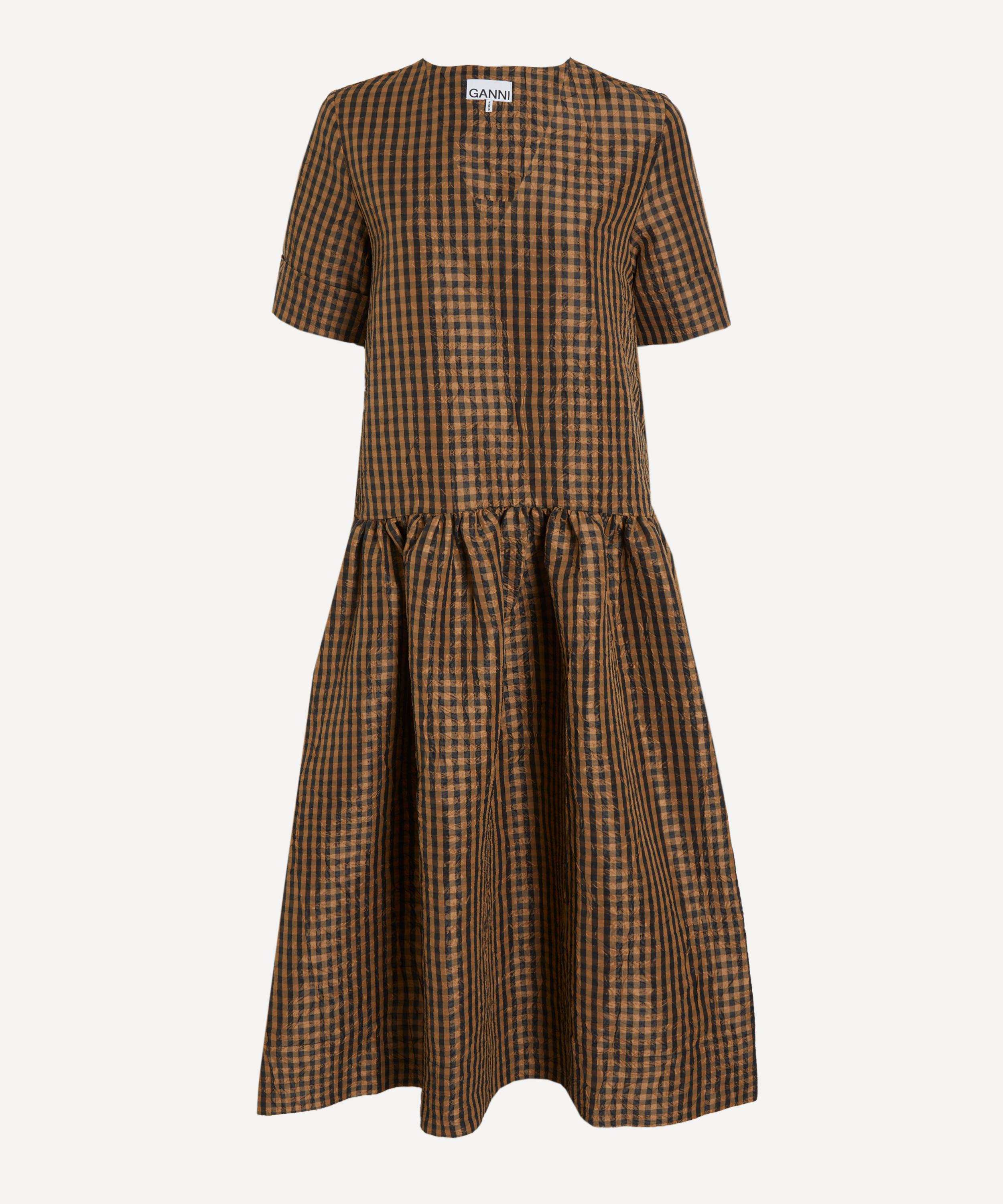 The Crinkled Check Long Dress from GANNI stays true to the brand's coveted cool-girl image.