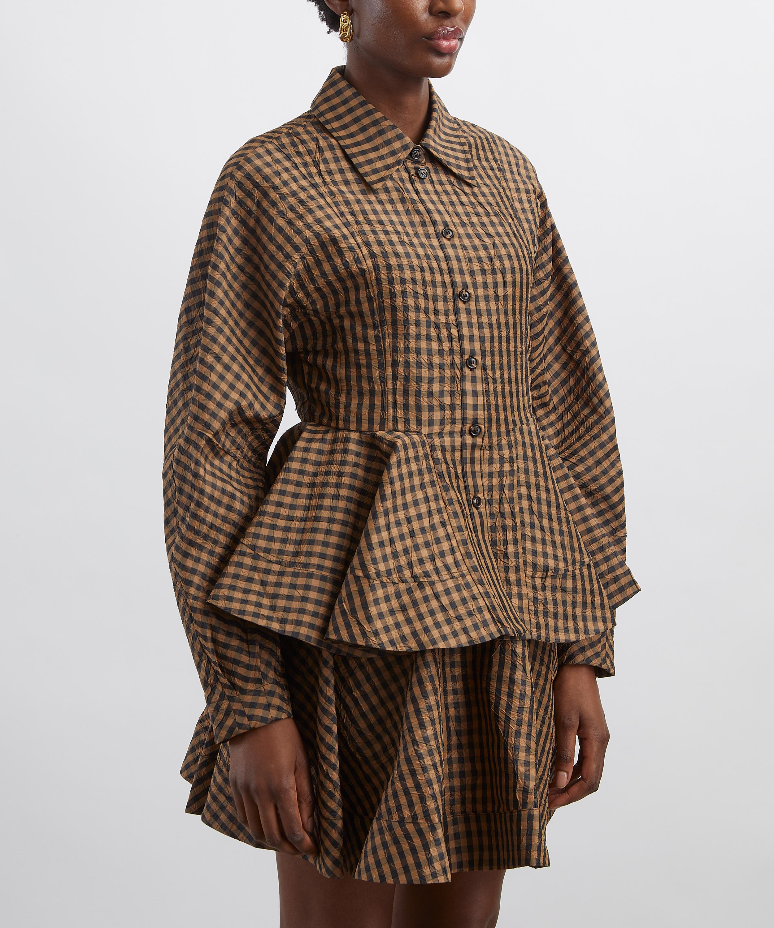 The Crinkled Check Peplum Shirt from GANNI stays true to the brand's coveted cool-girl image.