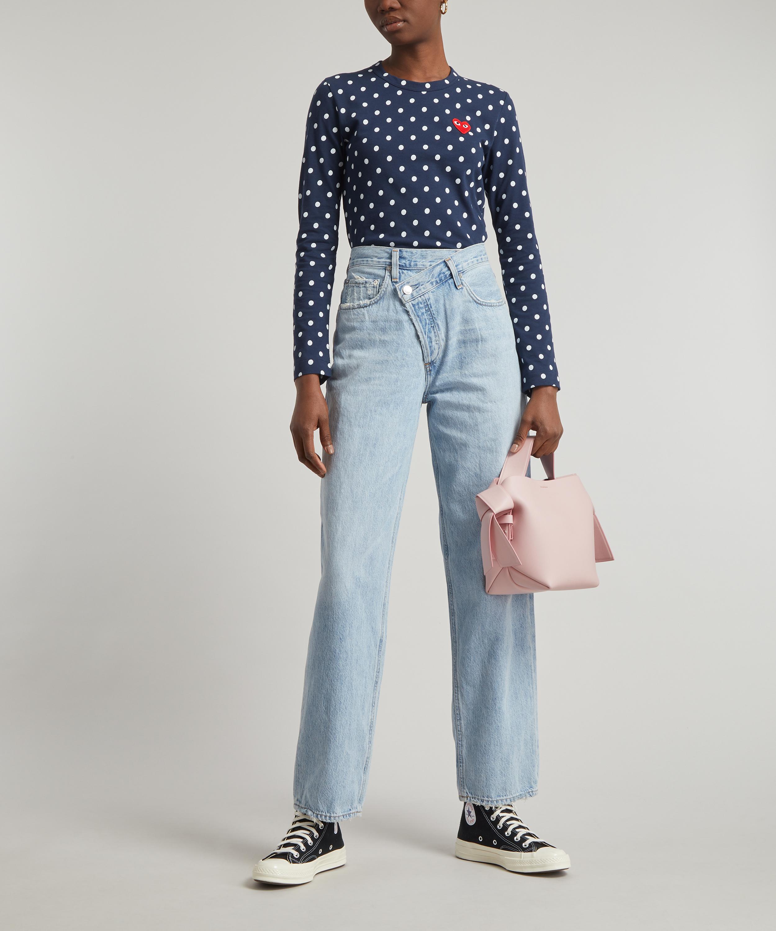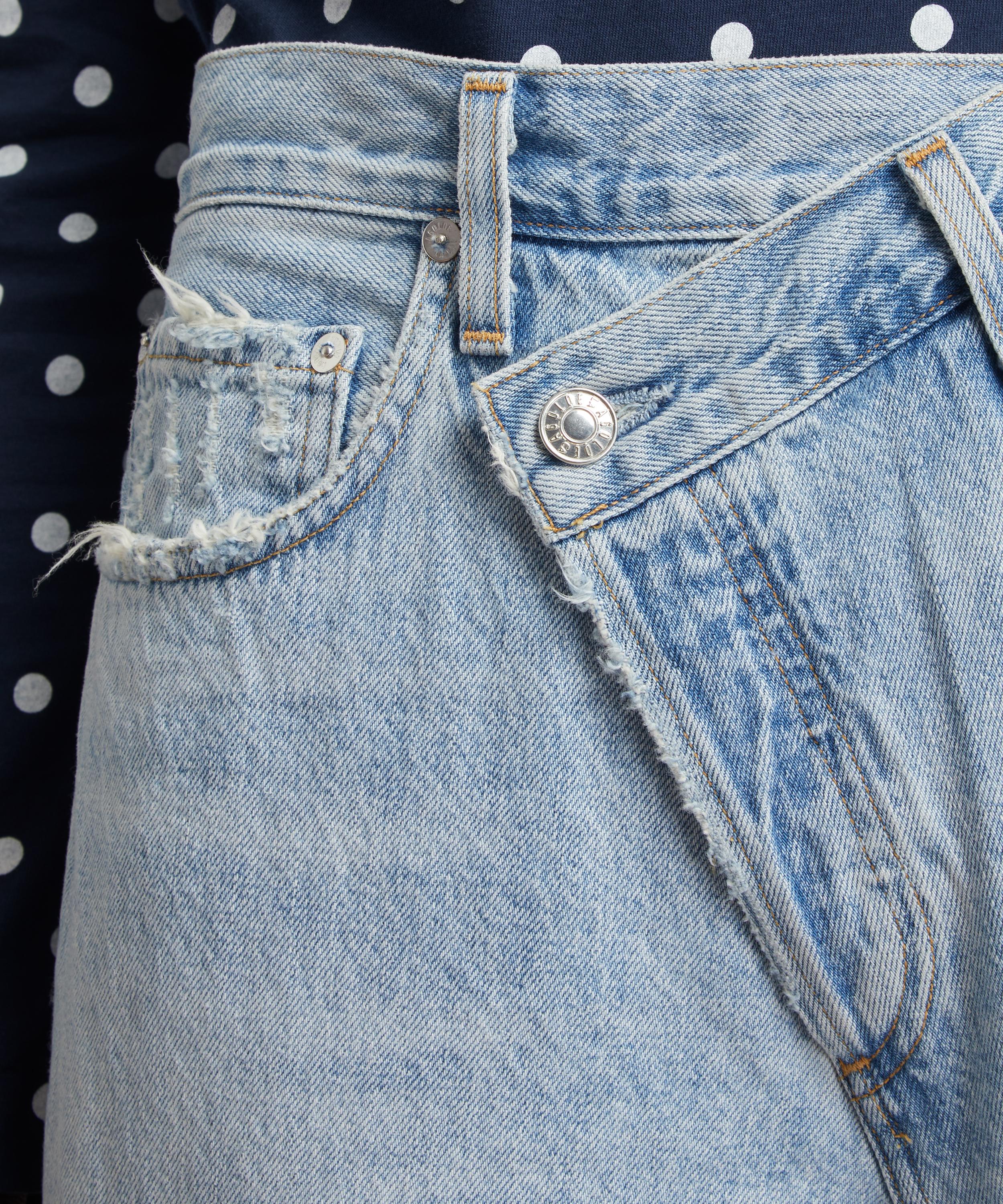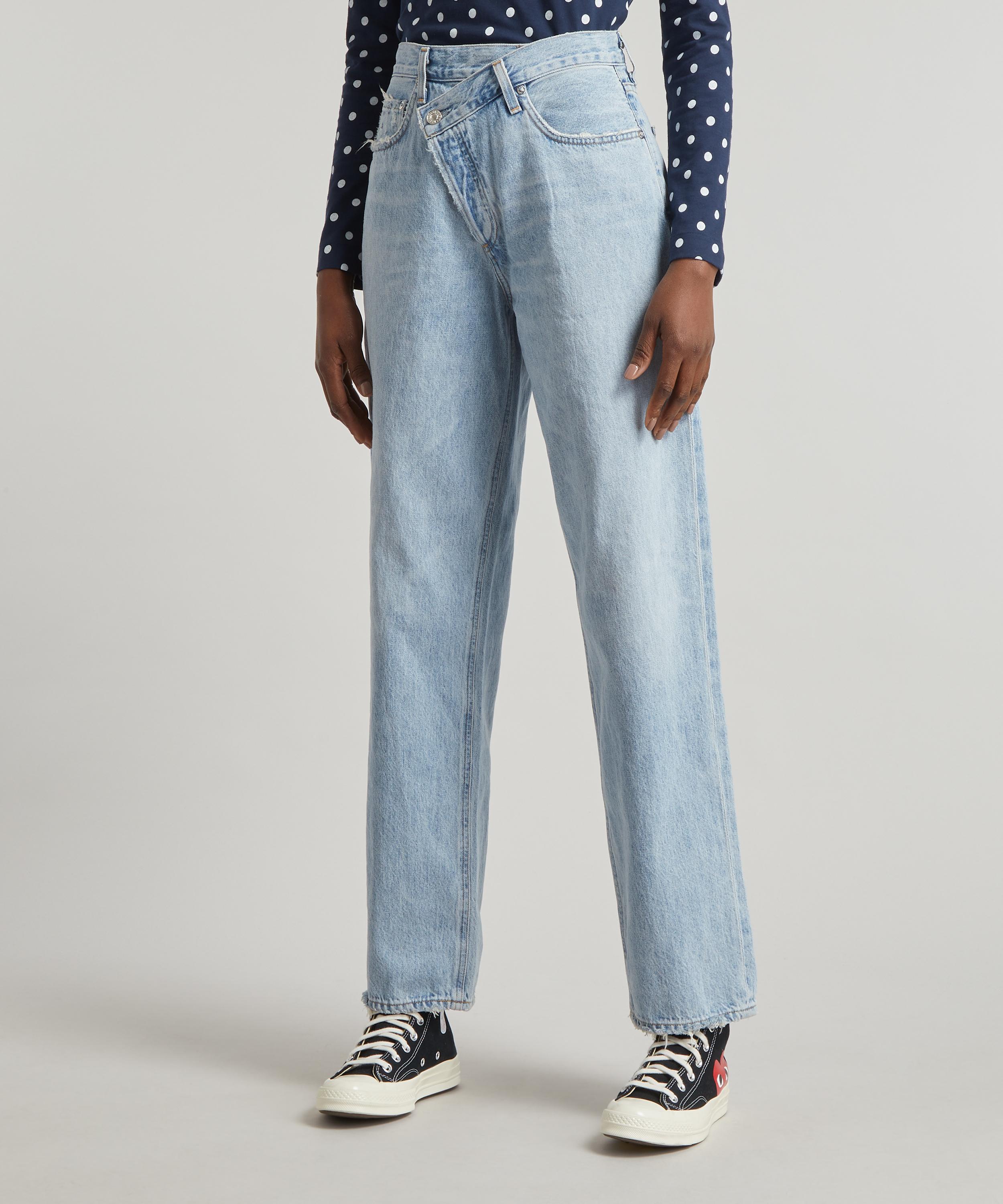 Combining an irreverent flair with a meticulous eye for detail, AGOLDE creates vintage-inspired pieces for a contemporary wardrobe. Cut from light-blue cotton, these straight-fitting jeans with distressed detailing along its pockets and hems have a flattering mid-rise and an abstract, asymmetric criss-cross buttoned front closure. Simply pair them with a polka-dot patterned t-shirt for a playful edge to your casual weekend edit.