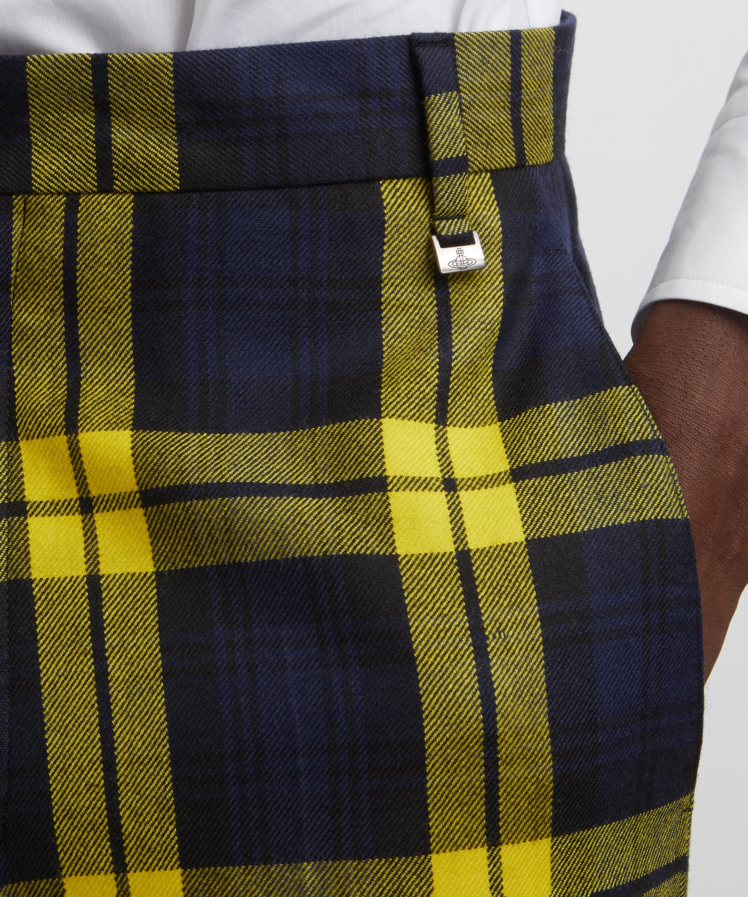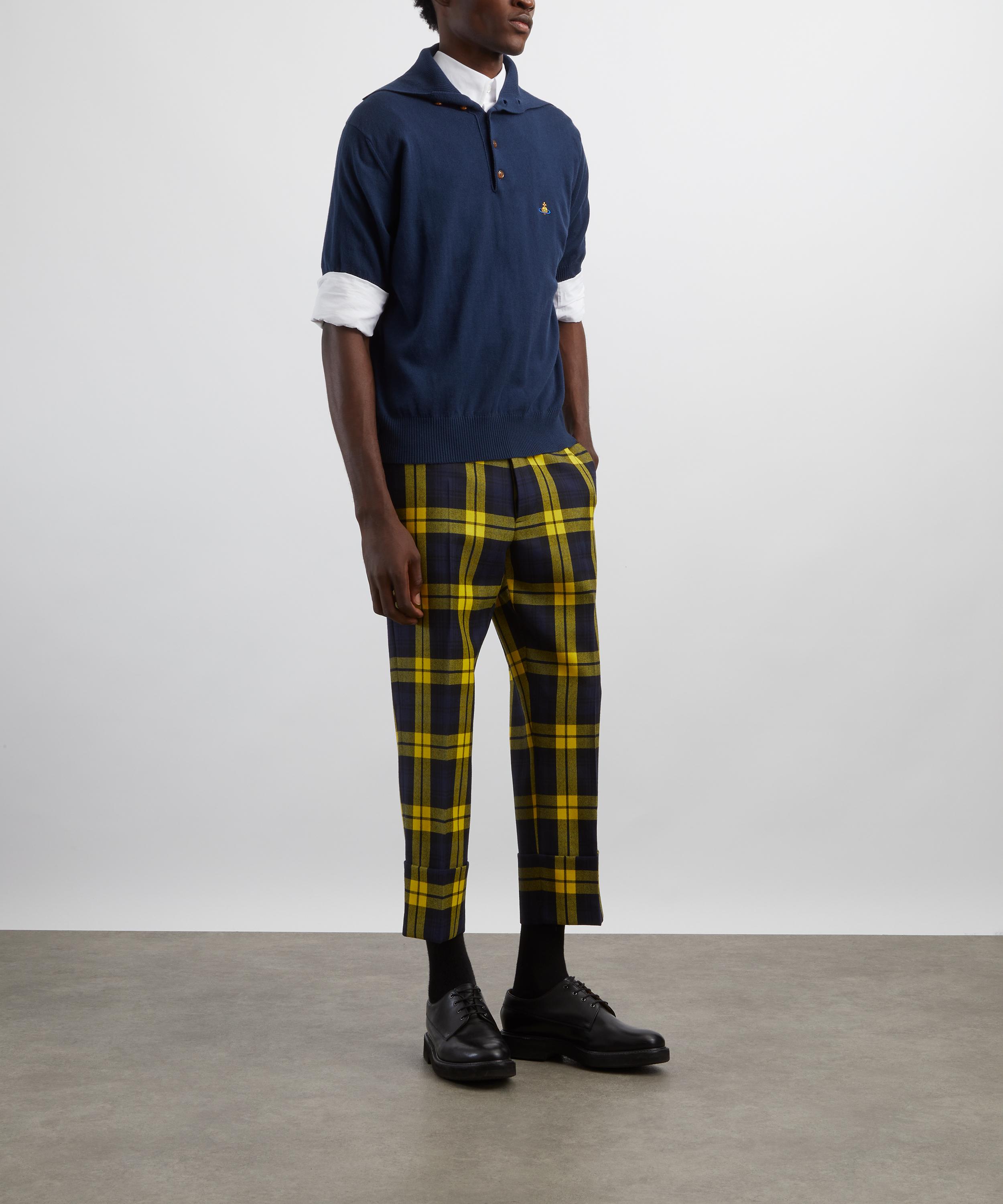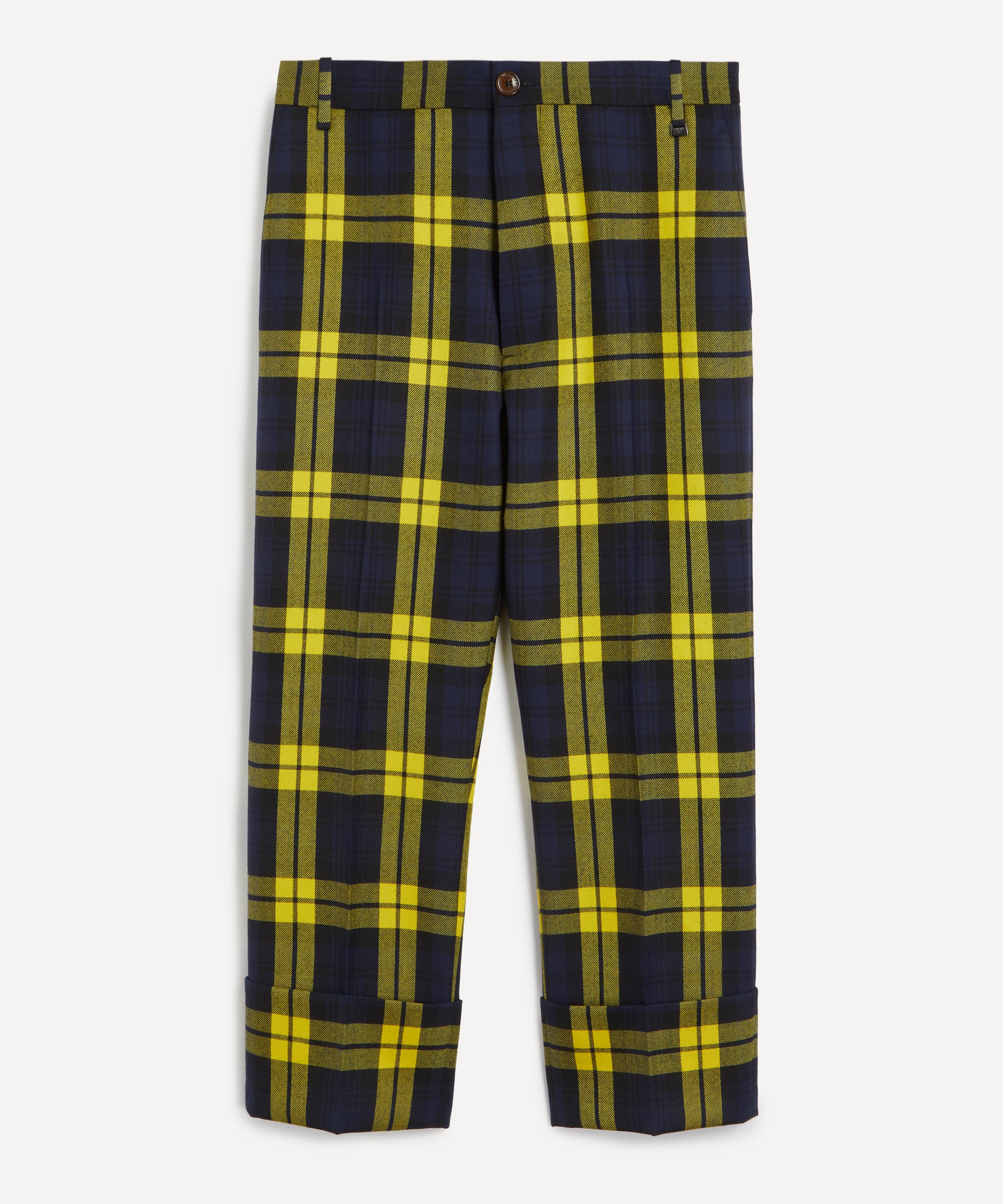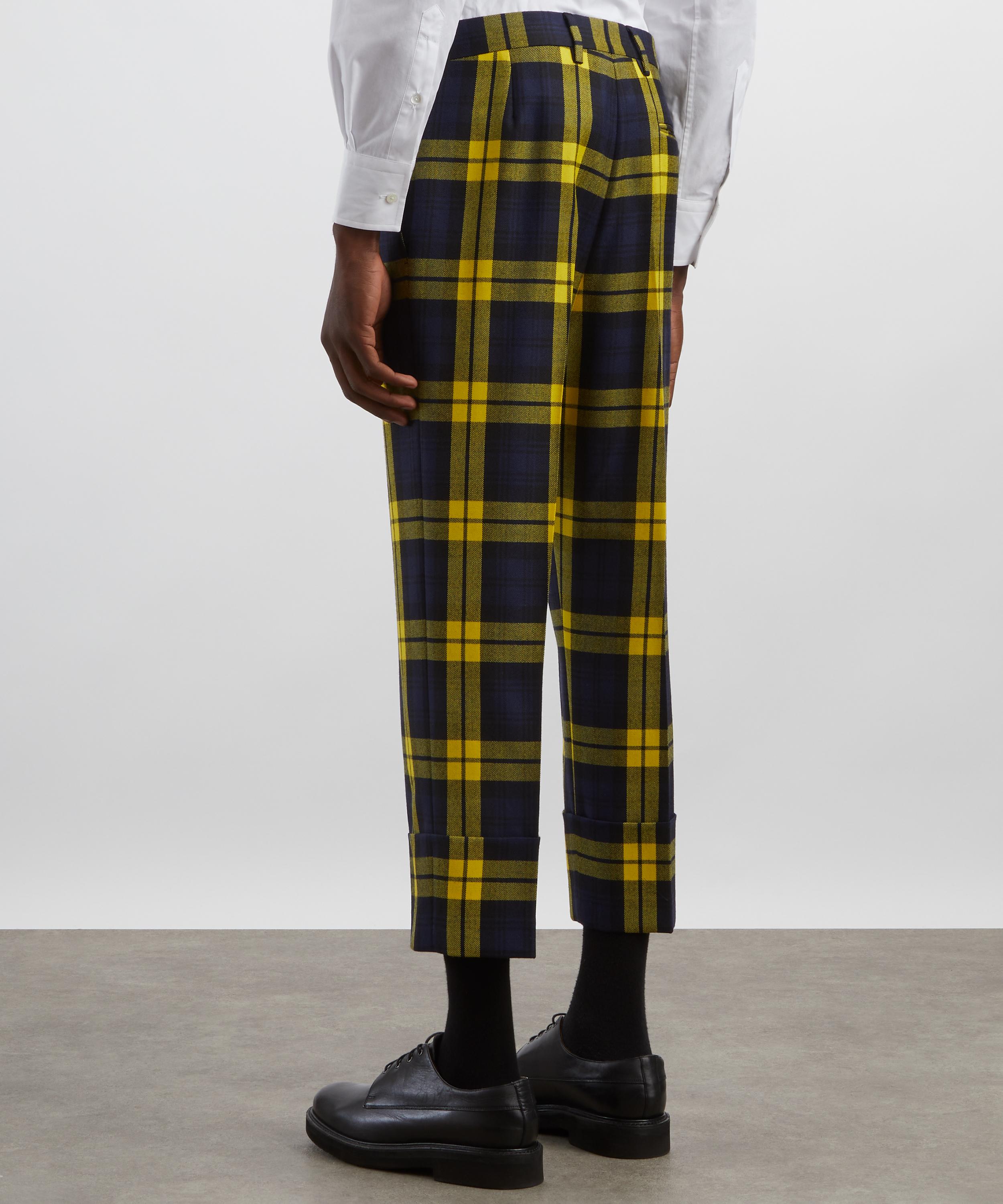 Crafted from virgin wool in a vibrant yellow and navy plaid, the house’s signature George trousers are tailored to a slim fit with a cropped length that sits just above the ankle.