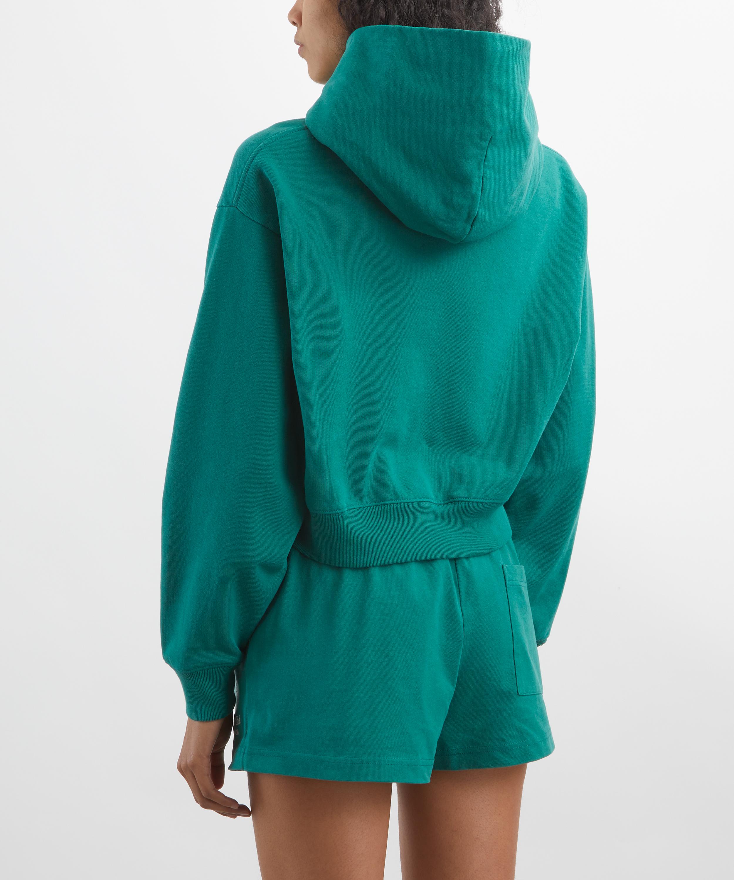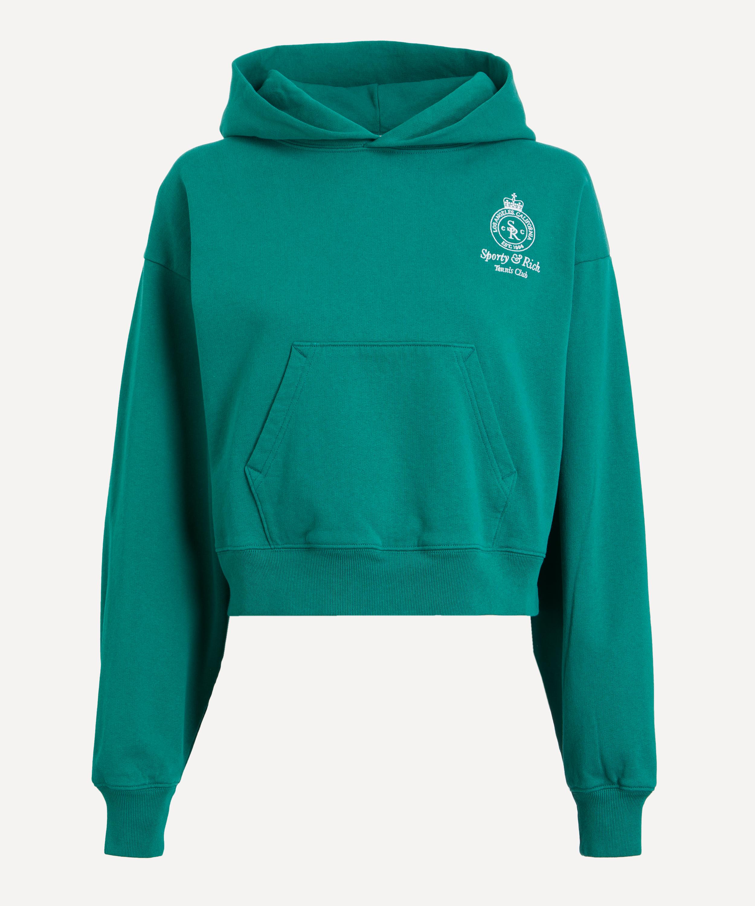 Crafted from cotton jersey, this slightly oversized cropped hoodie features a spacious kangaroo pocket and 'Sporty & Rich Crown Tennis' embroidery at the chest, adding a signature touch to its casual, athletic-inspired style.