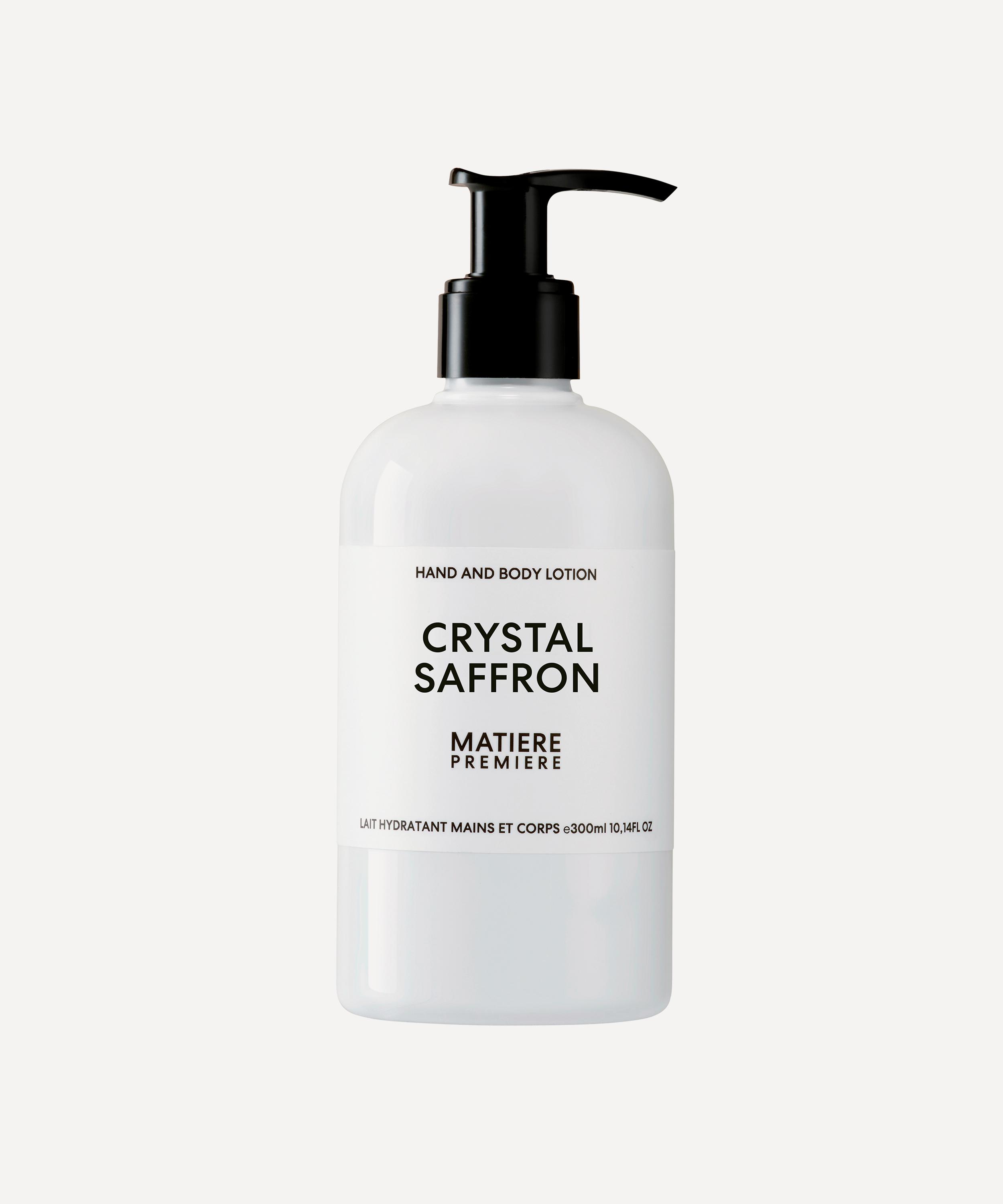 Elevate your daily body care regime with the luxurious Crystal Saffron hand and body lotion from French perfume house MATIERE PREMIERE.