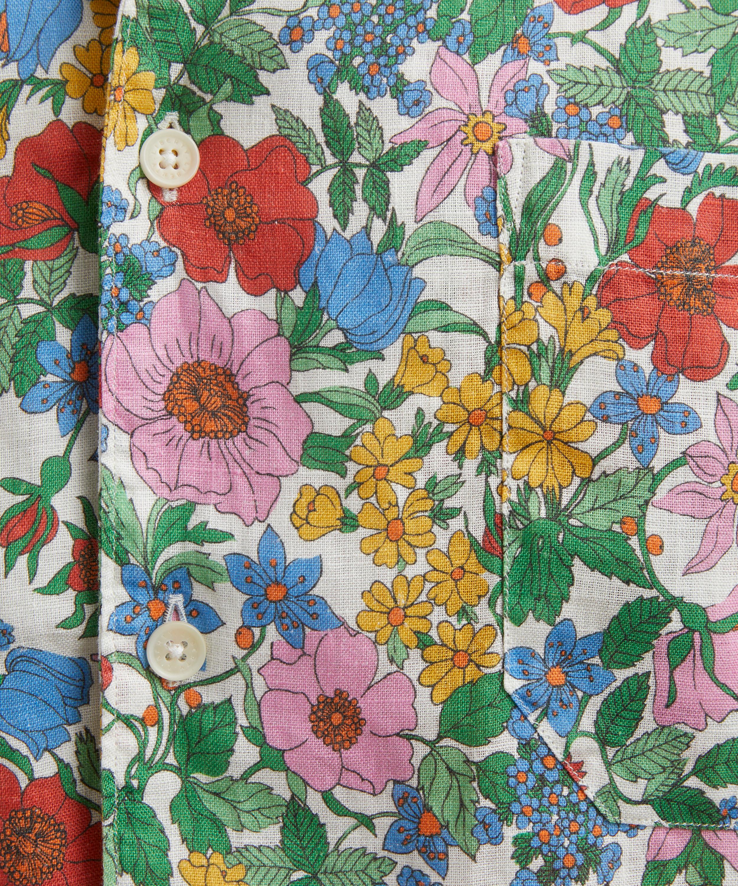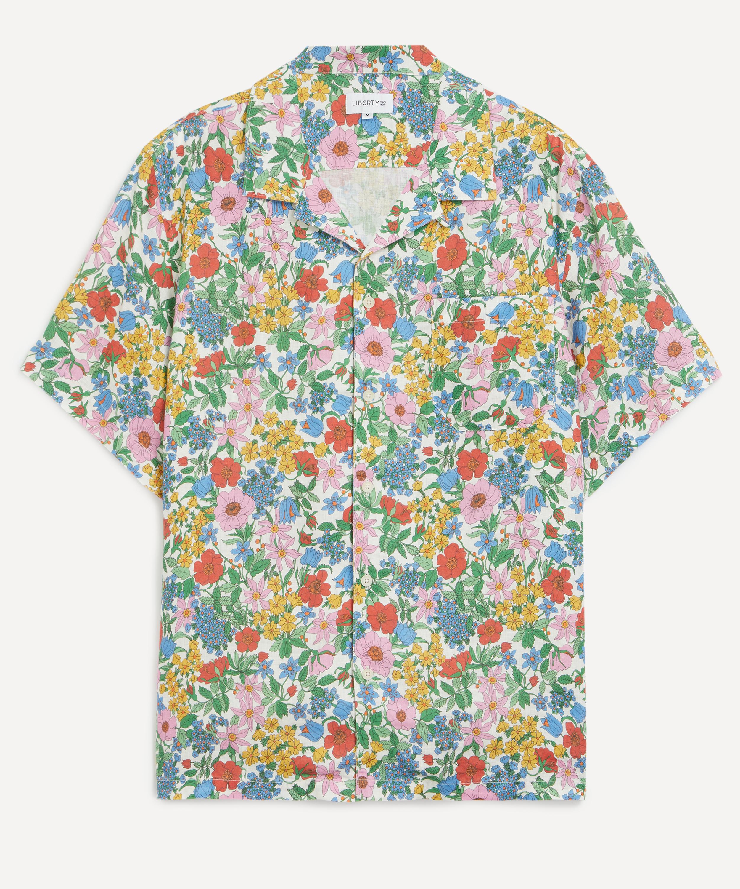 Printed in our very own cutting-edge Liberty fabric mill in northern Italy, this particular shirt showcases the Clarabell print. Inspired by the vibrant beauty of summer gardens, Clarabell features intricate trails of anemones, roses, bellflowers, daisies, and forget-me-nots, creating a captivating symphony of form and colour.