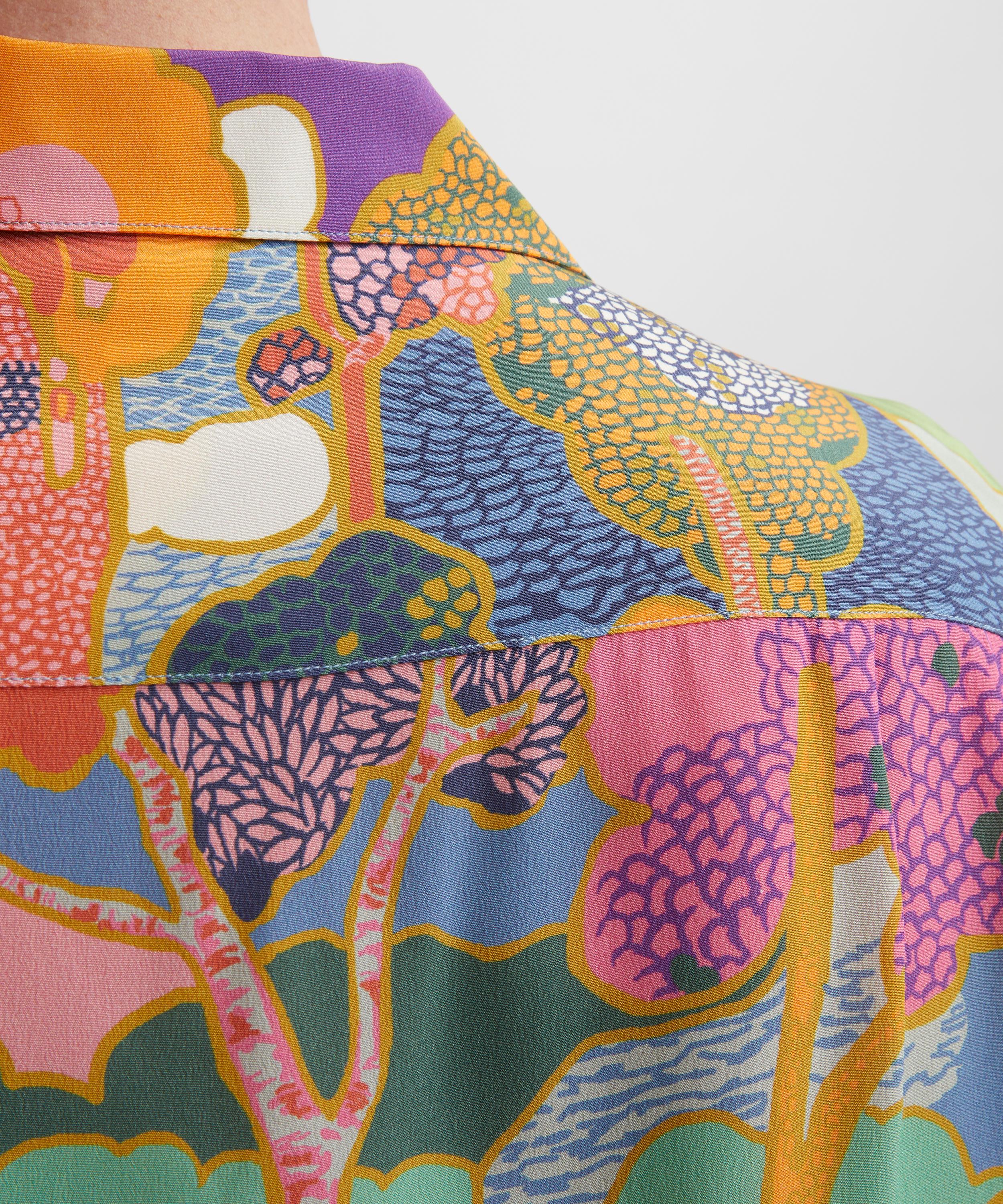 Printed in our very own cutting-edge Liberty fabric mill in northern Italy, this particular shirt showcases the Prospect Place print. Originally created in 1968 by famed British designer, Bernard Nevill, Prospect Place is a revival of traditional Art Nouveau style landscape prints that feature subtly arranged clusters of trees in a dreamy, jewel-toned setting.