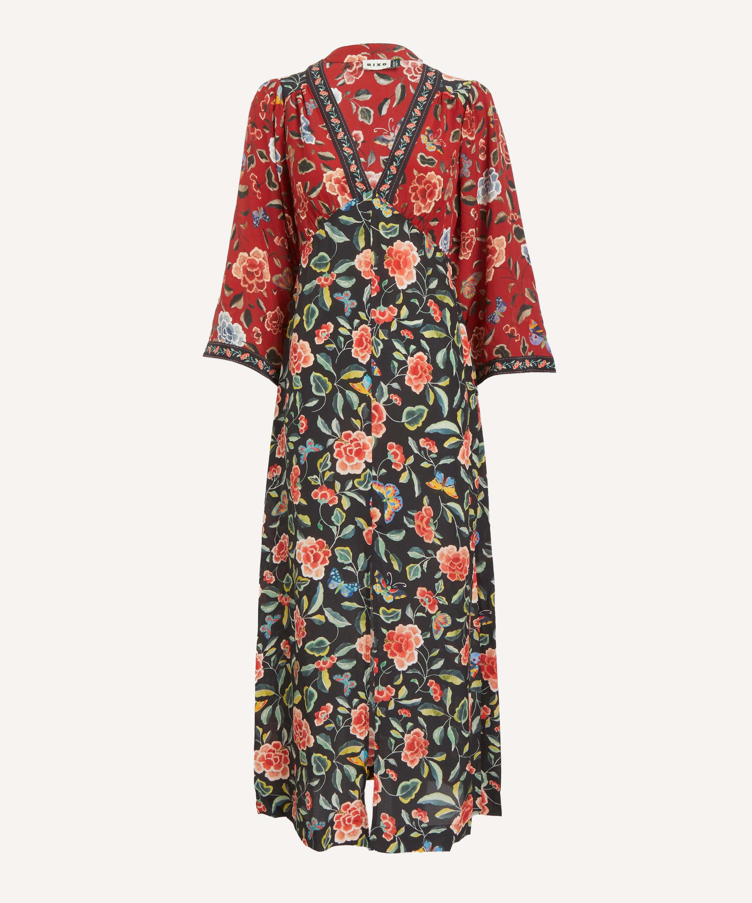 RIXO founders Henrietta Rix and Orlagh McClosky met whilst working at ASOS and quickly bonded over their obsession with vintage treasure hunting. Struggling with the rigidity of vintage clothing sizes, in 2015 they launched RIXO, a label that provides timeless shapes in intoxicating prints. Key to the label's aesthetic are the delicate embroideries and intricate trims expected of an antique gown - think enduring design reinterpreted for the contemporary woman’s body.