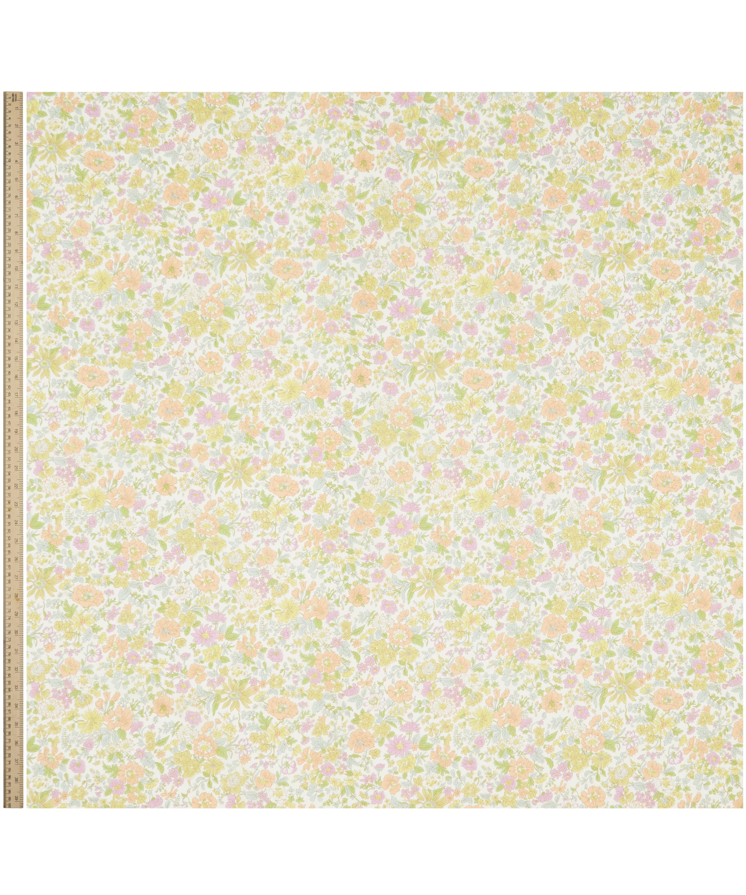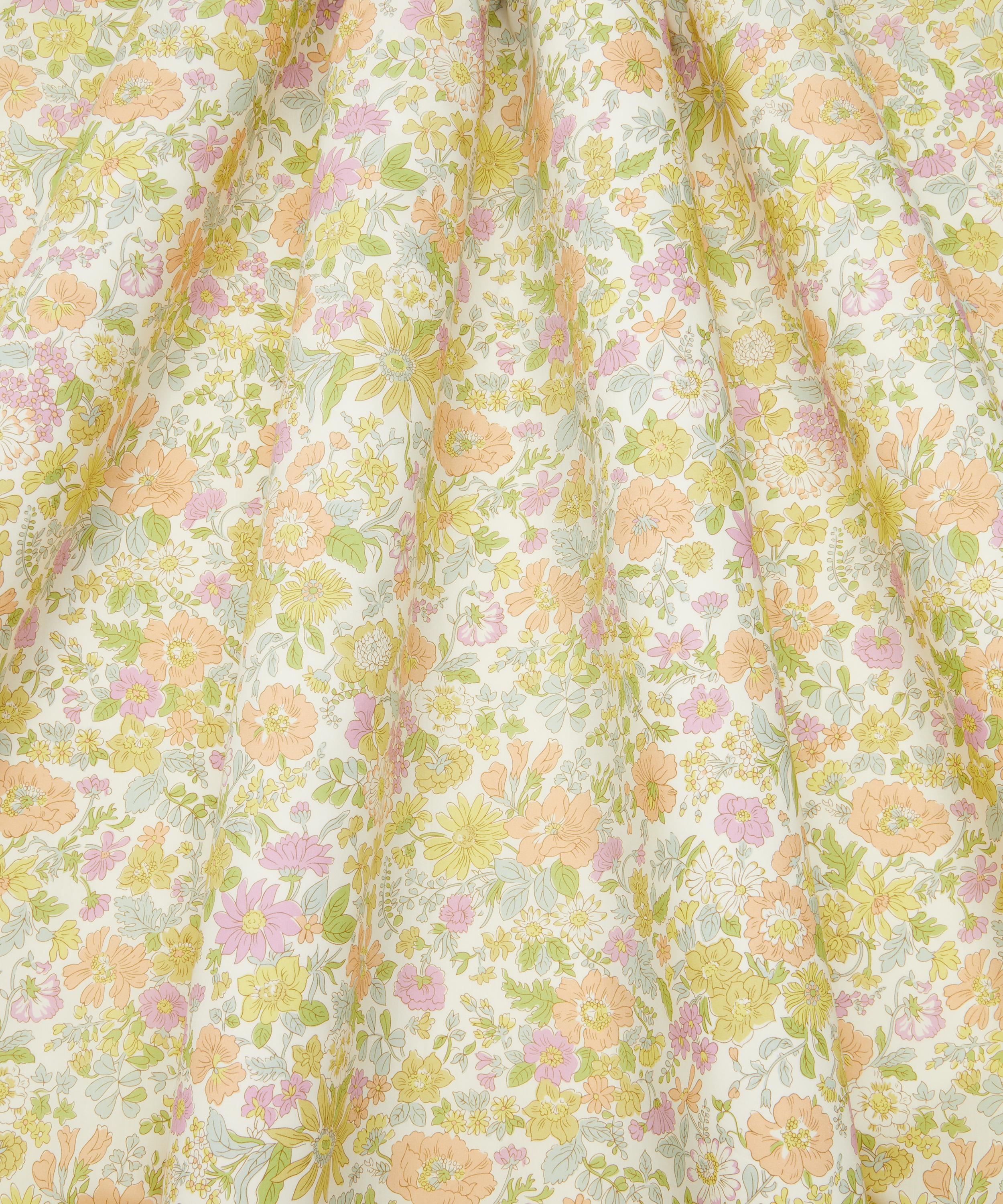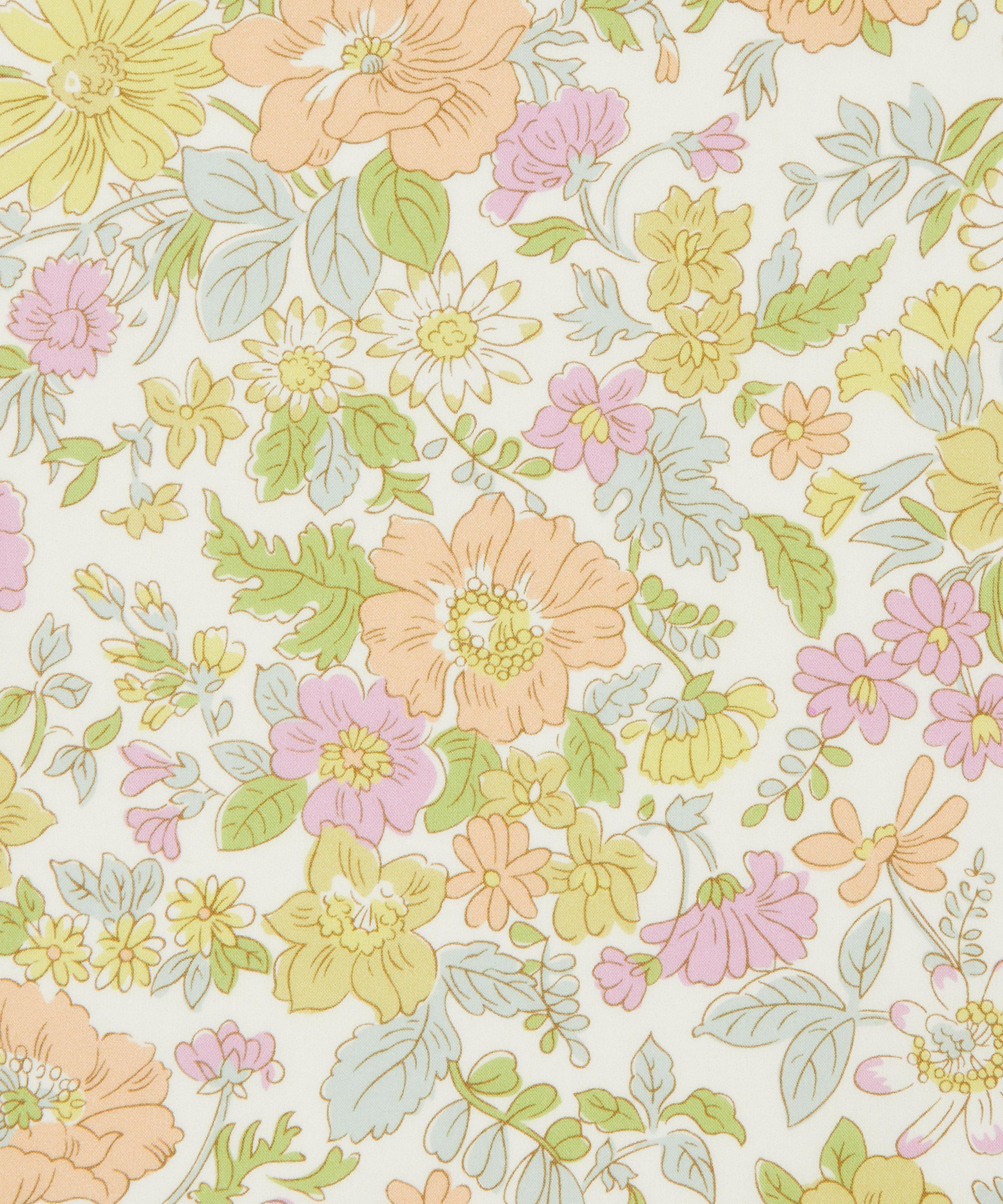 Adapted from a 1940s archival Liberty print, Daisy Morisia is a joyous meadow, teeming with an array of springtime blooms. Pansies, poppies, geraniums, roses, sweet peas, daisies, marguerites, and geum flowers come together to create a quintessential Liberty botanical. The design evokes a sense of romance and nostalgia, capturing the timeless charm of classic English flora.