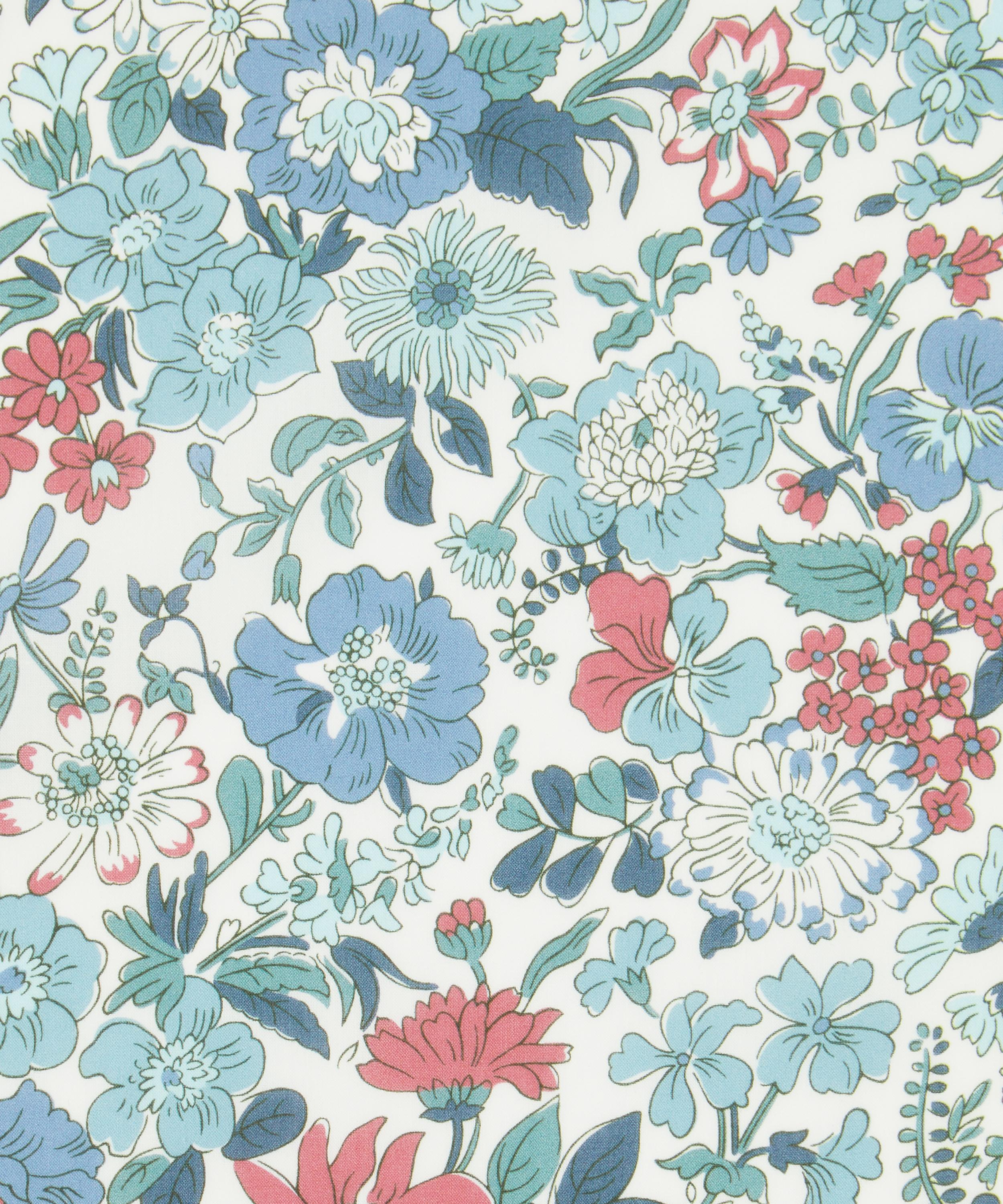 Adapted from a 1940s archival Liberty print, Daisy Morisia is a joyous meadow, teeming with an array of springtime blooms. Pansies, poppies, geraniums, roses, sweet peas, daisies, marguerites, and geum flowers come together to create a quintessential Liberty botanical. The design evokes a sense of romance and nostalgia, capturing the timeless charm of classic English flora.