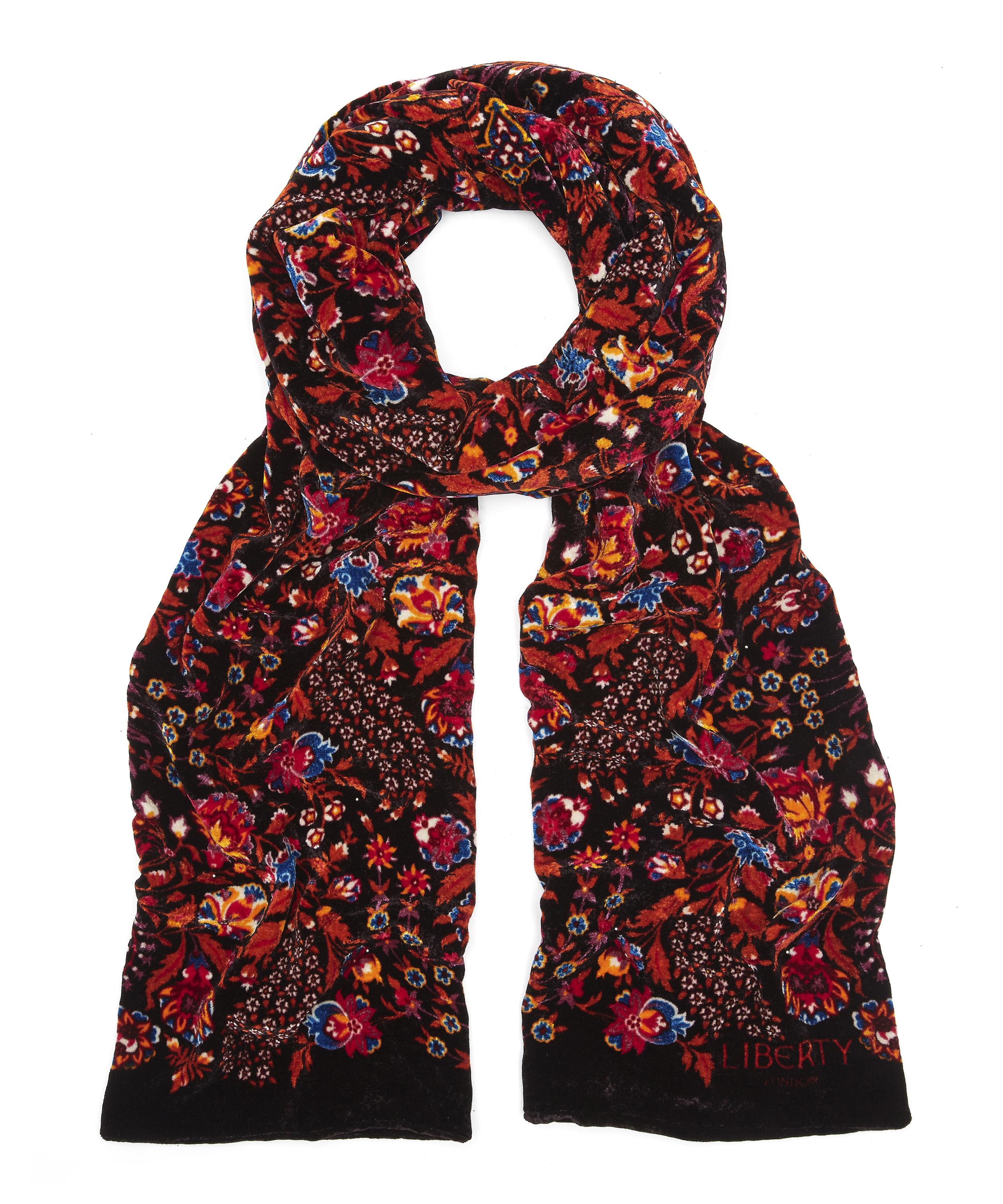 Featuring a magnificently detailed ogee design trail drawn from the Liberty archives, the velvet Dalia scarf is printed with a vibrant floral motif. Imbued with an unmistakably Liberty elegance, it will add a dose of colour to an outfit. Measuring 70 x 200cm, the scarf has a vertical repeat and is ideal for wrapping around the neck.