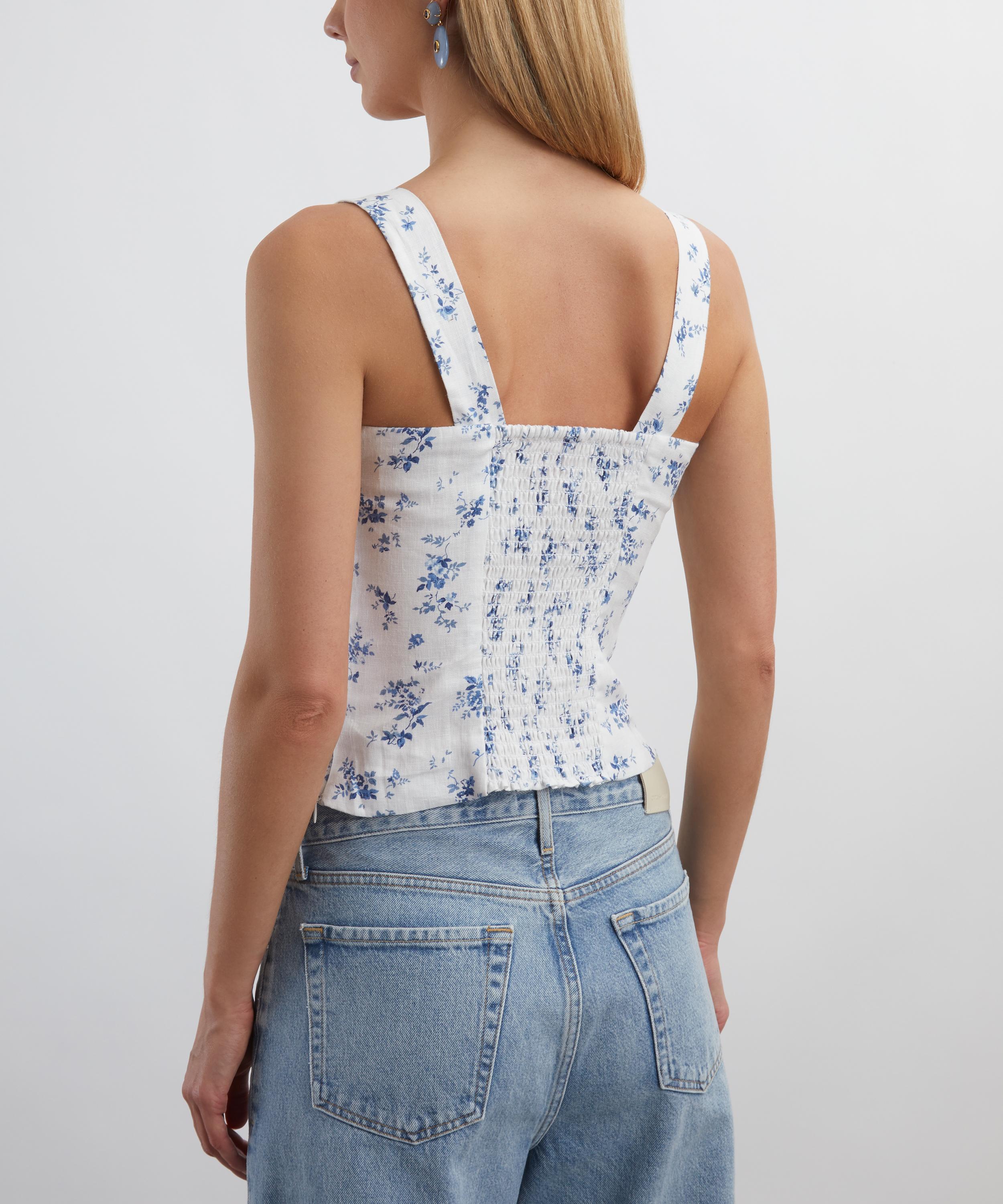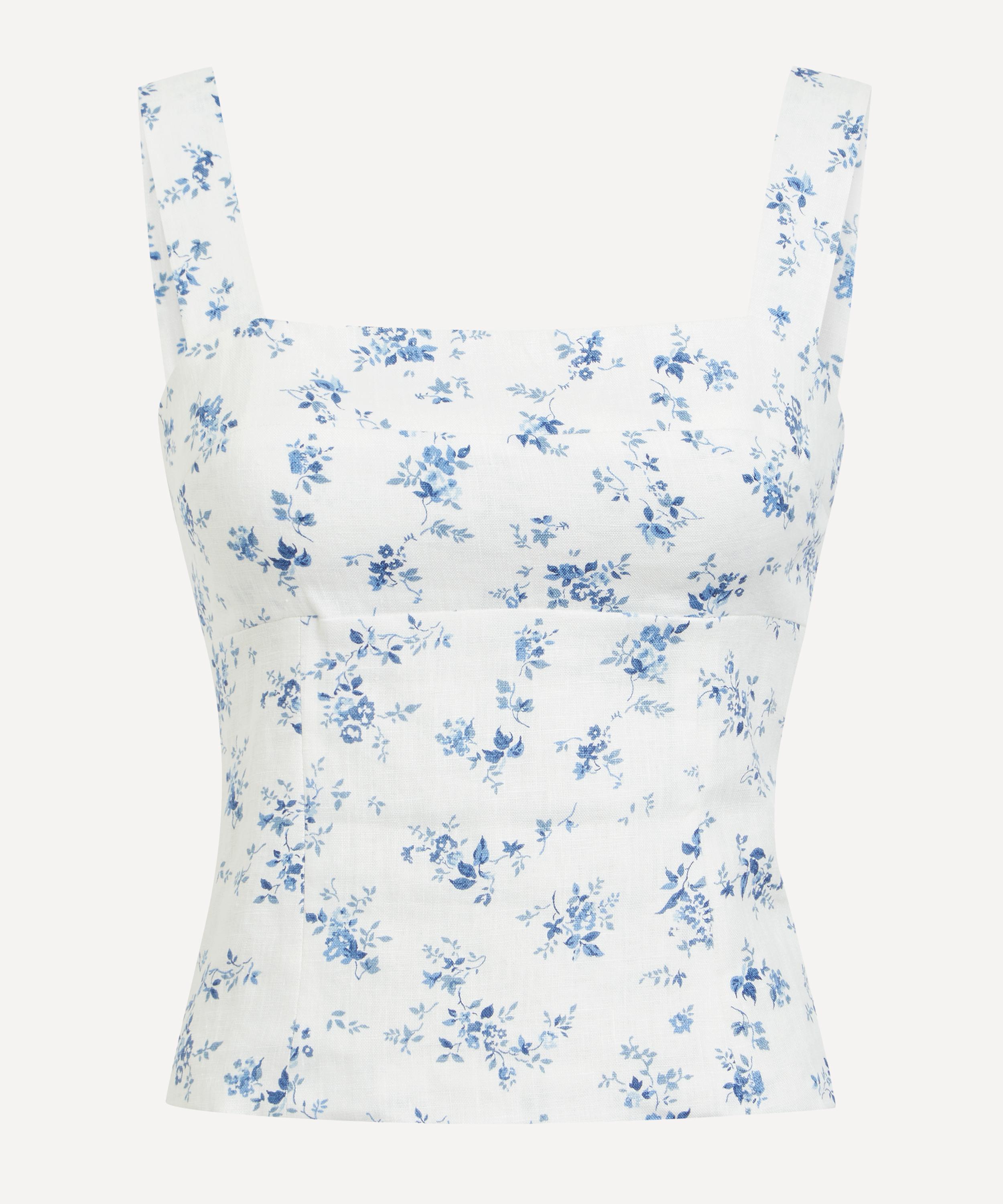 Crafted from lightweight linen in Reformation’s exclusive Orlaya floral pattern, the Darci top exudes effortless elegance. Designed to be fitted throughout, it’s minimally detailed with a square neckline and back smocking for a flattering, feminine shape.