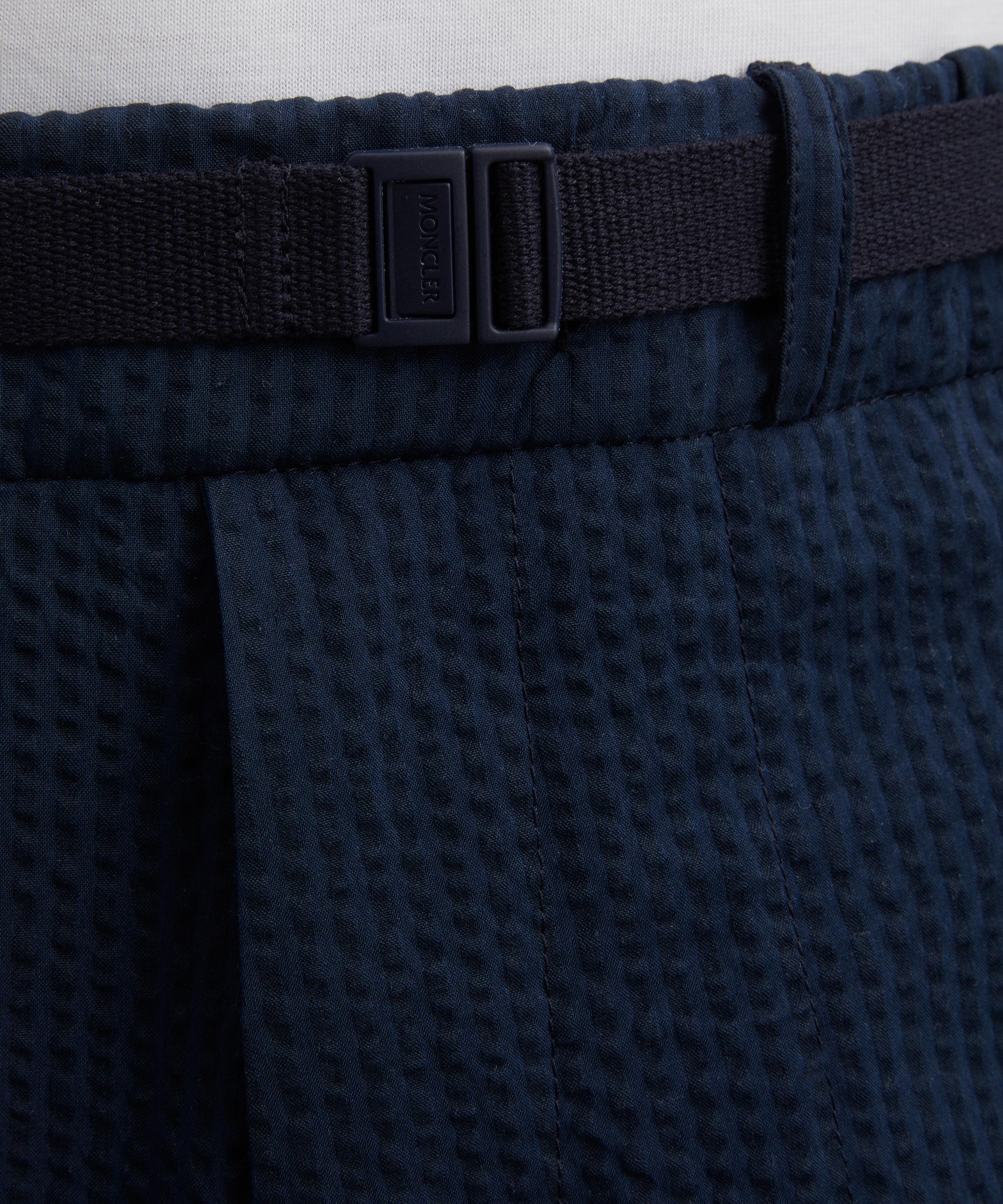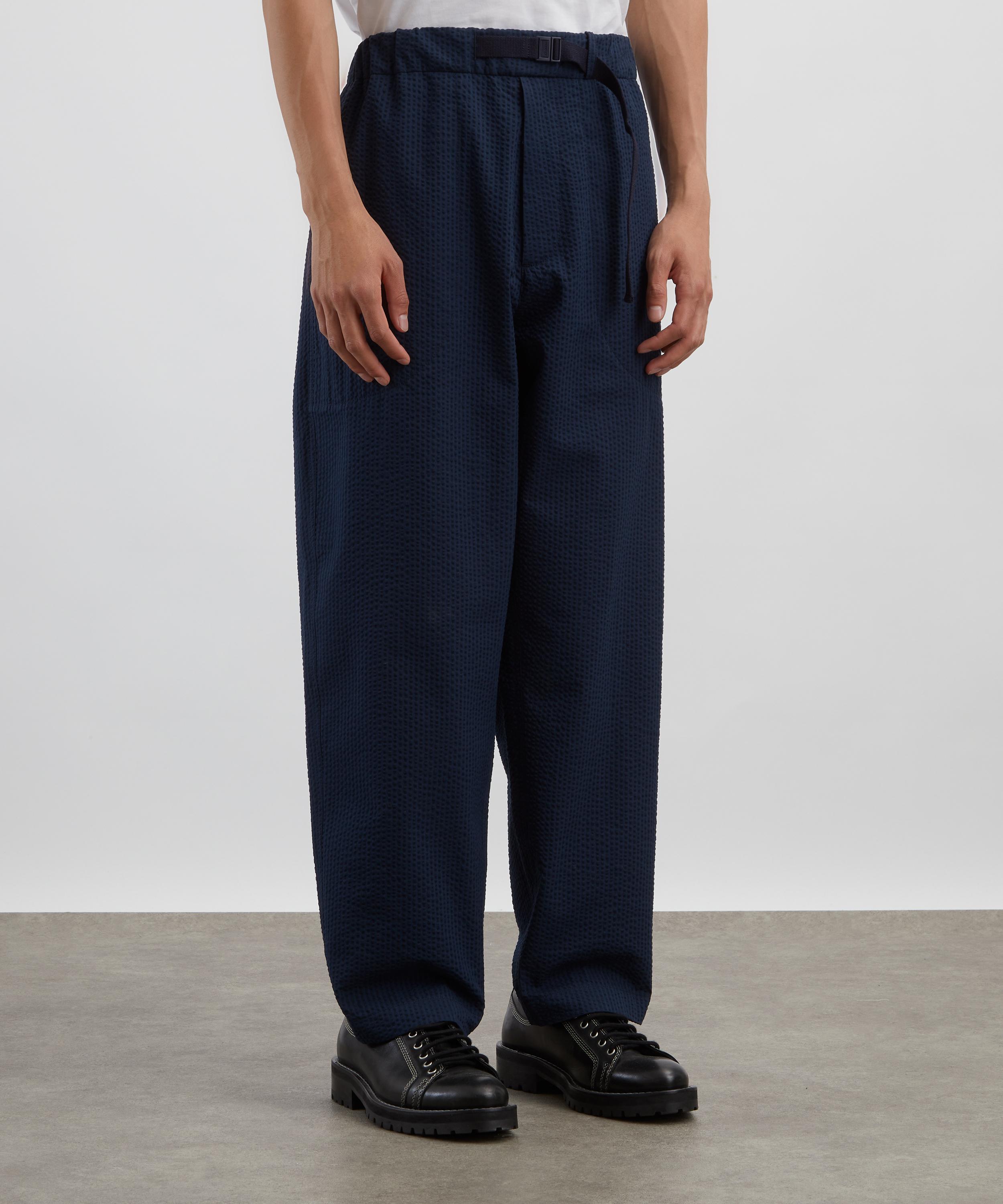 This Dark Blue Seersucker Trousers from Italian lifestyle brand Moncler display the slick finishes and technical tailoring the brand is known for.