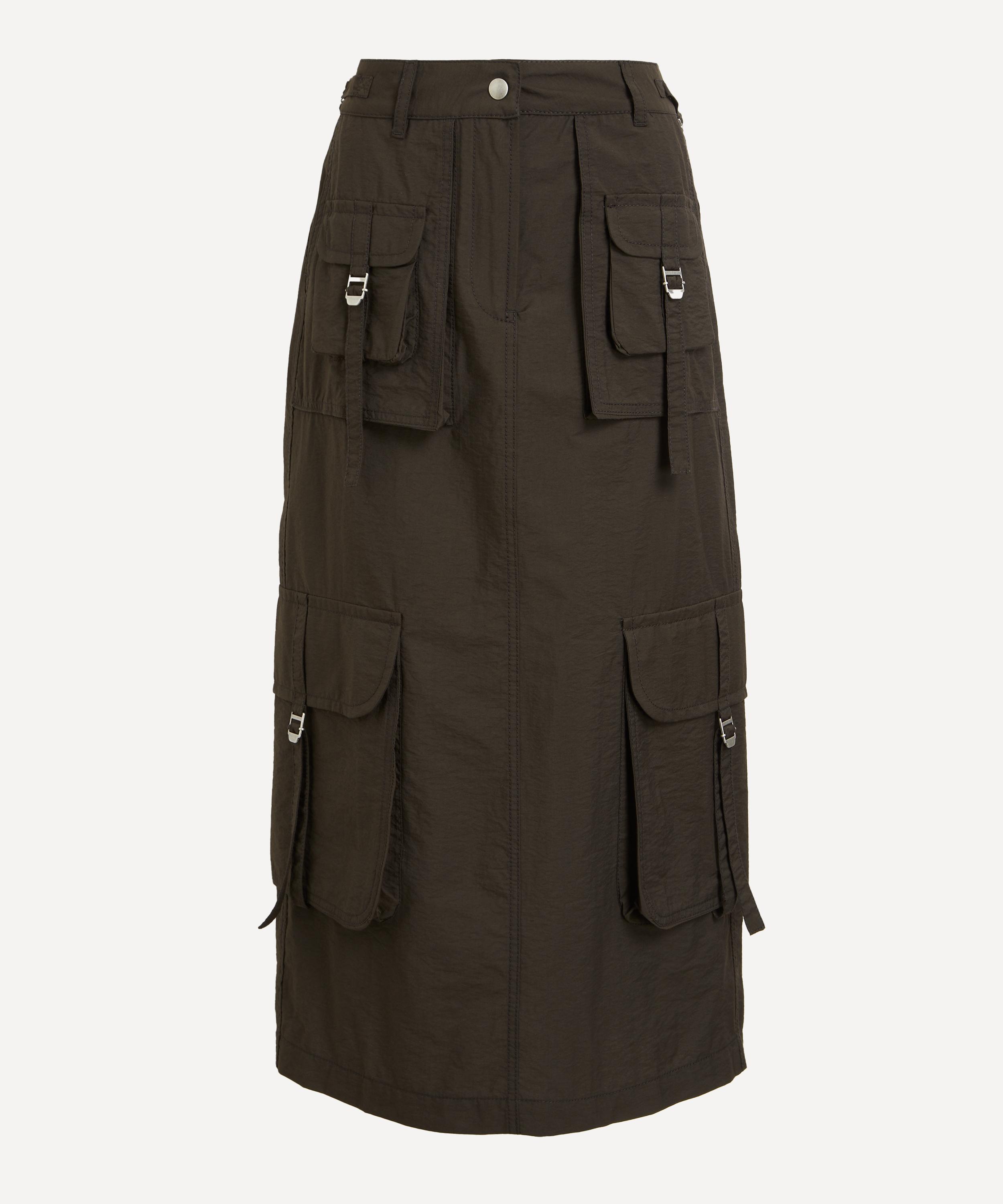 Crafted from a cotton-blend technical fabric with a soft, crinkled texture, this skirt is cut to a relaxed fit, featuring multiple cargo pockets. Its utilitarian design combines practicality with effortless style, making it a versatile addition to any wardrobe.