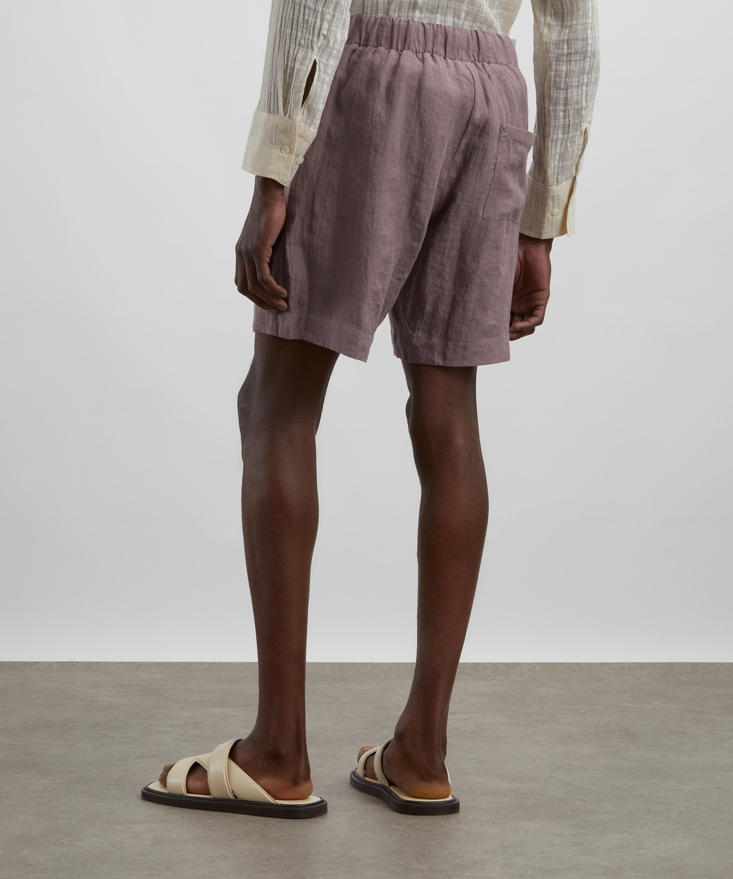Crafted from lightweight linen, these mid-length shorts feature a loose fit, multiple pockets, and an elasticated drawstring waist for a customisable fit.