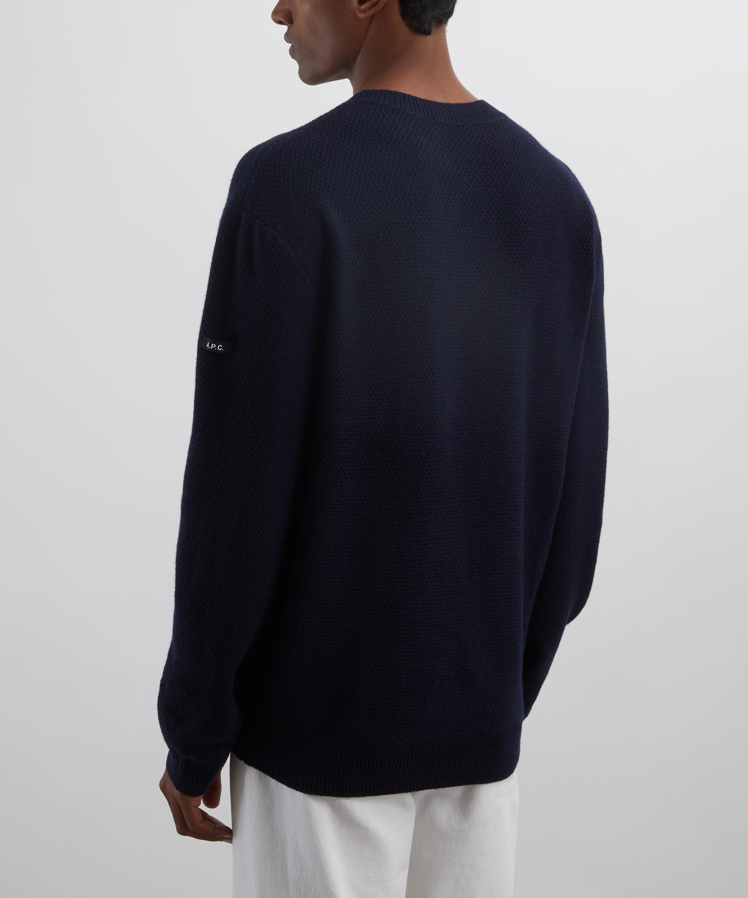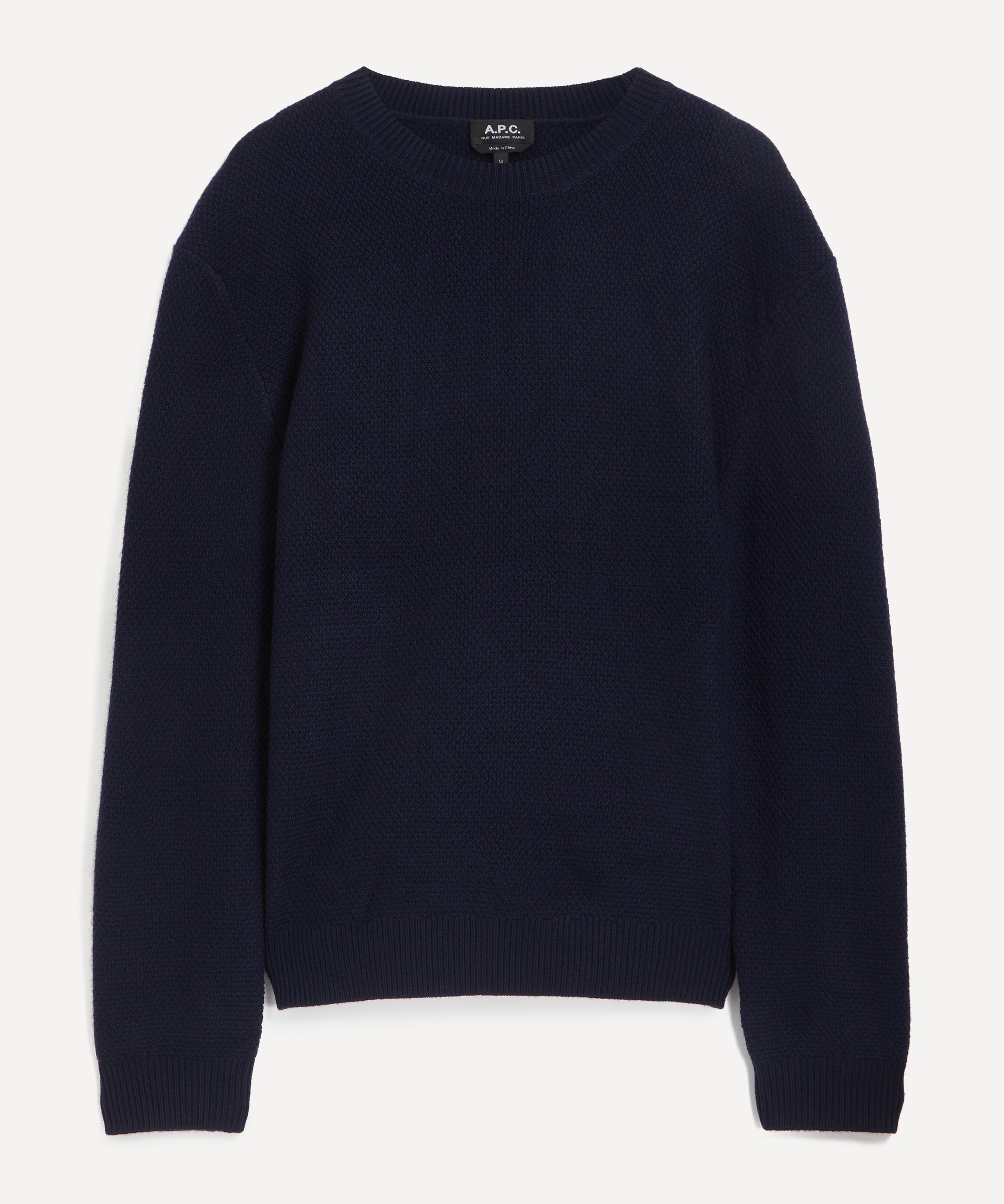 Crafted from pure wool, this classic navy jumper features a loose fit with gently sloped shoulders and a crew neckline. Finished with a signature A.P.C. label on the arm, it adds a touch of effortless French cool to your everyday look.