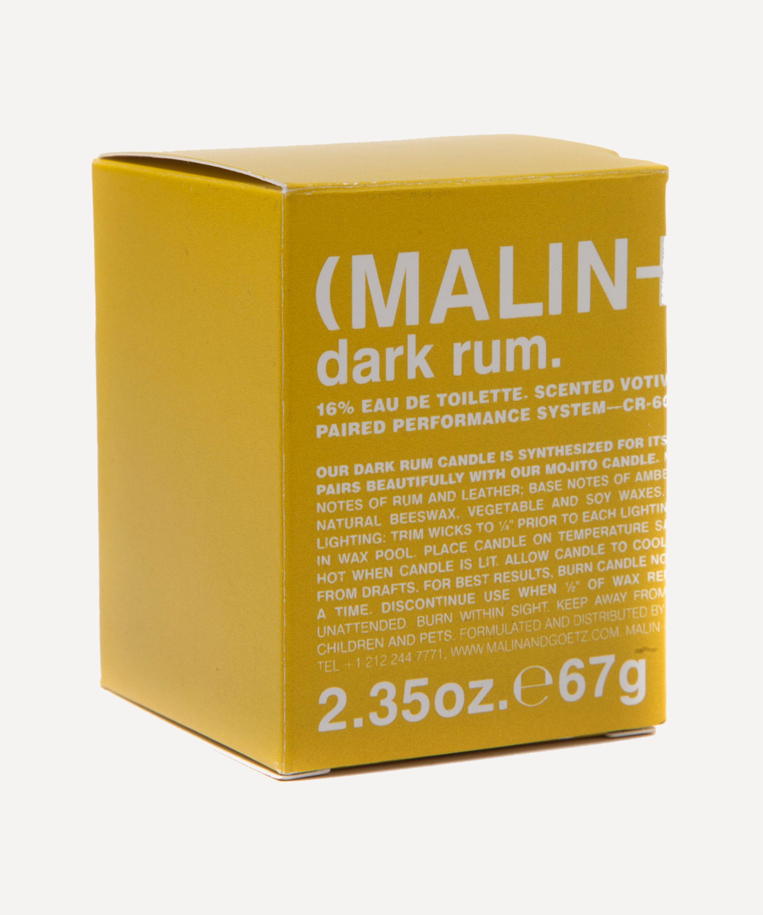 Modern and dynamic, the Dark Rum Votive candle from modern apothecary MALIN+GOETZ reimagines the scent of spicy bay rum.