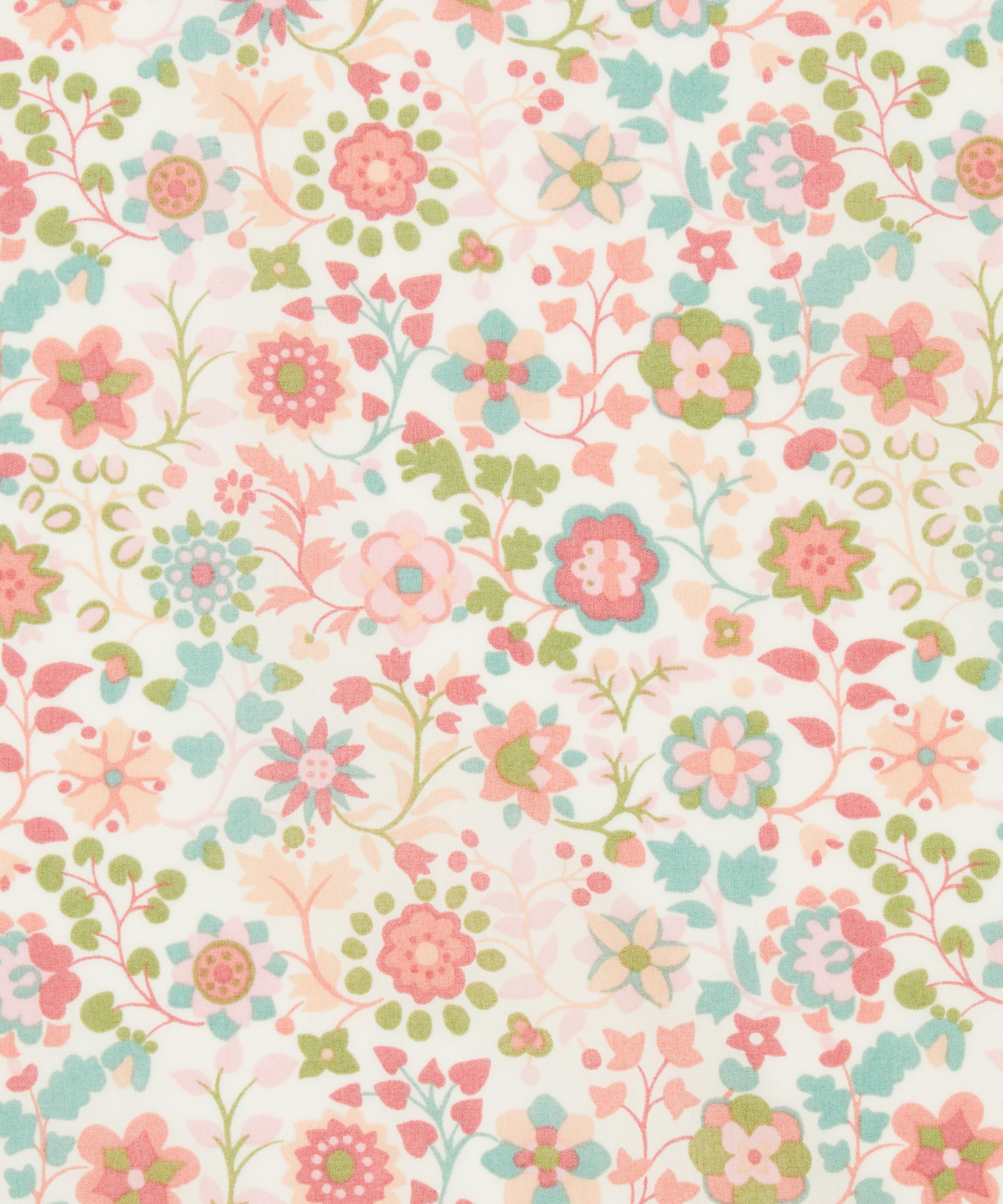 Originally designed in 1963 and screen printed on silk at Liberty’s Merton Printworks, Dasha is a playful, decorative pattern that harmoniously blends traditional Asian-inspired elements with a touch of 1960s Pop aesthetic. Circular star-shaped stylised blooms intertwine with trailing leafy sprigs, creating a captivating floral choreography.