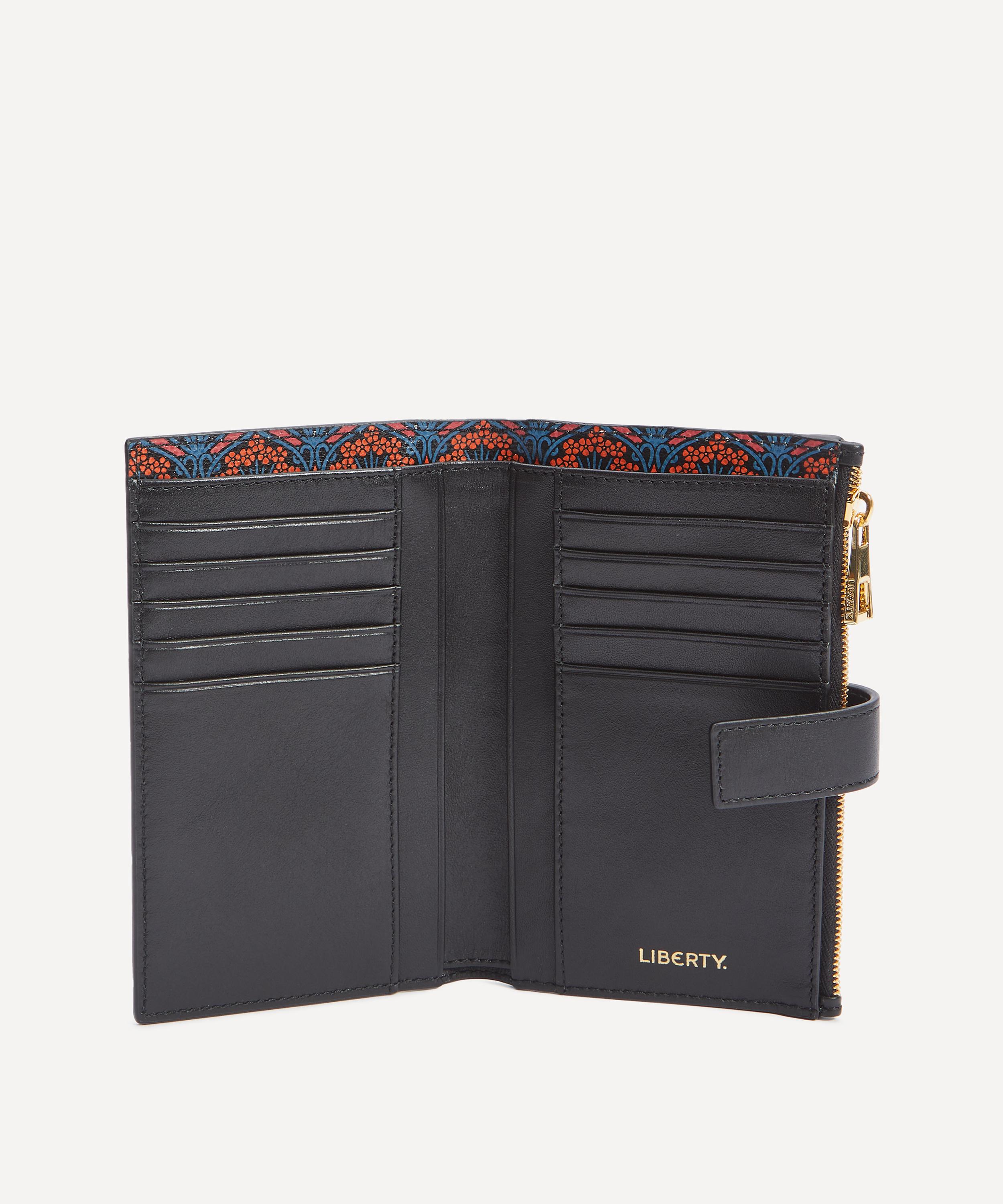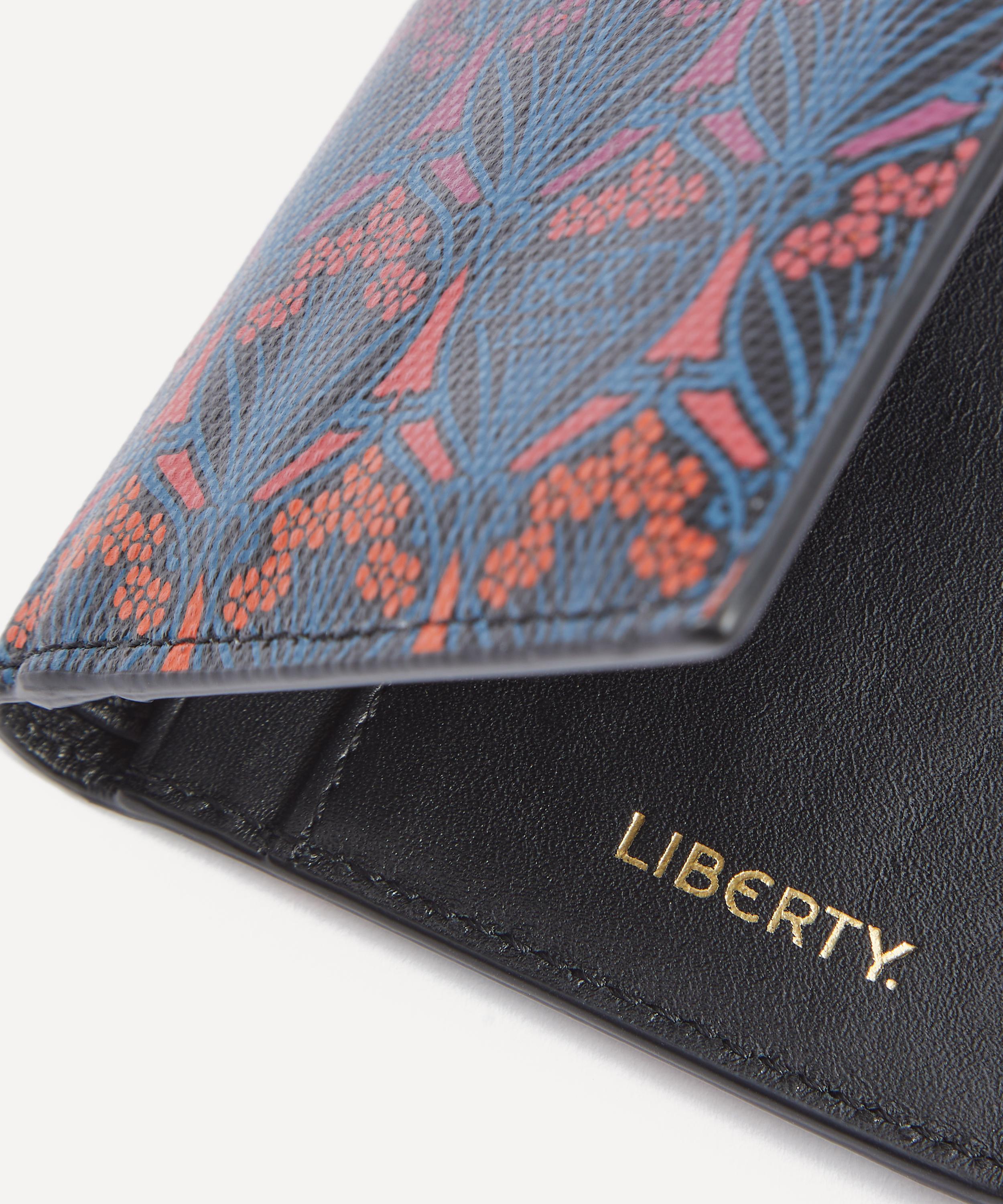 The vertical wallet features a fold-over closure and snap button fastening to keep all your cards secure, whilst the card and slip pockets offer essential practicality, perfect for keeping your cash stashed while on the move. The bespoke canvas-coated cotton follows our founder Arthur Liberty’s legacy of innovation – woven, printed and coated for the most vivid colours possible and unique textural detail, it displays Dusk till Dawn’s glowing, multi-layered colourways with extraordinary impact.