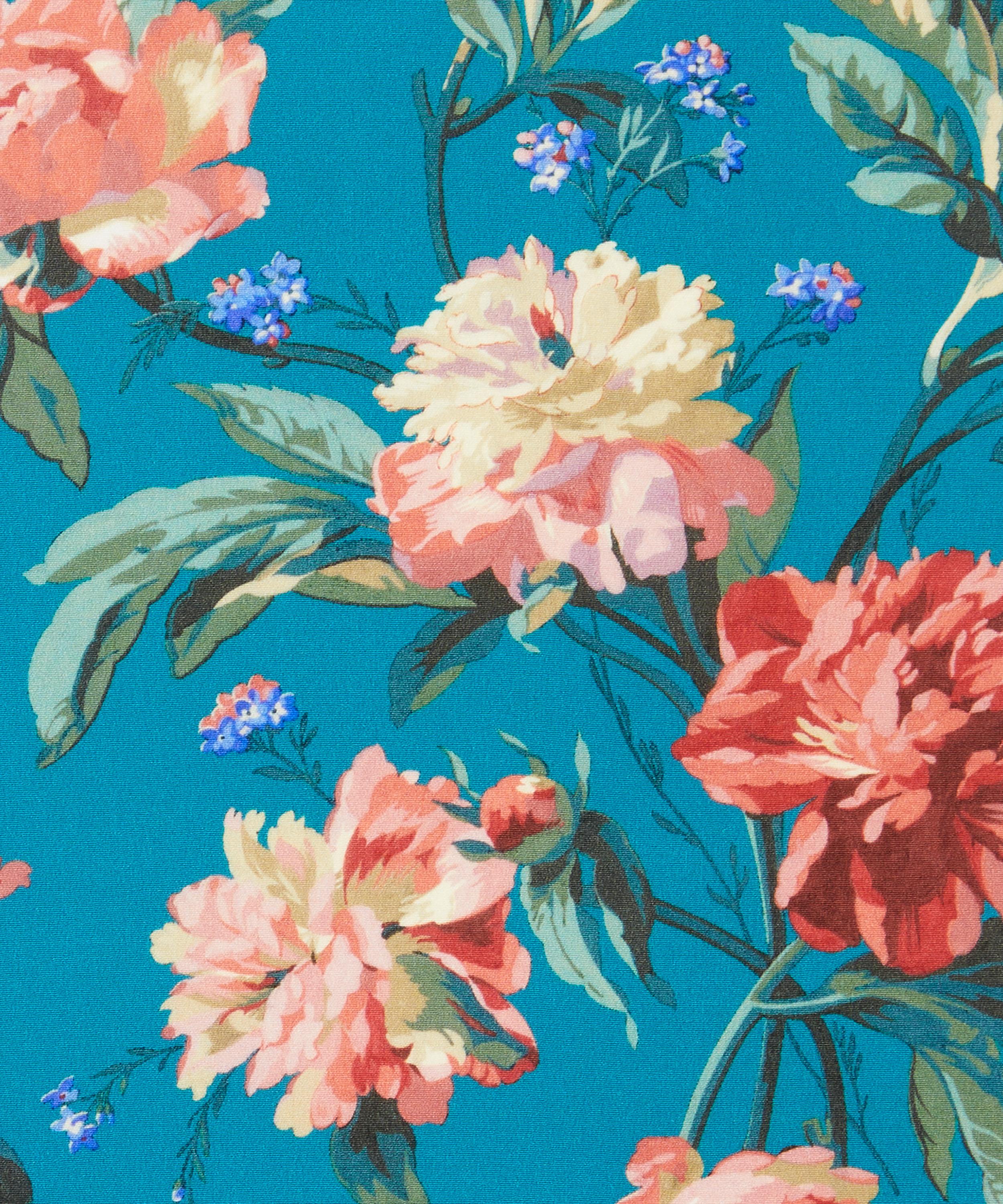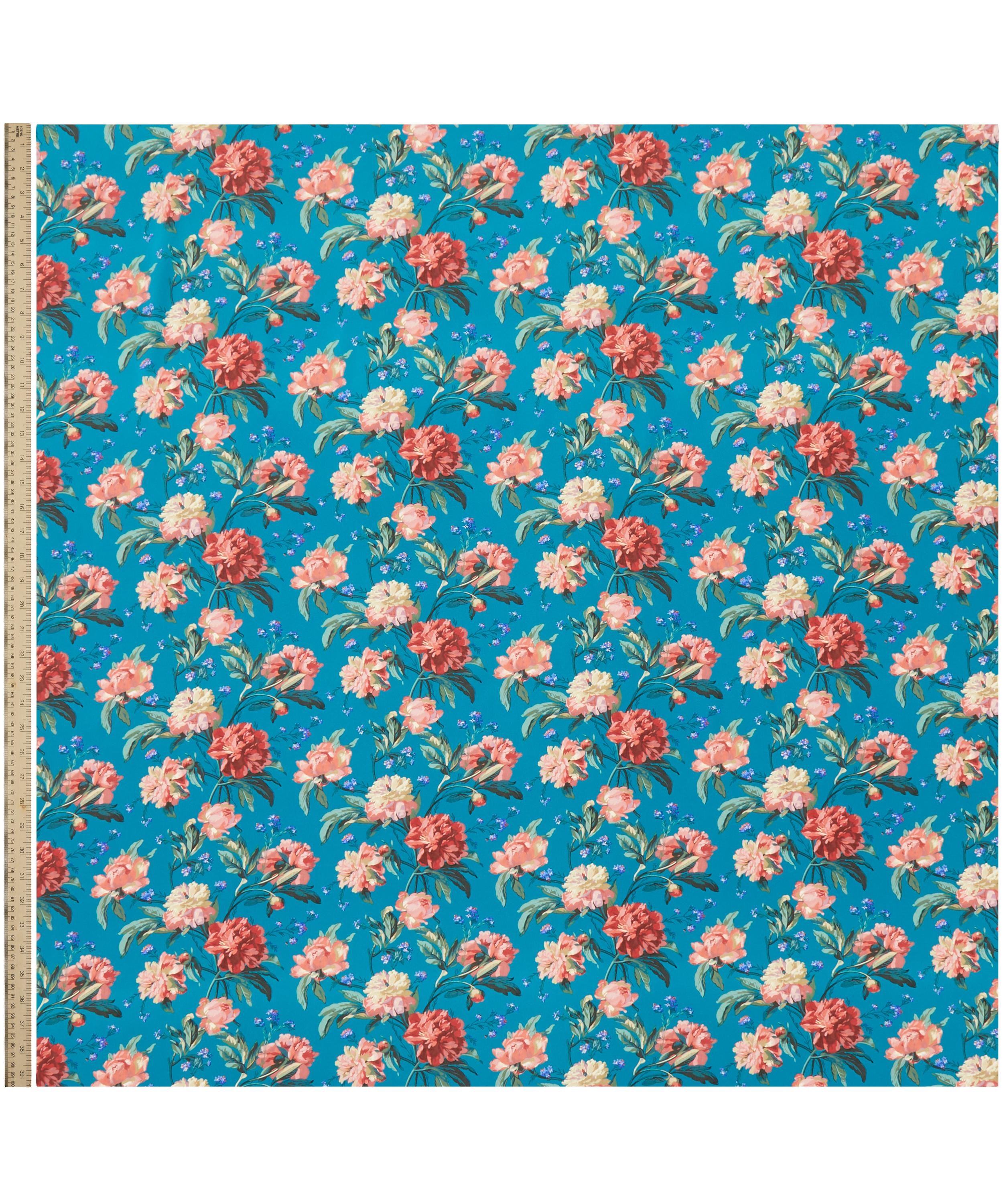 Decadent Blooms draws inspiration from a hand-painted artwork discovered in the Liberty archive. First introduced as a furnishing fabric in 1989, this magnificent botanical features large and bounteous bunches of roses, peonies, and forget-me-nots, gracefully trailing across the fabric. Set against richly dark backdrops, these flowers take centre stage, their warm hues accentuated and intensified, to add depth and visual contrast.