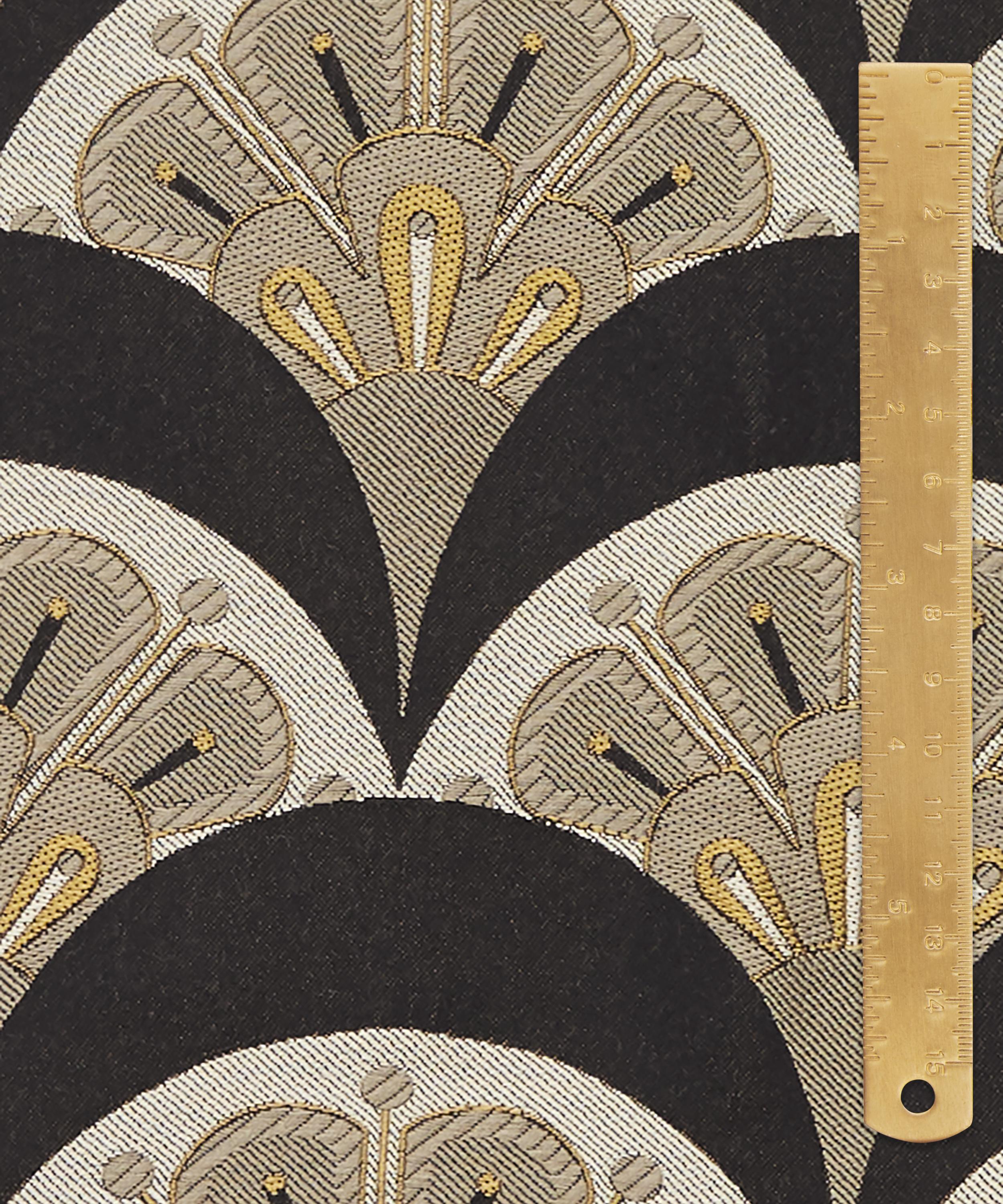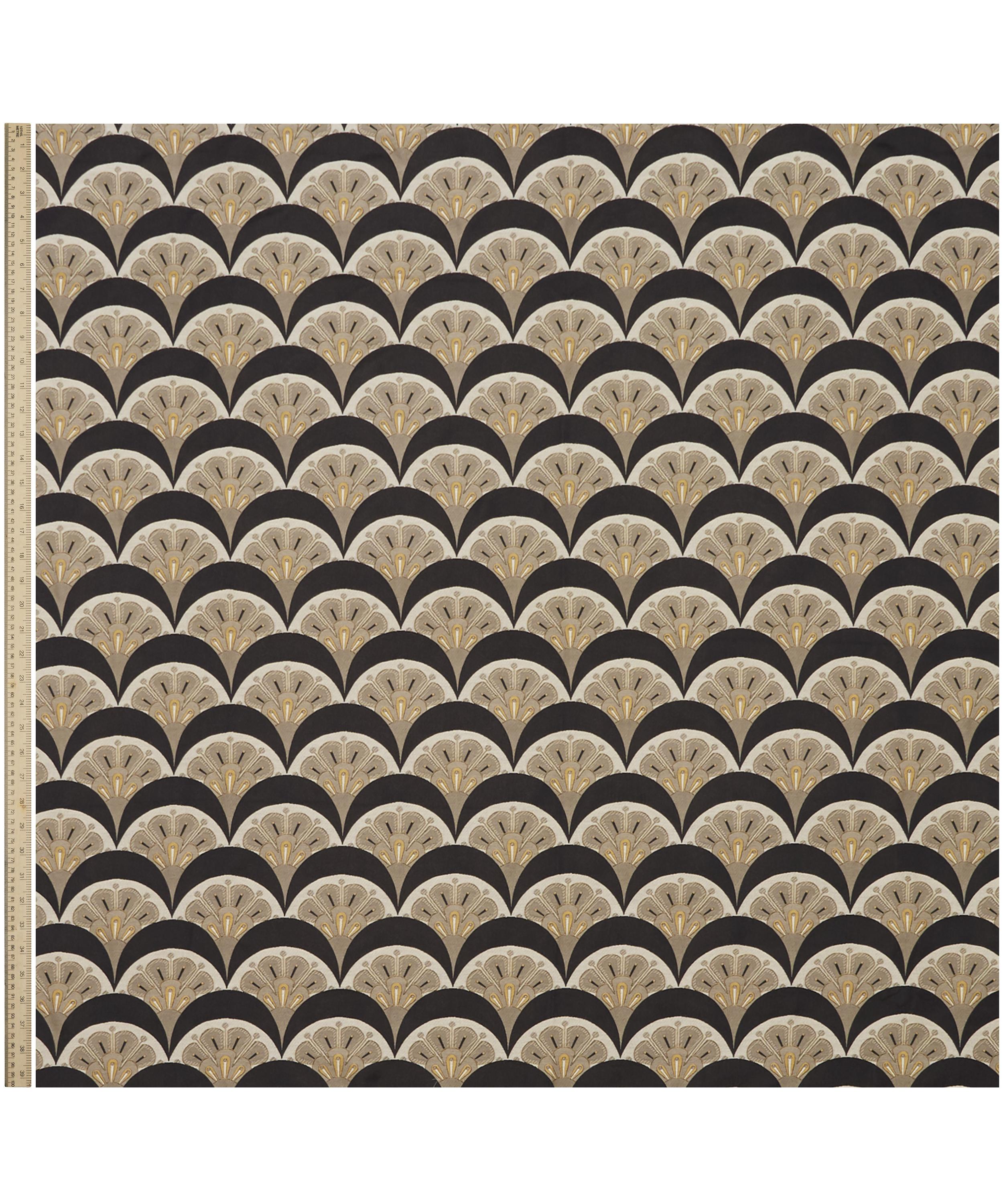 Deco Scallop is inspired by Liberty’s archive catalogues of the late 1890s to 1910s, when beautiful Japanese Art Deco fans and wallpapers were imported alongside fabrics, jewellery, porcelain, screens, and rugs. The motif was developed by the Liberty design studio as a simple contemporary woven jacquard design – a modern take on the Liberty peacock feather and Art Deco fan.