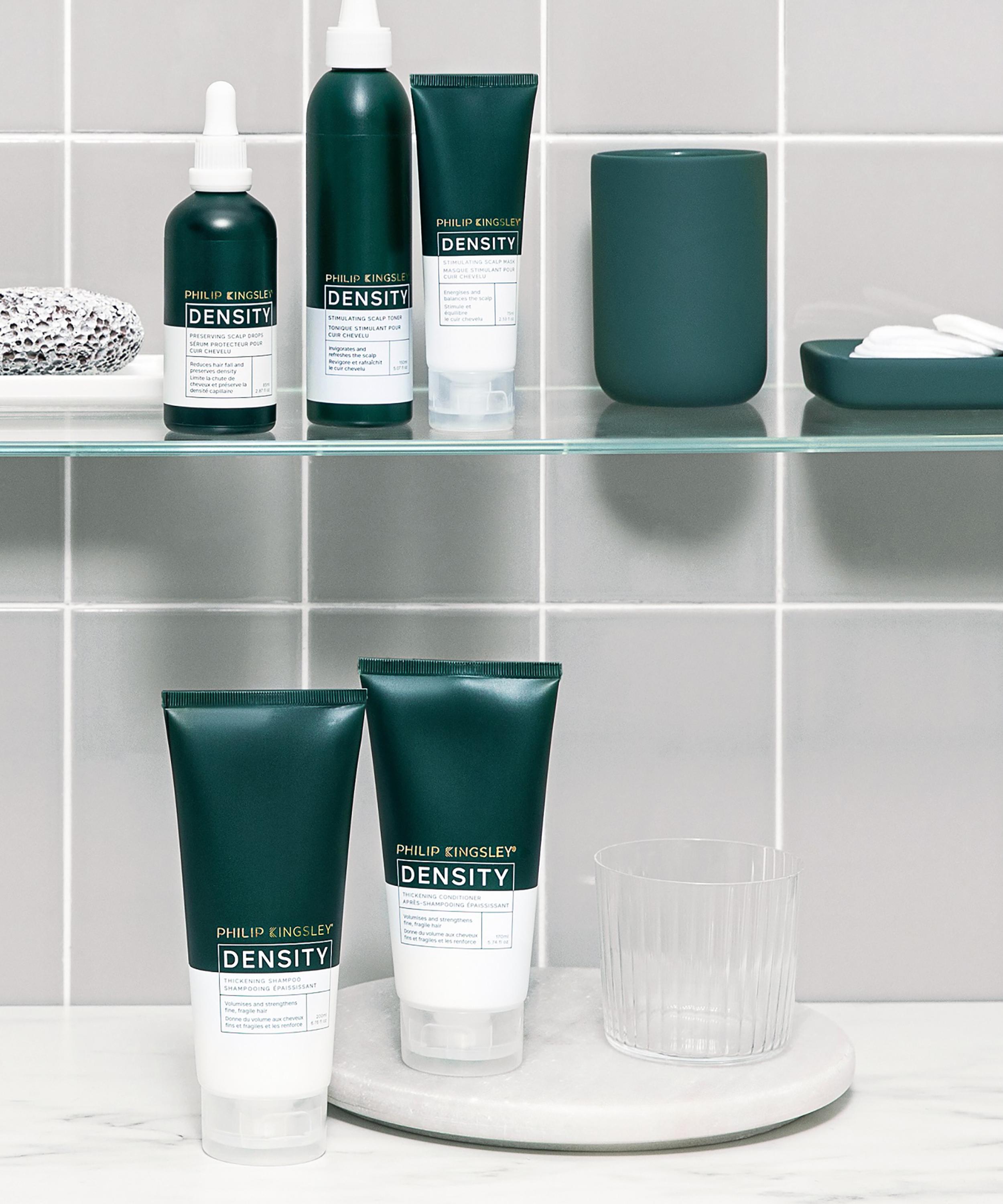 Philip Kingsley's Density Thickening Shampoo works to volumise and strengthen fine, fragile and thinning hair - enhancing strands' density, without weighing them down. Formulated with gently exfoliating salicylic acid alongside plumping pea peptides, which work to transform even the finest of hair, use this body-boosting shampoo daily for hair that is optimully volumised, protected against breakage and beautifully smooth.