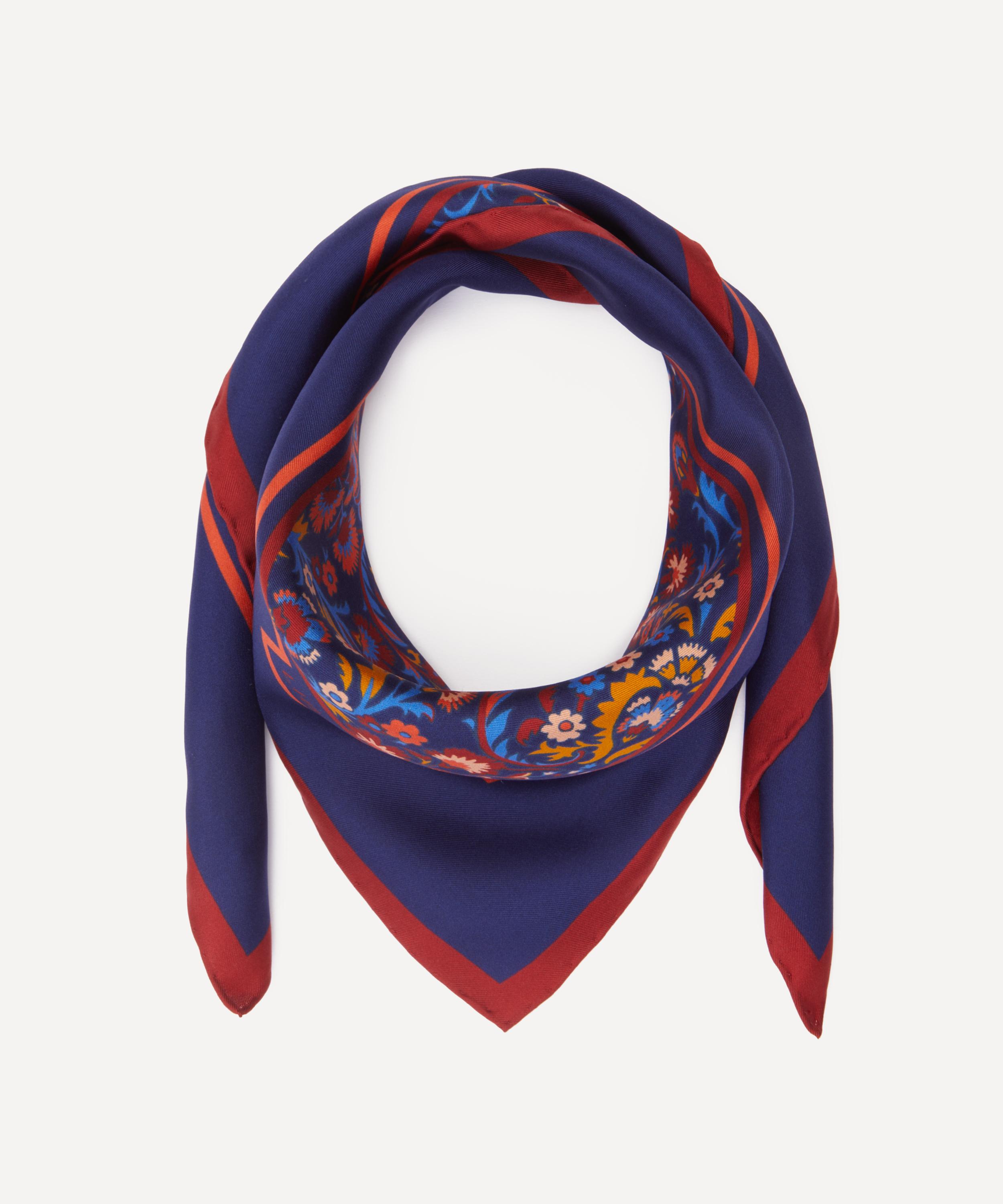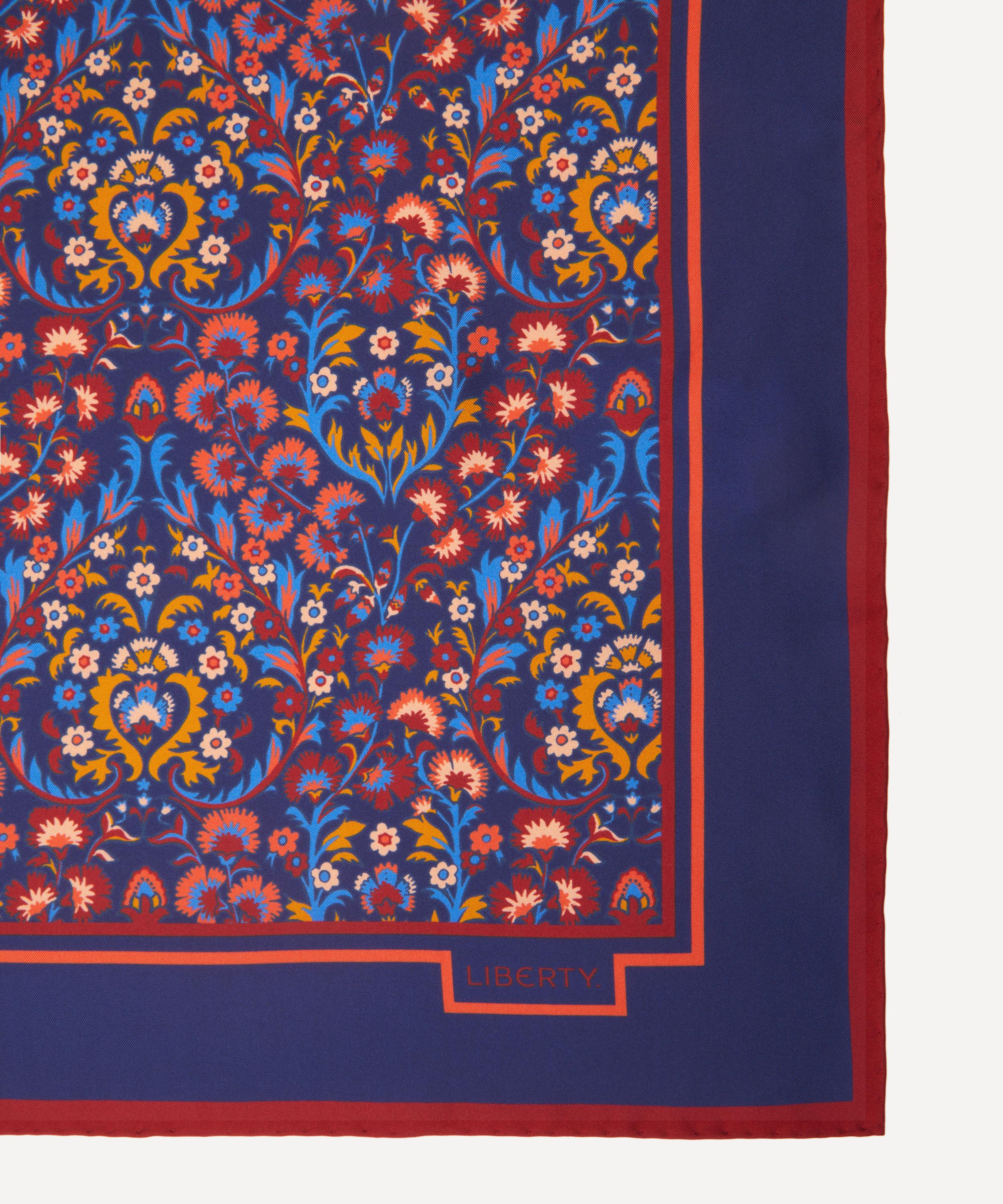 Effortlessly elevate your edit with Liberty’s Dianthus scarf for a touch of print. This vibrant scarf has been crafted from luxurious and durable silk in a versatile square silhouette. Originally created in 1968, the Dianthus print is inspired by Middle Eastern style tile patterns, showcasing scrolling leaves, trailing pinks and pretty daisies all arranged in distinctive ogee shapes – creating a dense floral tapestry that exudes sophistication. Try draping it over neutral outerwear for a burst of contemporary colour or knot it close to the neck to lock in warmth.
