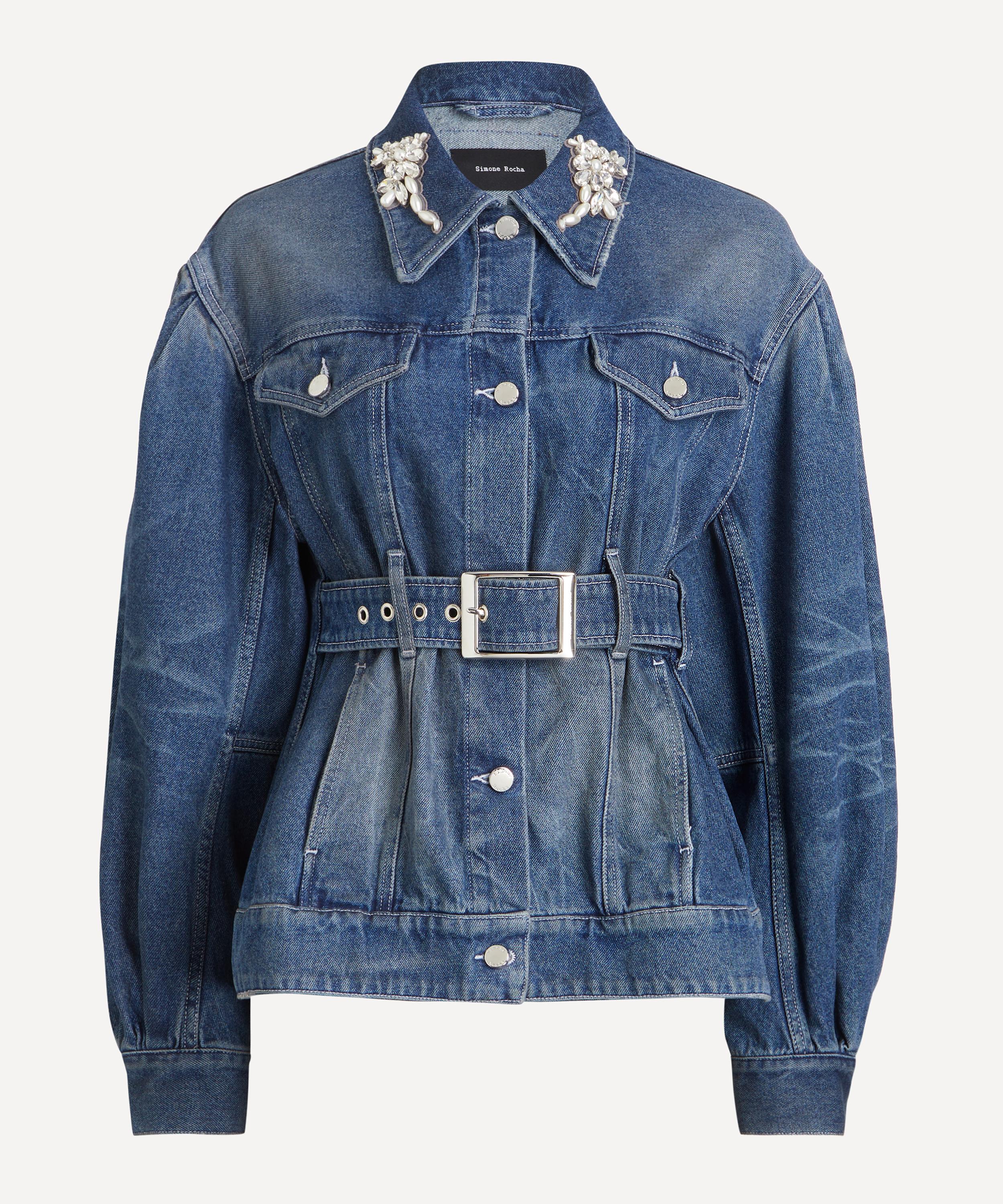 With its sharp tailoring and delicate details, the Distressed Denim Biker Jacket channels Simone Rocha’s rebellious yet romantic aesthetic.