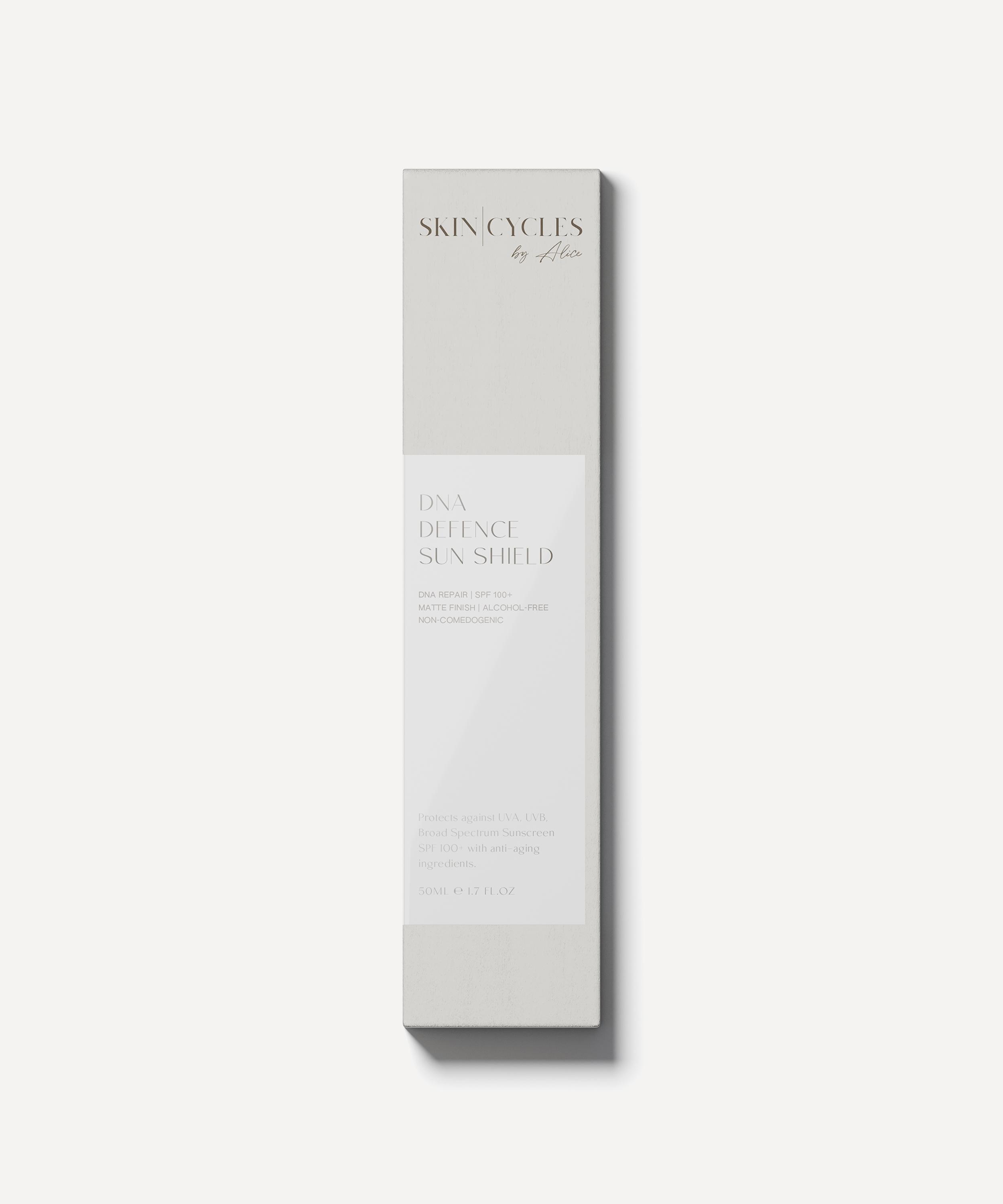 Unparalelled in its' ability to repair and protect, Skincycles' DNA Defence Sun Shield is a SPF 100+ face cream with UVA and UVB spectrum protection. Developed with transformative anti-aging ingredients, this fast-absorbing cream sinks into skin to protect against light-induced ageing and stimulate the skins immune DNA repair mechanism for a beautifully youthful complexion.
